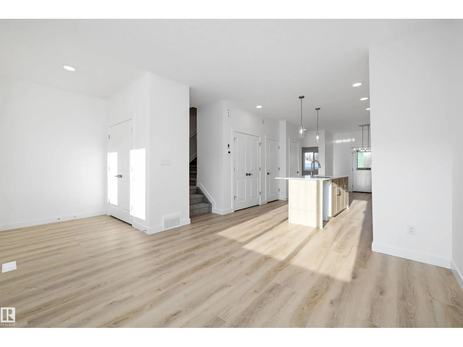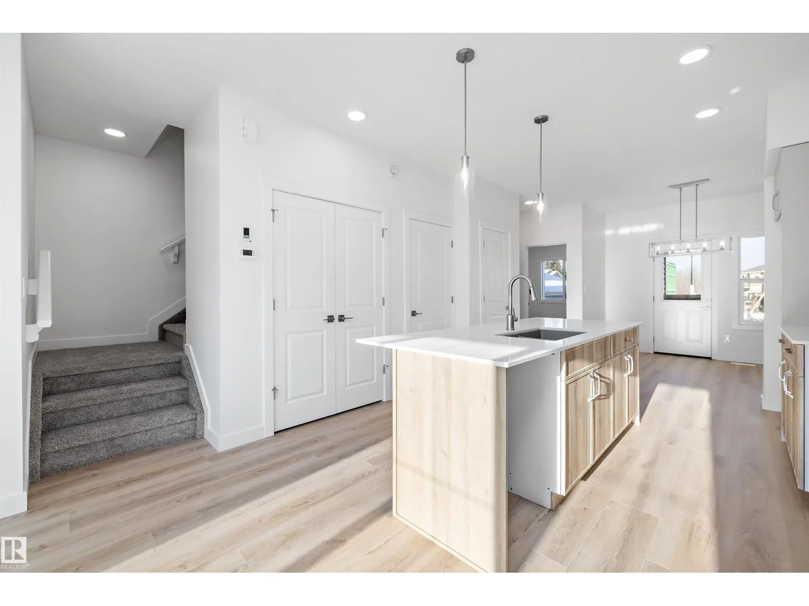 Discover The Sylvan, a bright and inviting home offering stylish finishes and flexible living spaces. The main floor features luxury vinyl plank flooring, 9â ceilings, a welcoming foyer with walk-in coat closet, and a sun-filled great room. The kitchen showcases quartz countertops, a large island with eating ledge, soft-close Thermofoil cabinetry, over-the-range microwave, and a tucked-away pantry. A rear nook overlooks the backyard and is complemented by a main-floor bedroom, full 3-piece bath, and garden door to the outdoor space. Upstairs offers a spacious primary retreat with walk-in closet and ensuite, two additional bedrooms, a full bath, and laundry. Includes parking pad with option for detached double garage, separate side entrance, and basement rough-insâideal for future development. (id:27476)