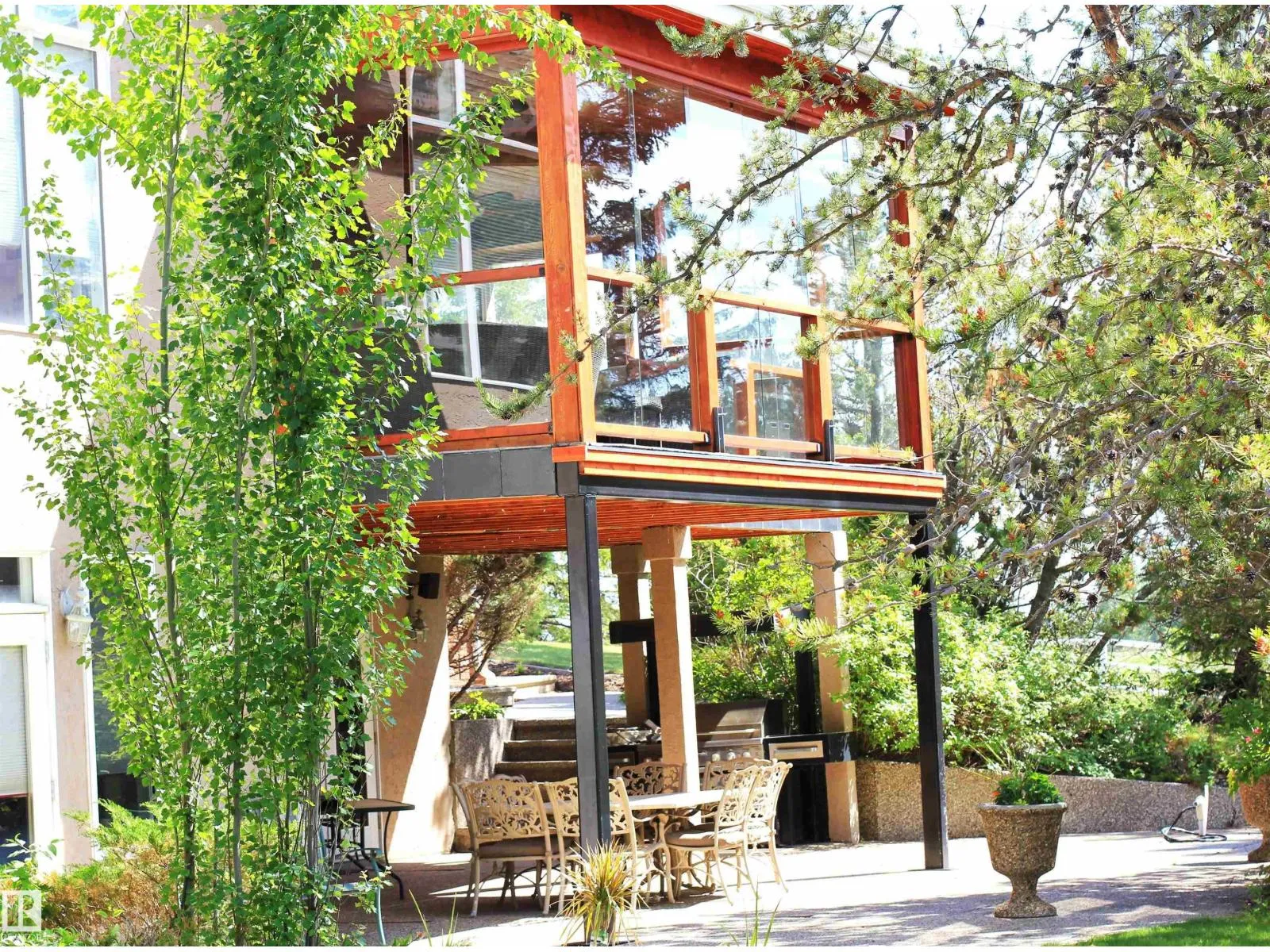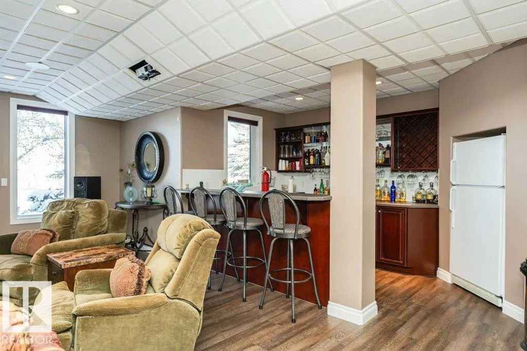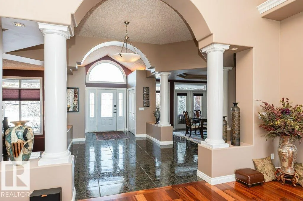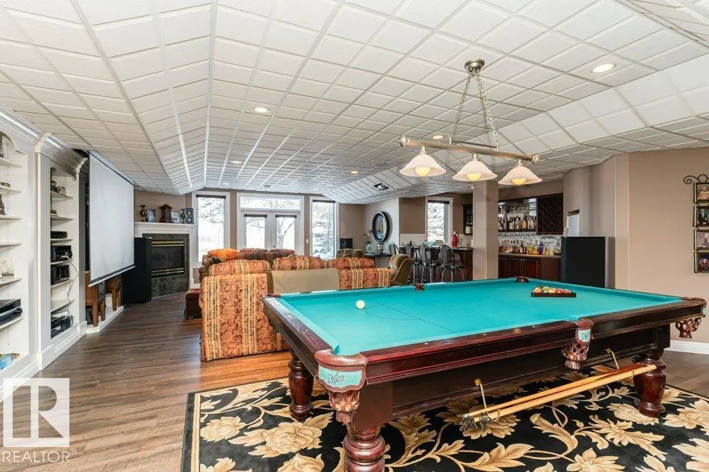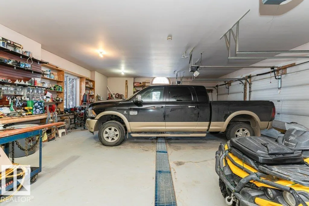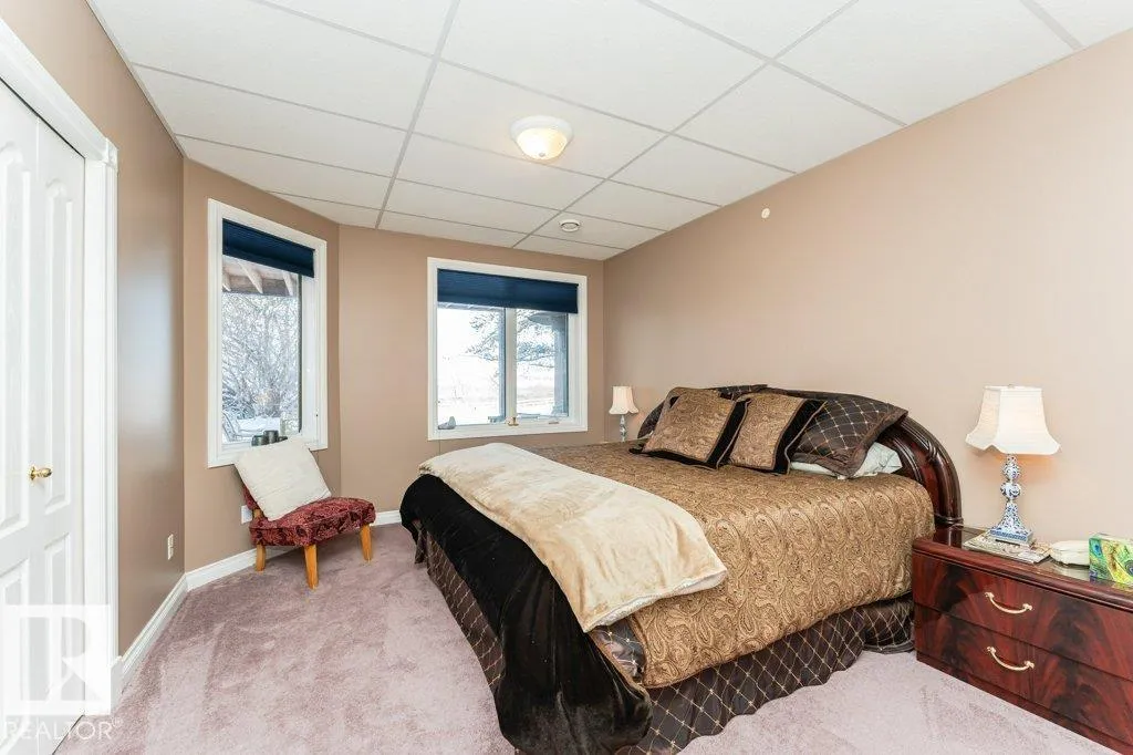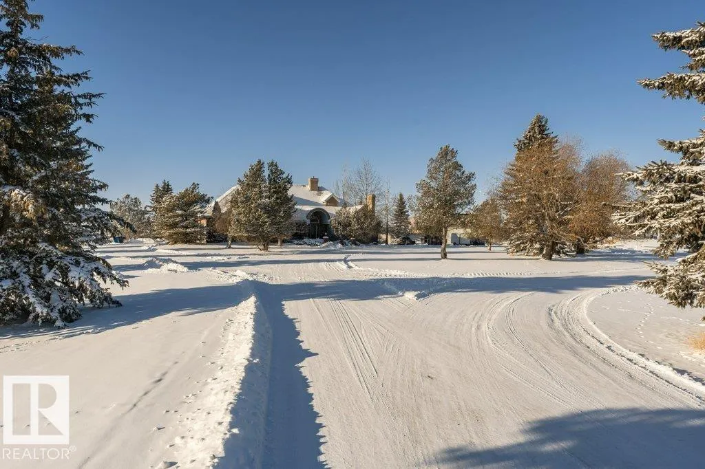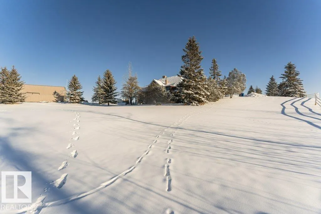 Nestled on a private, treed 80-acre setting along Whitemud Creek, this extraordinary estate combines serene natural beauty with prime investment potential in one of the regionâs hottest distribution and warehouse corridors. The hillside bungalow offers over 6,000 sq. ft. of exquisitely developed space, featuring a grand vaulted foyer and living room with sweeping views of the ravine, river, and endless fields. The primary suite is a retreat, with a spa-inspired ensuite and expansive walk-in closet. Sunlit living areas, including the kitchen and nook, flow onto a spectacular deck and enclosed sunroomâevoking the ambiance of a luxury mountain chalet. The walkout lower level includes three bedrooms, a home theatre, games room, bar, exercise studio and high end in-floor heating. Triple-car attached garage is drywalled with work benches and ground drain . A 7,000 sq. ft. heated shop with three-phase power provides incredible versatility. A cedar shake roof & commanding architecture complete this rare offering. (id:27476)