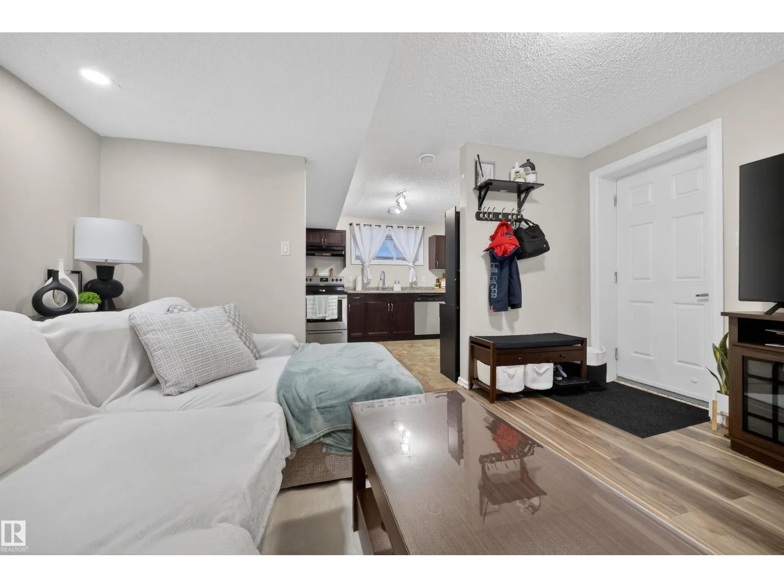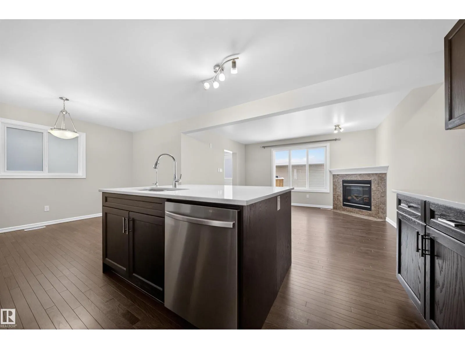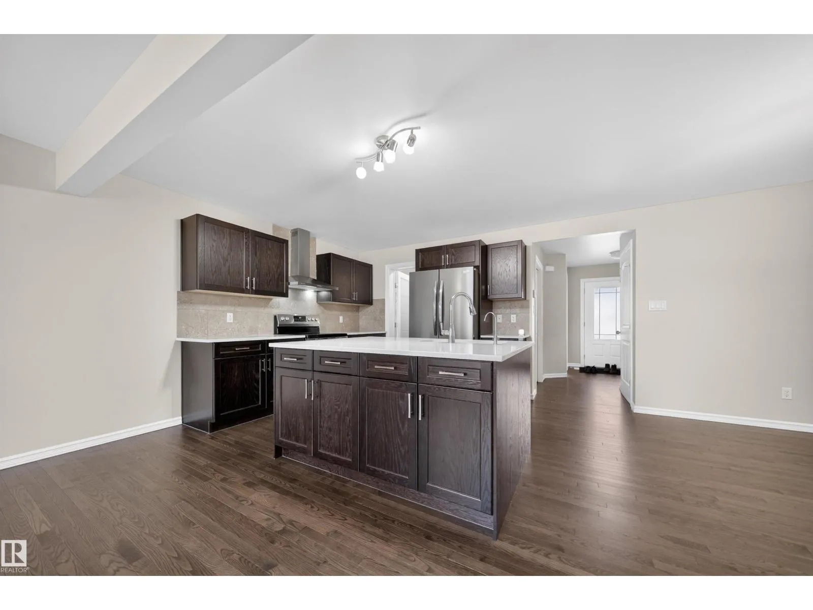 Must-See Legal Basement Home in Allard! Welcome to this beautifully upgraded home located in the desirable community of Allard, just a 2-minute walk to Dr. Lila Fahlman School, 2-minute drive to the high school and commercial plaza, and offering quick access to Anthony Henday Drive and Highway 2. Conveniently close to Costco and the Edmonton Airport.Situated on a huge pie-shaped lot, this home features a rare triple detached garage at the back and is loaded with upgrades throughout. The main floor offers a den, an open-concept kitchen, a spacious living area, and a bright dining spaceâperfect for family living and entertaining. The upper level includes 3 cozy bedrooms and 2 full bathrooms, providing comfort and functionality for the whole family. This home is designed for efficiency and modern living with Solar panels,2 furnaces,2 tankless hot water heaters , New hardwood floor . The legal basement suite has its own kitchen and a full bathroom, making it ideal for extended family or rental income. (id:27476)