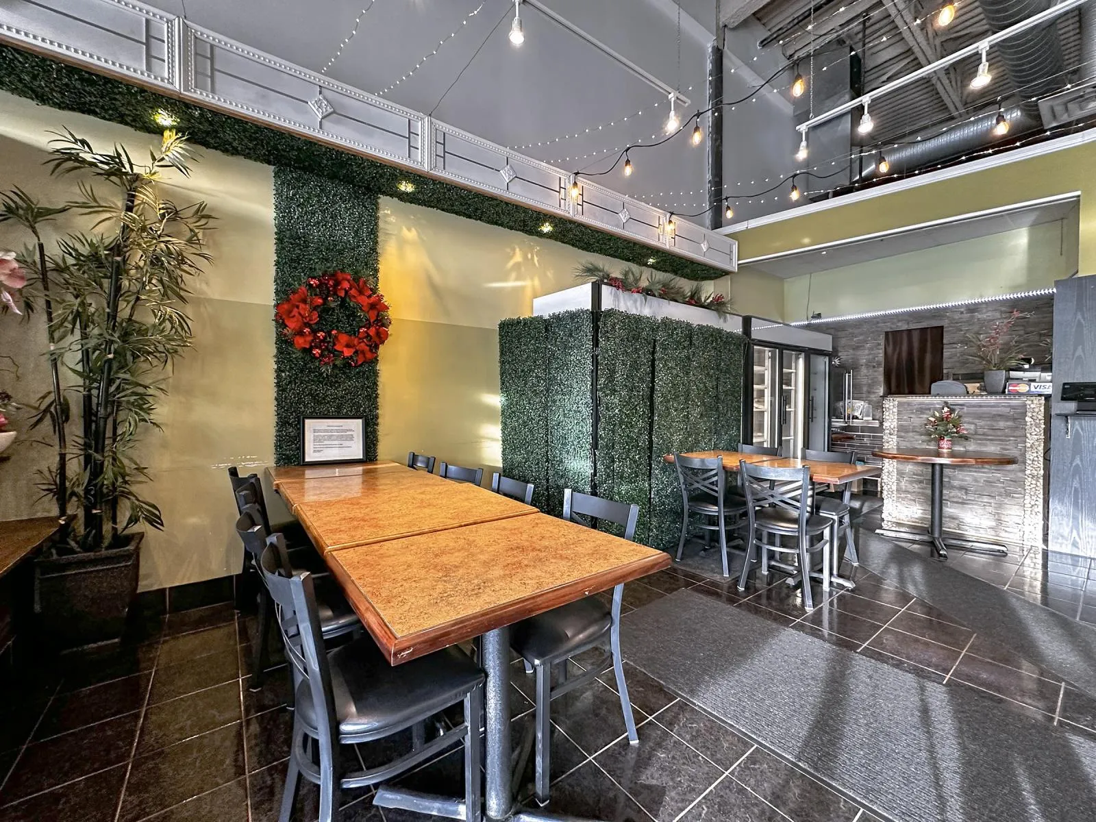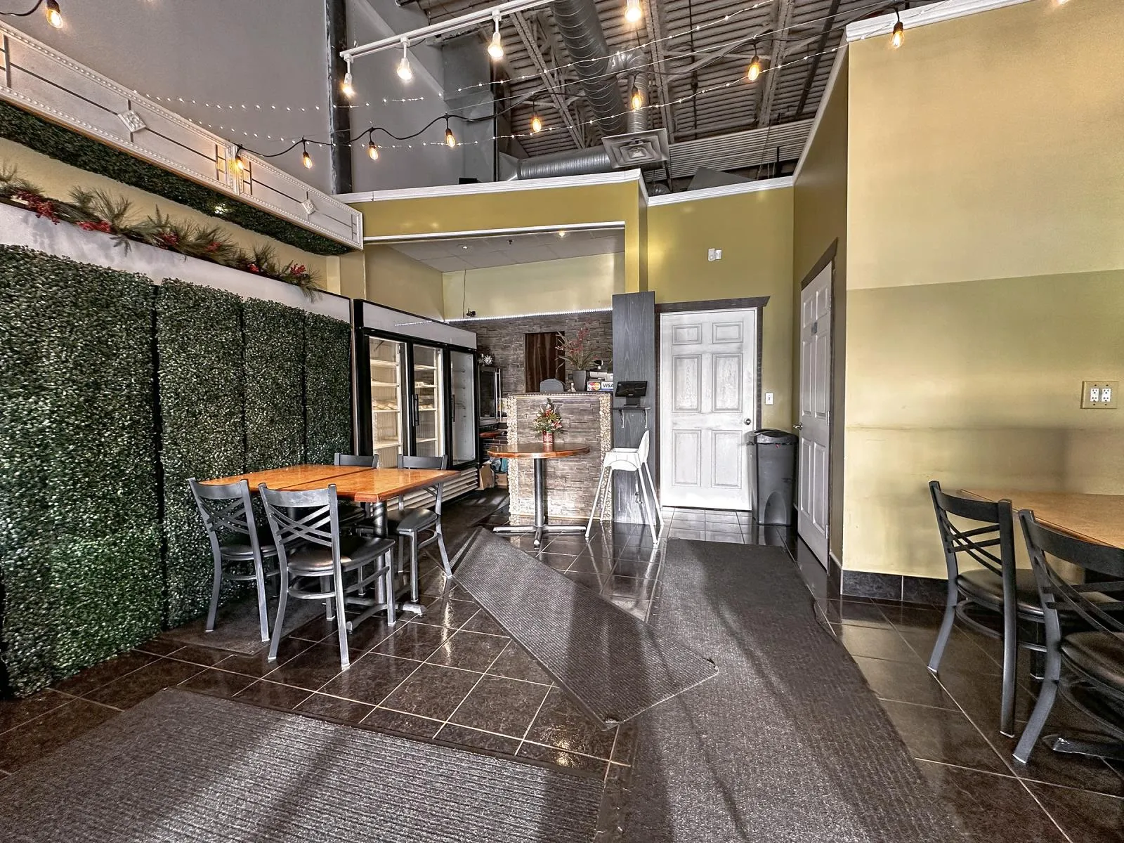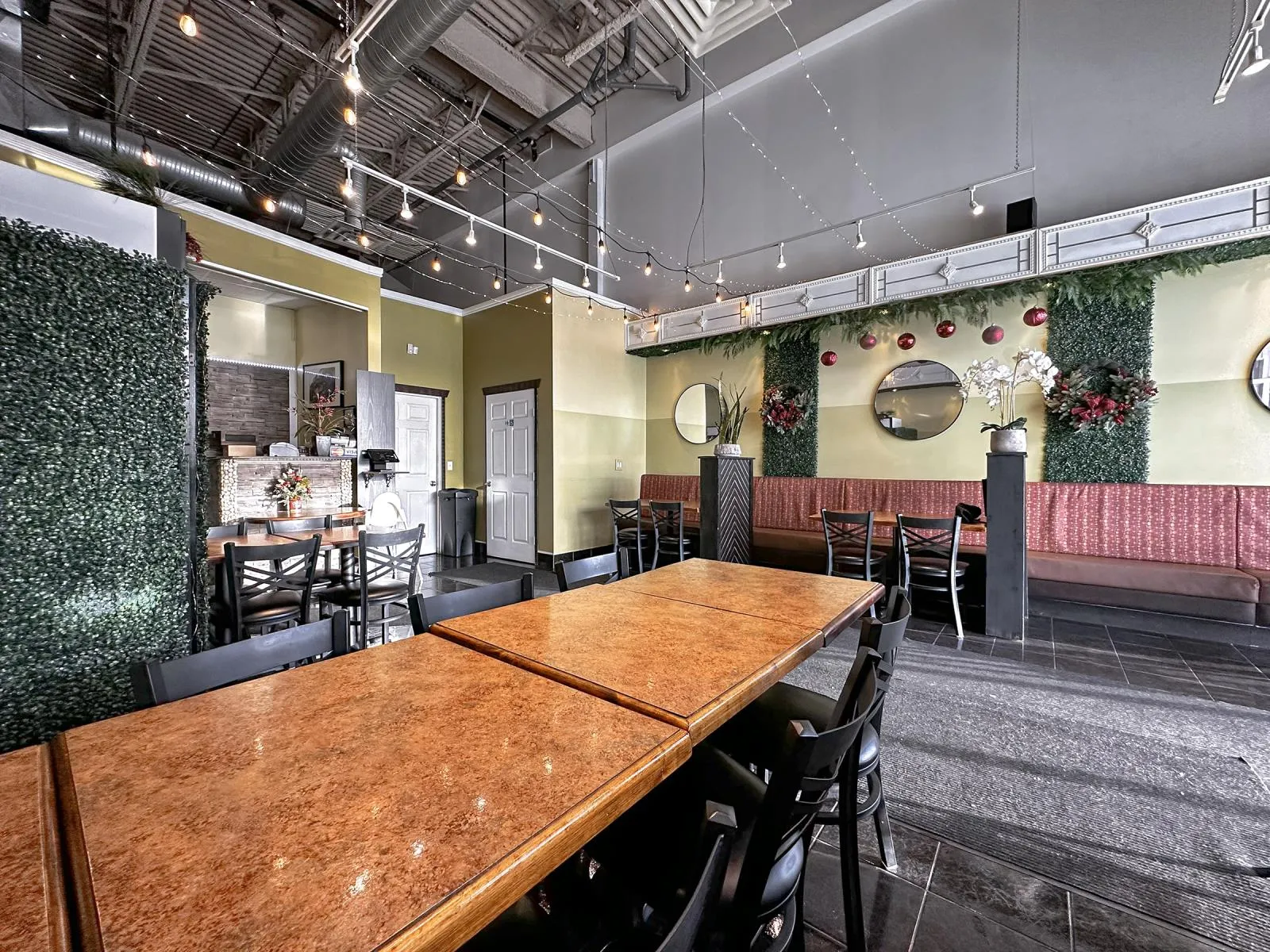 Asset sale! High visibility & High traffic location to run a restaurant business. Located in South Edmonton next to 91 Street Costco on 23 Avenue. Previously operated as a vegan restaurant, the sale price includes all existing restaurant business assets. Total 1200 sqft. The space is licensed for up to 50 seats. Measures approximately 20 x 60, with a 20 ft ceiling height offering potential for a future mezzanine. This is a turnkey opportunity for a restaurant operator. Please review the 3D tour for the layout prior to requesting a showing. Base rent $4000/m. (id:27476)