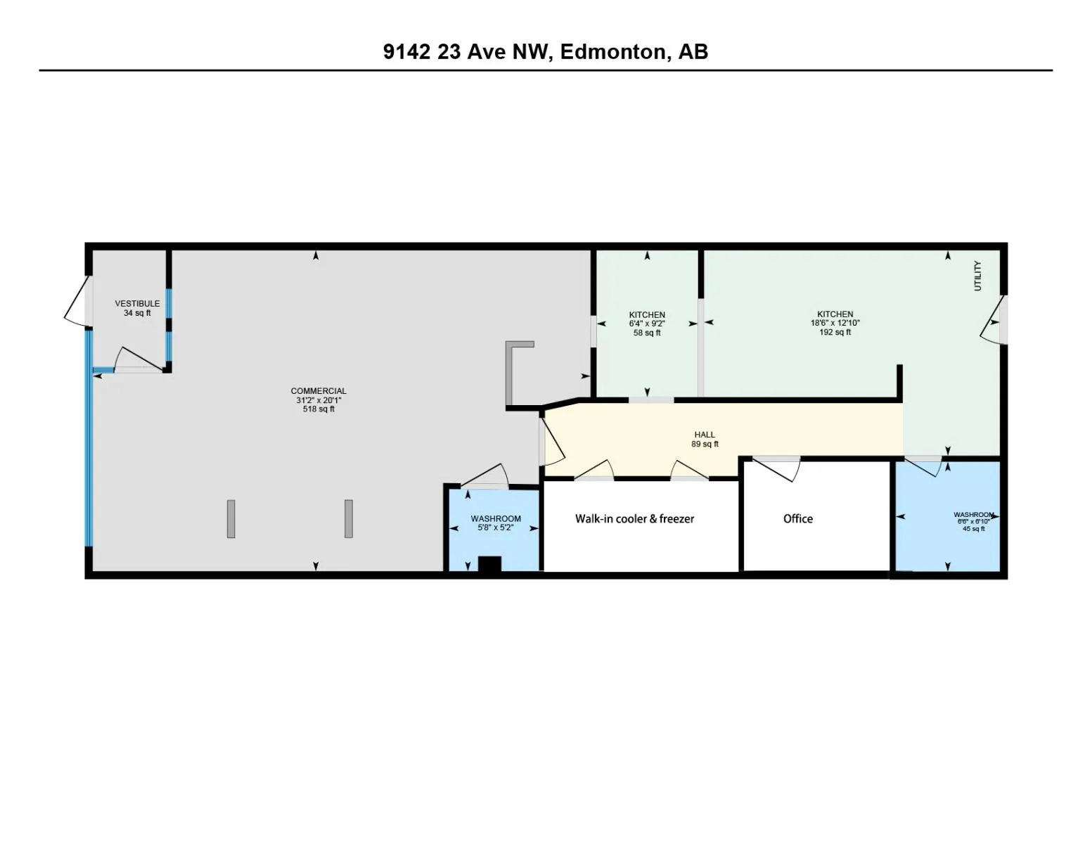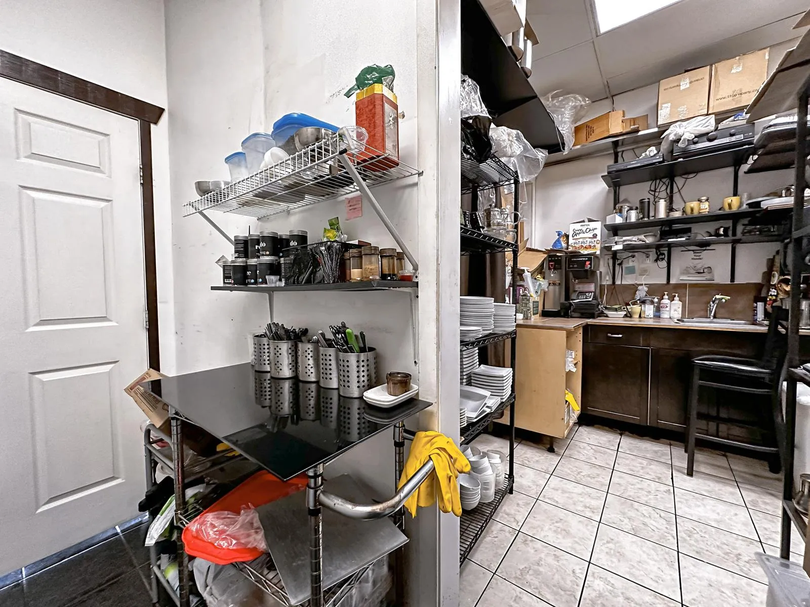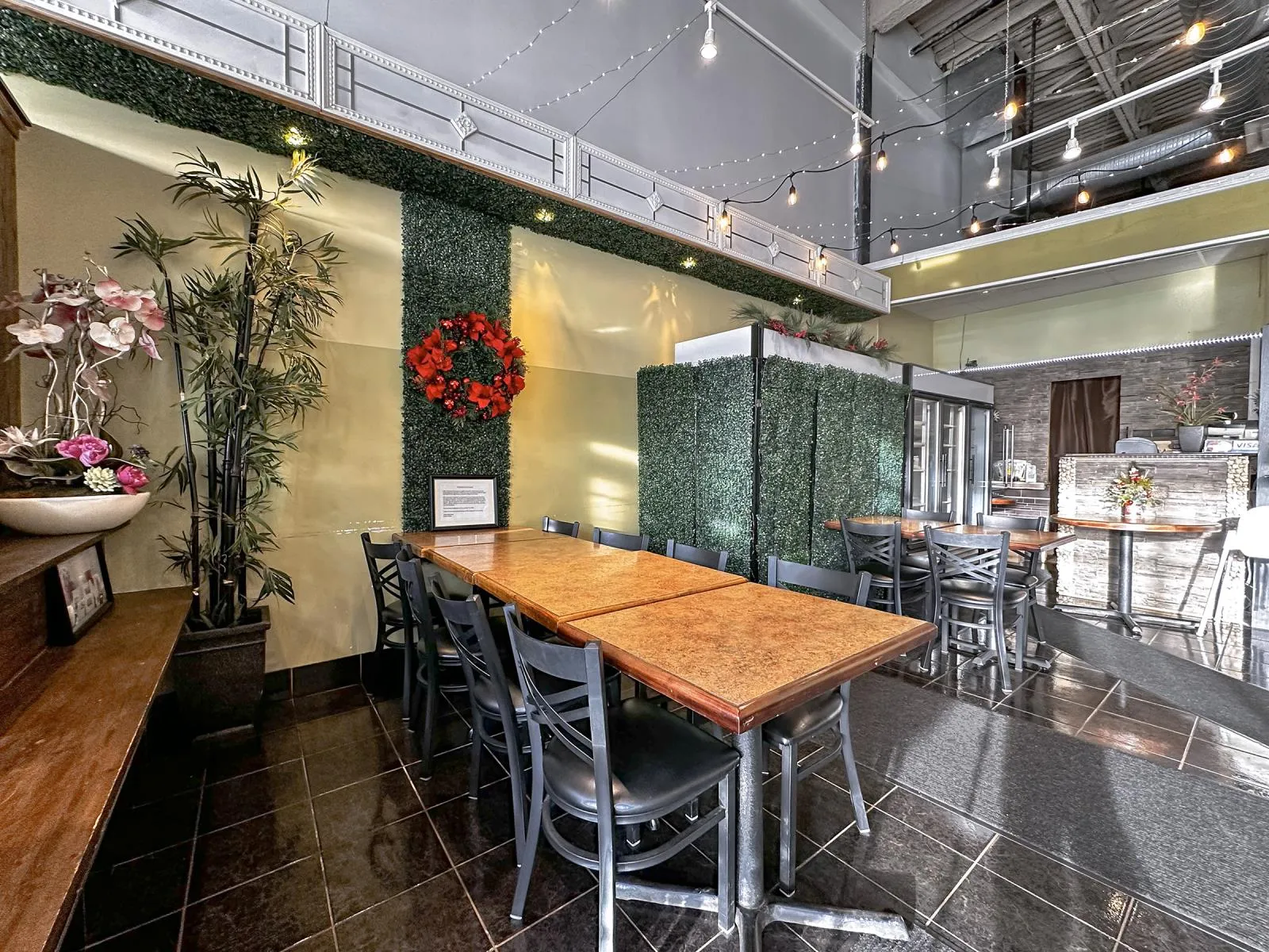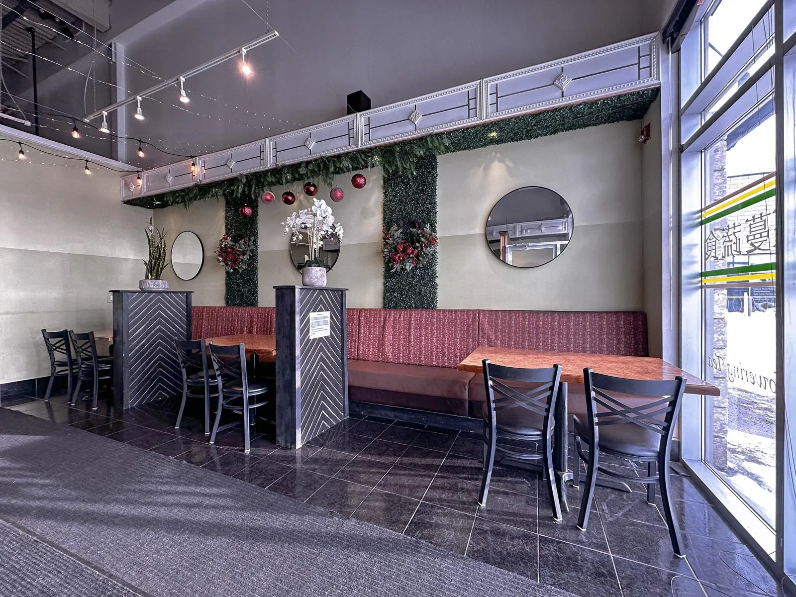 Asset sale! High visibility & High traffic location to run a restaurant business. Located in South Edmonton next to 91 Street Costco on 23 Avenue. Previously operated as a vegan restaurant, the sale price includes all existing restaurant business assets. Total 1200 sqft. The space is licensed for up to 50 seats. Measures approximately 20 x 60, with a 20 ft ceiling height offering potential for a future mezzanine. This is a turnkey opportunity for a restaurant operator. Please review the 3D tour for the layout prior to requesting a showing. Base rent $4000/m. (id:27476)