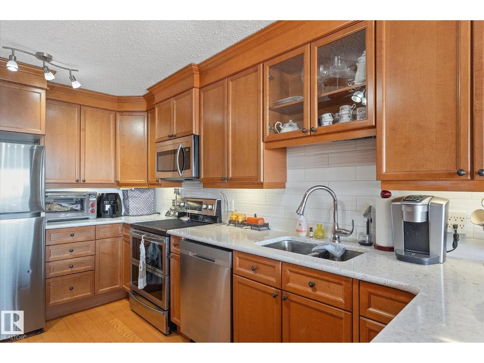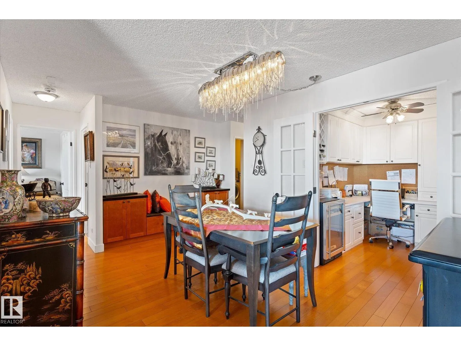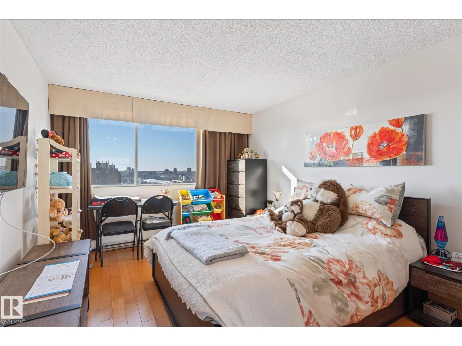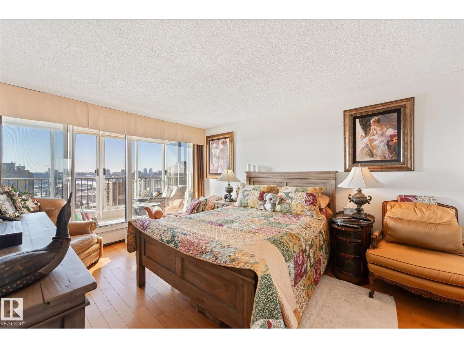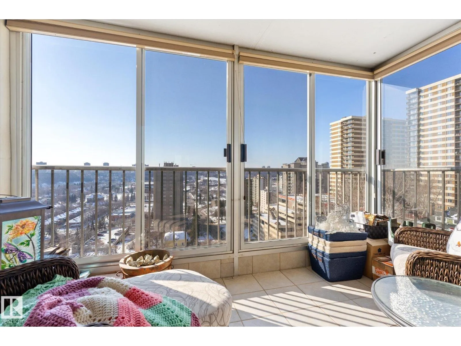 STUNNING RIVER VALLEY VIEW from this RENOVATED 2 bedroom 2 bathroom condo in VALLEY TOWERS conveniently located steps to the river valley, the LRT, Downtown, the Ice District & quick access to the U of A. Beautiful kitchen with custom cabinetry with lots of pull-out drawers, granite countertops, designer skyline glass backsplash, black appliances, concrete wall between the kitchen & dining room. Spacious living room with access to the south facing balcony. The 2nd bedroom is across from the 4 piece bathroom. The primary suite has access to a south facing balcony to enjoy the great views. There is also a walk through closet with closet organizers & an upgraded bathroom with a walk-in shower. Also, there is a laundry/storage room. Titled underground parking #150 & an extra storage locker #24. The condo fees include all utilities, cable TV & the amenities: Fitness room, Indoor Pool, Hot Tub, Sauna, Steam Room, Social Room, an Outdoor Patio with BBQs & Visitor Parking. PETS OKAY: SUBJECT TO BOARD APPROVAL (id:27476)