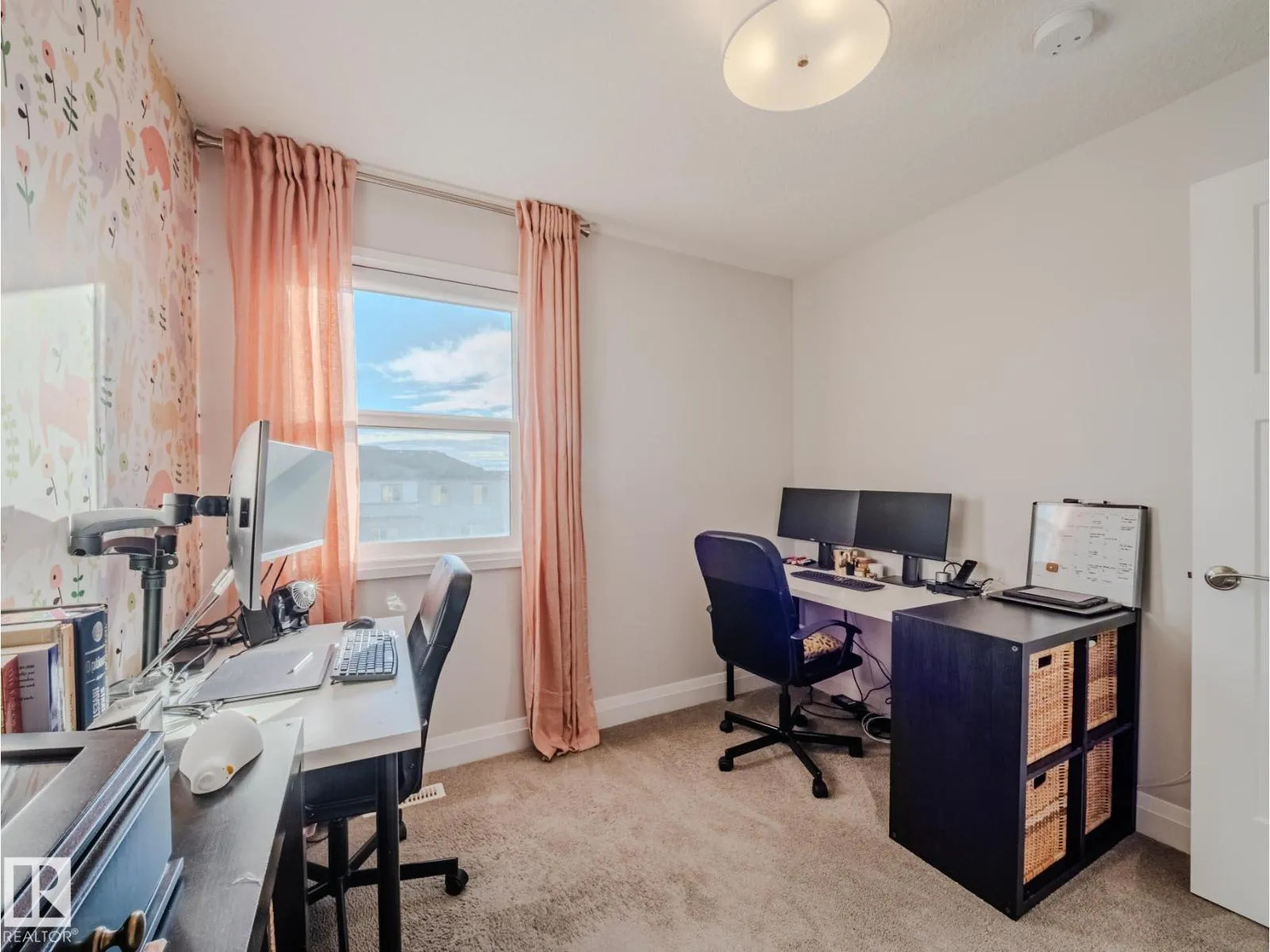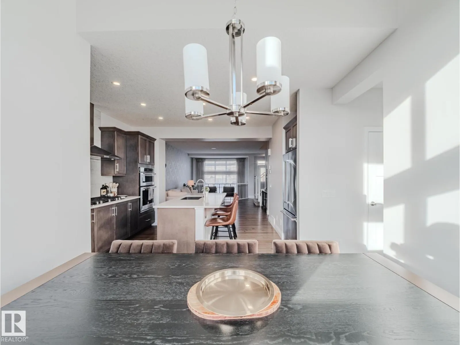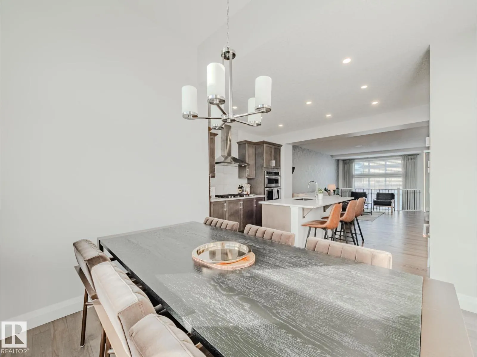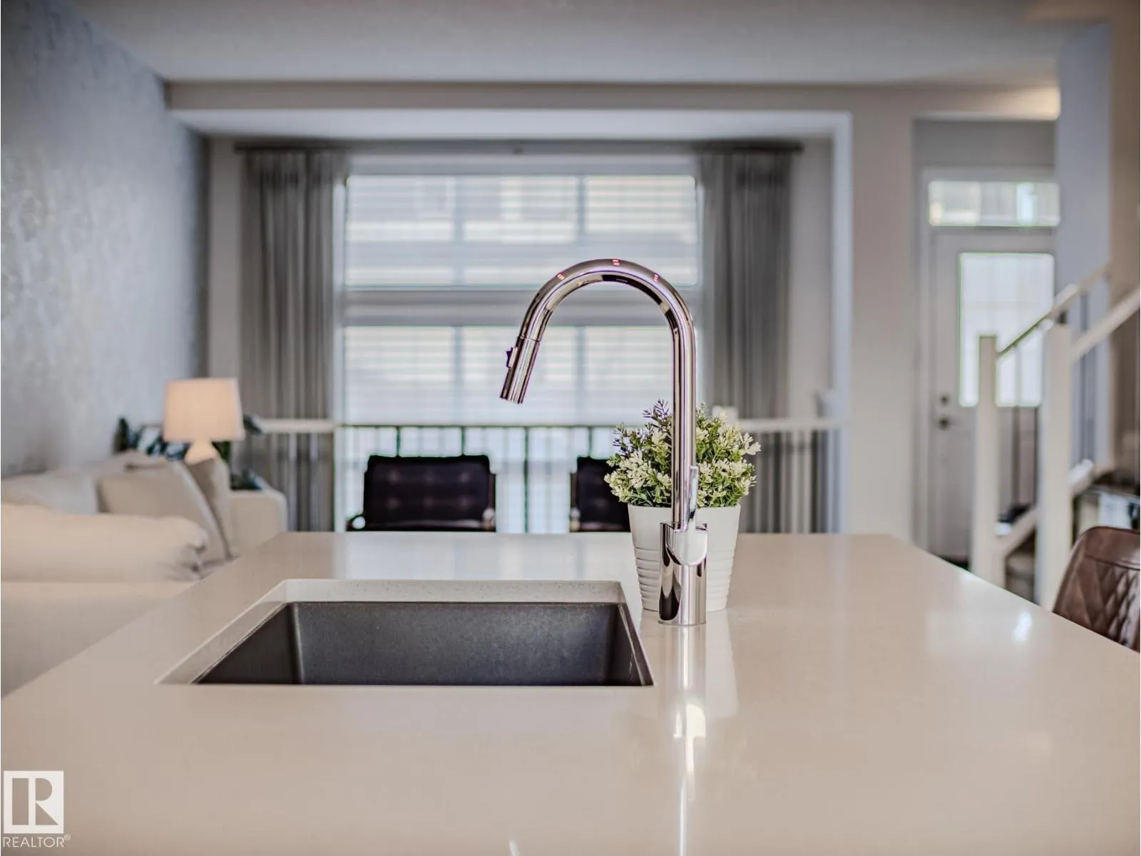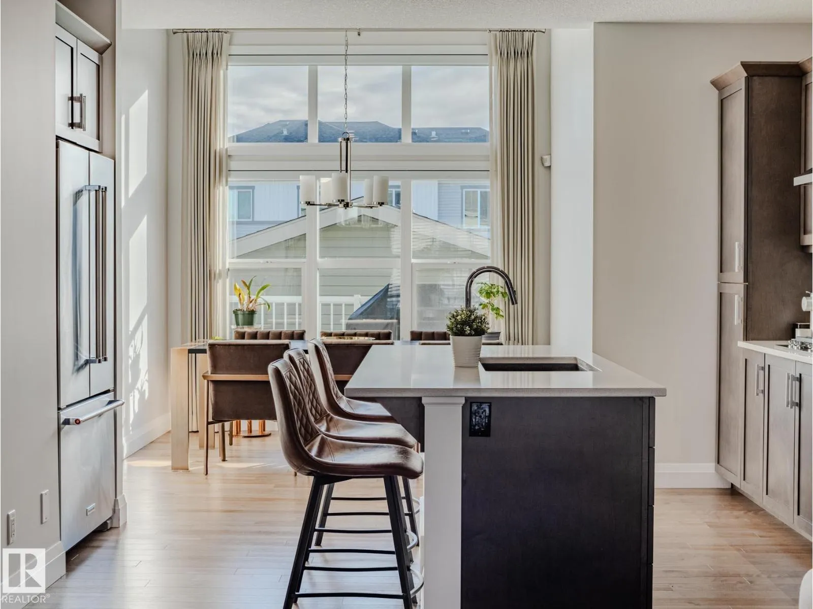 Welcome to Allard, a family-focused SW community with a newer K-9 school, parks, shopping and amenities nearby. This former Jayman BUILT showroom is loaded with upgrades and offers 1,428 sq.ft. of modern living with 9â ceilings, laminate flooring and a dramatic open-to-below great room that brings natural light into both the main floor and developed basement family room. The stylish kitchen features built-in stainless appliances including a gas cooktop and chimney hoodfan, plus a bright dining nook with 11â ceiling. Upstairs are 3 bedrooms including a spacious primary with upgraded closet cabinetry, walk-in closet and ensuite. High-end blinds and window coverings, in-ceiling speakers with basement rough-in, central A/C and fresh attic insulation (2024) add comfort and value. Enjoy a fully fenced yard and an oversized 22â deep insulated and drywalled garage with 8â height and 240V EV power, perfect for trucks or SUVs. Move-in ready and beautifully maintained! (id:27476)