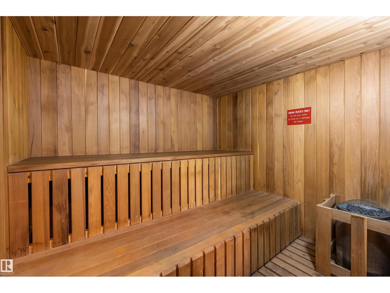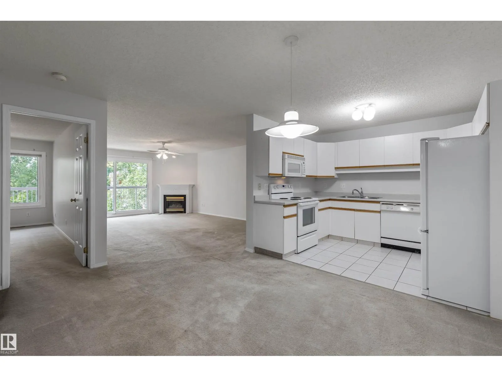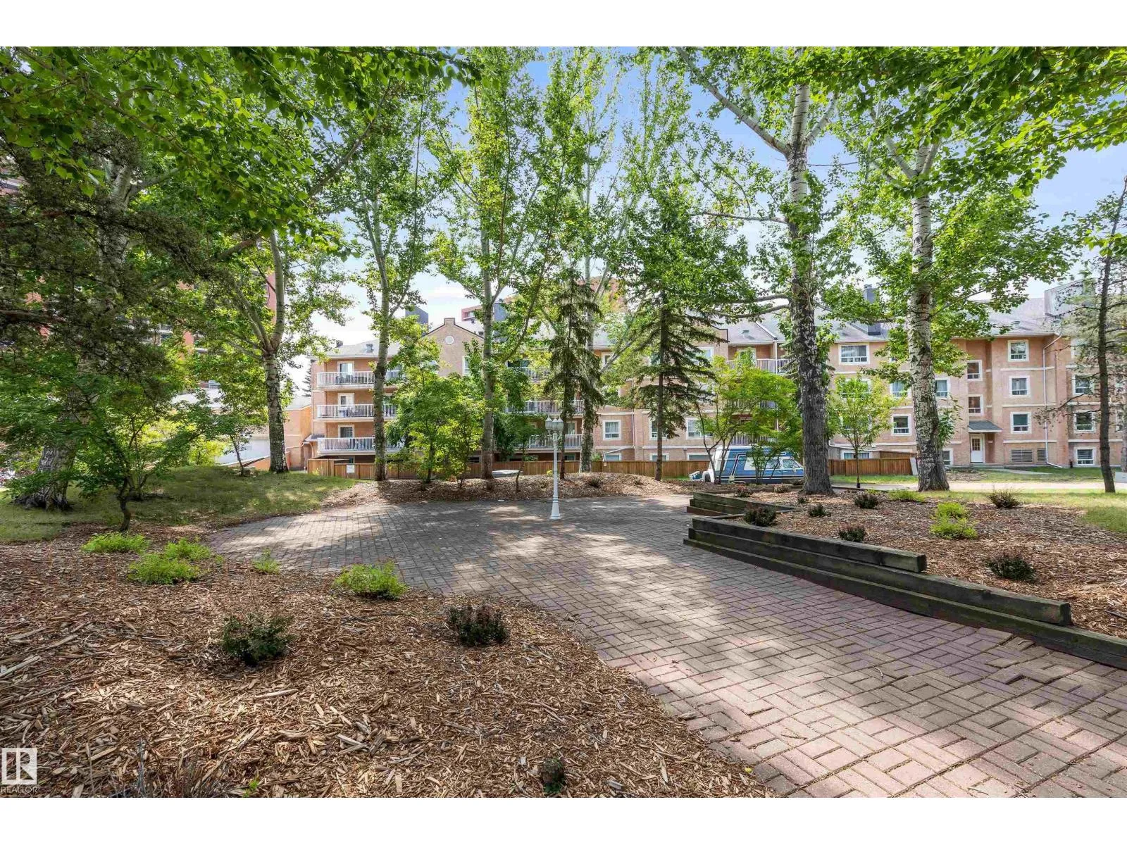 Welcome to this move-in ready TOP FLR, 1150sqft 2 BEDROOM, 2 BATHROOM condo w/ HEATED UNDERGROUND parking! The huge, SOUTH facing balcony fills the unit w/ natural light & offers the perfect spot to relax & soak up the sun while overlooking the park-like courtyard. Inside, the spacious living rm w/ GAS FP leads to your open kitchen, boasting plenty of counter & cabinet space! Retreat to the large primary w/ DBL walk thru closet & 4pc ensuite. A 2nd bedroom & full bathroom welcomes guests or roommates. And the massive INSUITE laundry features loads of storage or even space for a small office! Updates: all fresh paint, fridge (2024), windows (2022), newer roof & window coverings, carpets cleaned. Complex also offers gym, sauna and is wheelchair friendly. Perfectly located near the River Valley, Ice District, LRT & bus routes for easy access to NAIT, MacEwan, UofA & Downtown amenities. 10+ (id:27476)