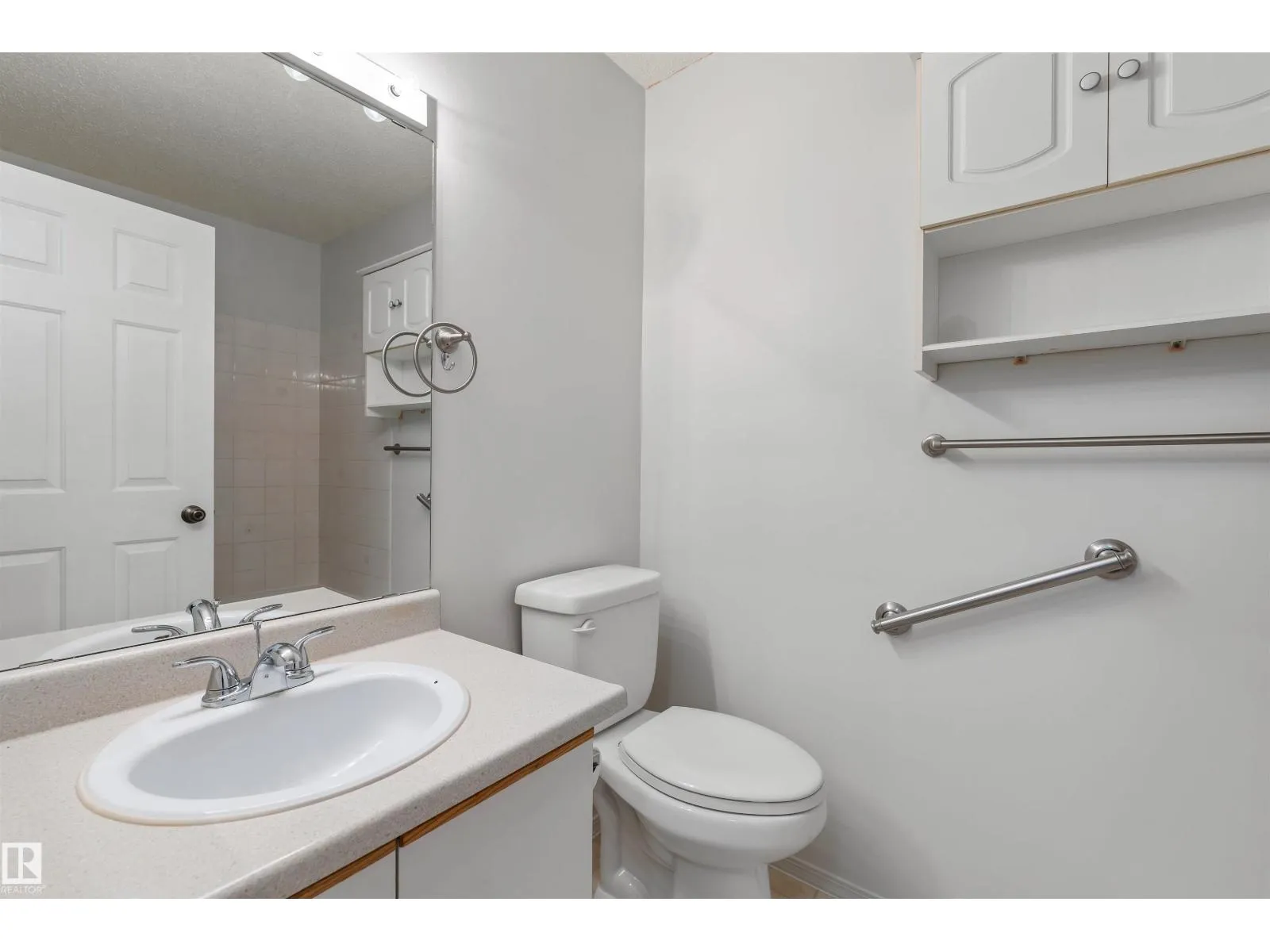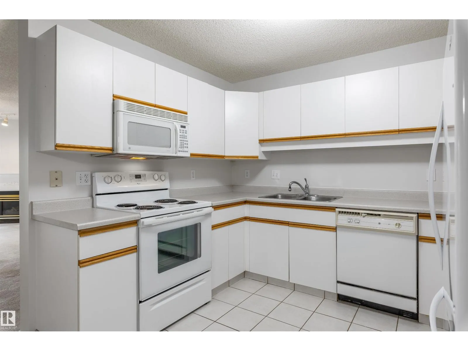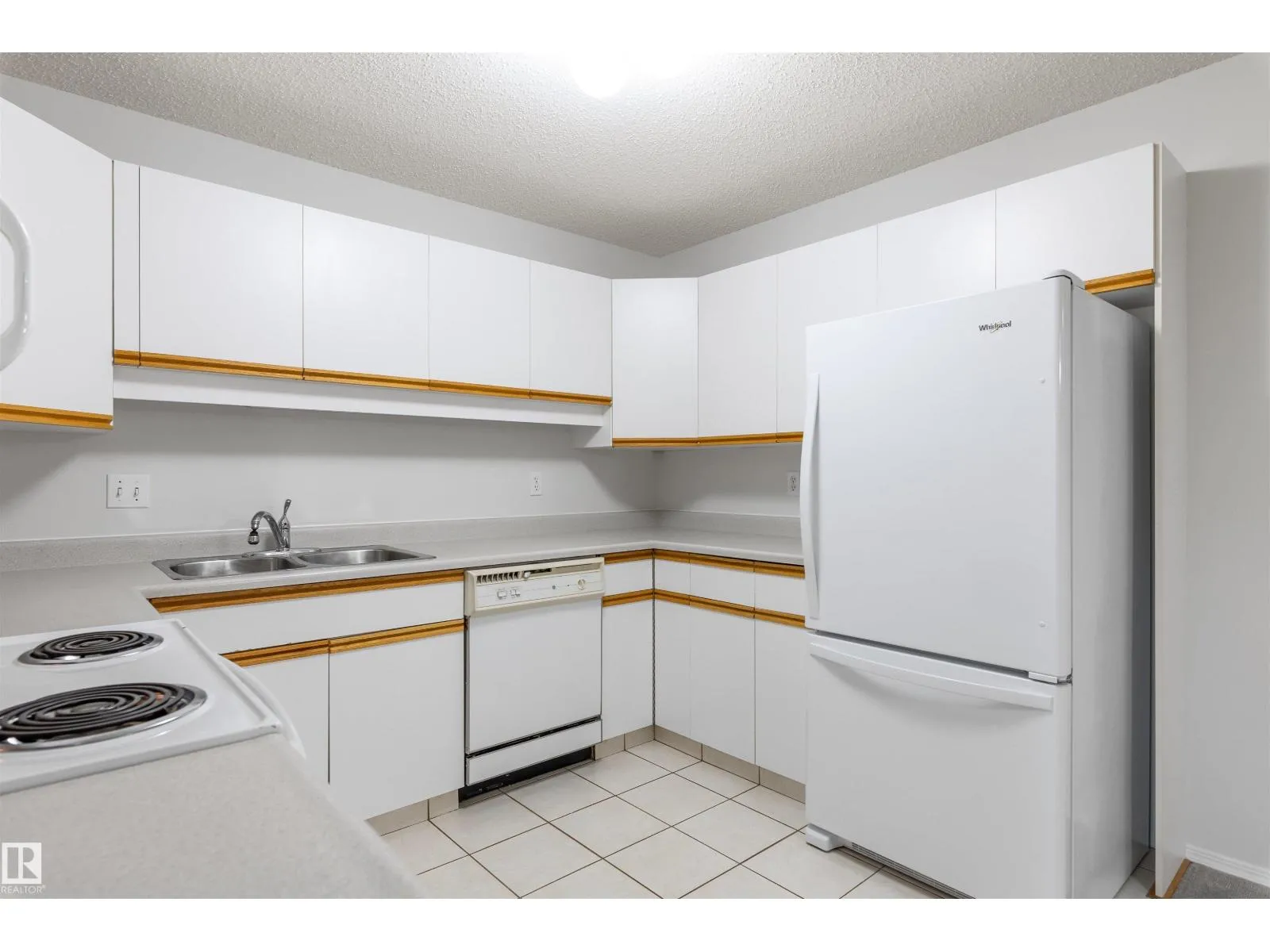Welcome to this move-in ready TOP FLR, 1150sqft 2 BEDROOM, 2 BATHROOM condo w/ HEATED UNDERGROUND parking! The huge, SOUTH facing balcony fills the unit w/ natural light & offers the perfect spot to relax & soak up the sun while overlooking the park-like courtyard. Inside, the spacious living rm w/ GAS FP leads to your open kitchen, boasting plenty of counter & cabinet space! Retreat to the large primary w/ DBL walk thru closet & 4pc ensuite. A 2nd bedroom & full bathroom welcomes guests or roommates. And the massive INSUITE laundry features loads of storage or even space for a small office! Updates: all fresh paint, fridge (2024), windows (2022), newer roof & window coverings, carpets cleaned. Complex also offers gym, sauna and is wheelchair friendly. Perfectly located near the River Valley, Ice District, LRT & bus routes for easy access to NAIT, MacEwan, UofA & Downtown amenities. 10+ (id:27476)