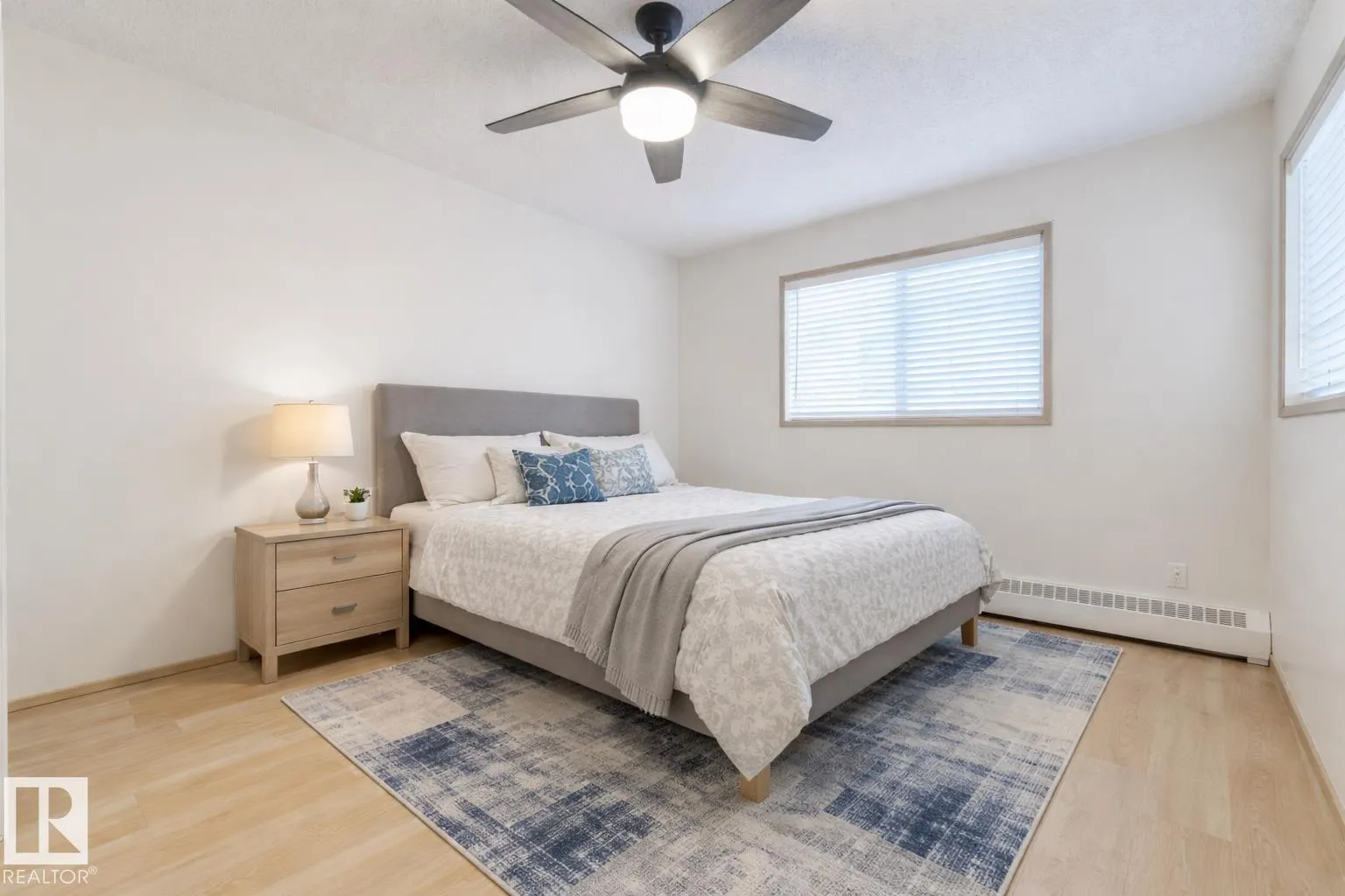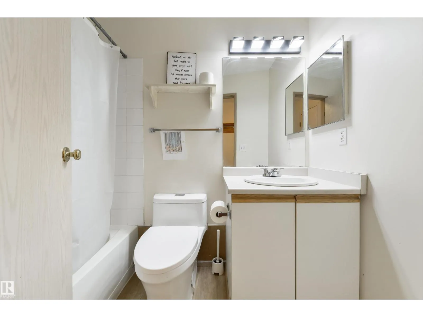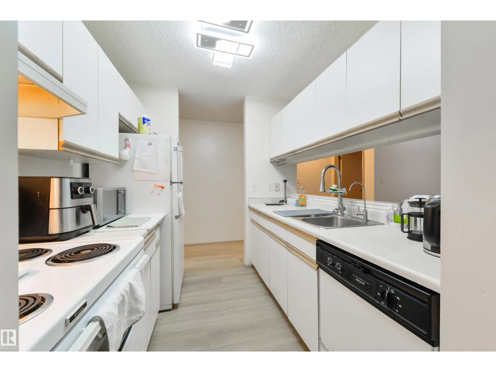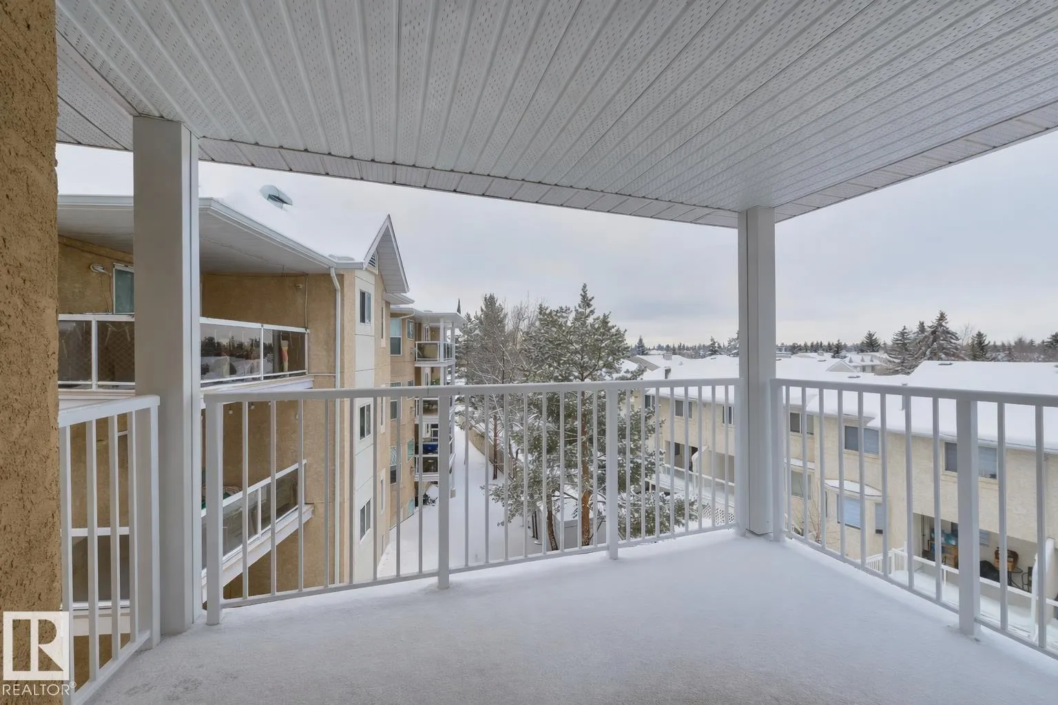Welcome to this well-maintained 902 sq. ft. top-floor corner unit! The newer neutral paint and durable vinyl plank flooring throughout, create a bright, modern feel. The open-concept layout offers excellent flow and functionality for everyday living. This thoughtfully designed two-bedroom layout places the bedrooms on opposite sides of the unit, providing ideal separation and privacy. You'll love the spacious primary bedroom which includes a walk-through closet and a private 4-piece ensuite bathroom. The second bedroom is also generously sized. Additional highlights include in-suite laundry, a large storage room, ample visitor parking and a covered parking stall. Enjoy outdoor living on the large southwest-facing balcony, ideal for soaking up afternoon and evening sun. Situated in a quiet, well-managed building and close to West Edmonton Mall and all amenities, this move-in-ready condo is a fantastic opportunity for first-time buyers, downsizers, or investors. ***Virtual staging used*** (id:27476)