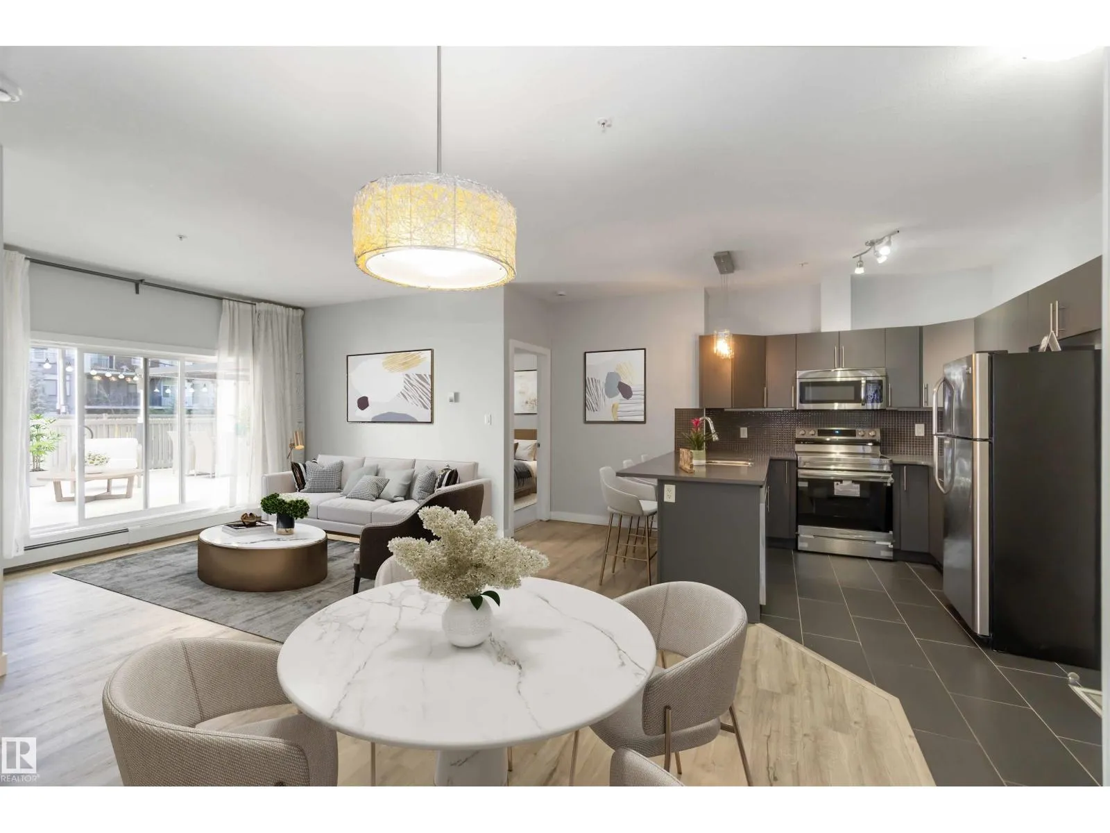 Welcome to Edmonton downtown living at Studio Ed in Queen Mary Park! This modern 2 bedroom 2 baths condo with 1 titled underground parking offers urban living and comfort. The open concept living/ dining area with patio door to a large patio to relax at the outdoor space. Modern U-shaped kitchen with ample storage. Primary bedroom features a walk-through closet and ensuite bath. Second bedroom, second full bath and in suite laundry. Excellent condition with new stove, new carpet.. etc. Move in ready! Excellent location! Well managed building with visitor parking stalls. Close to Grant MacEwan, public transit, restaurants, shopping and the River Valley!! (id:27476)