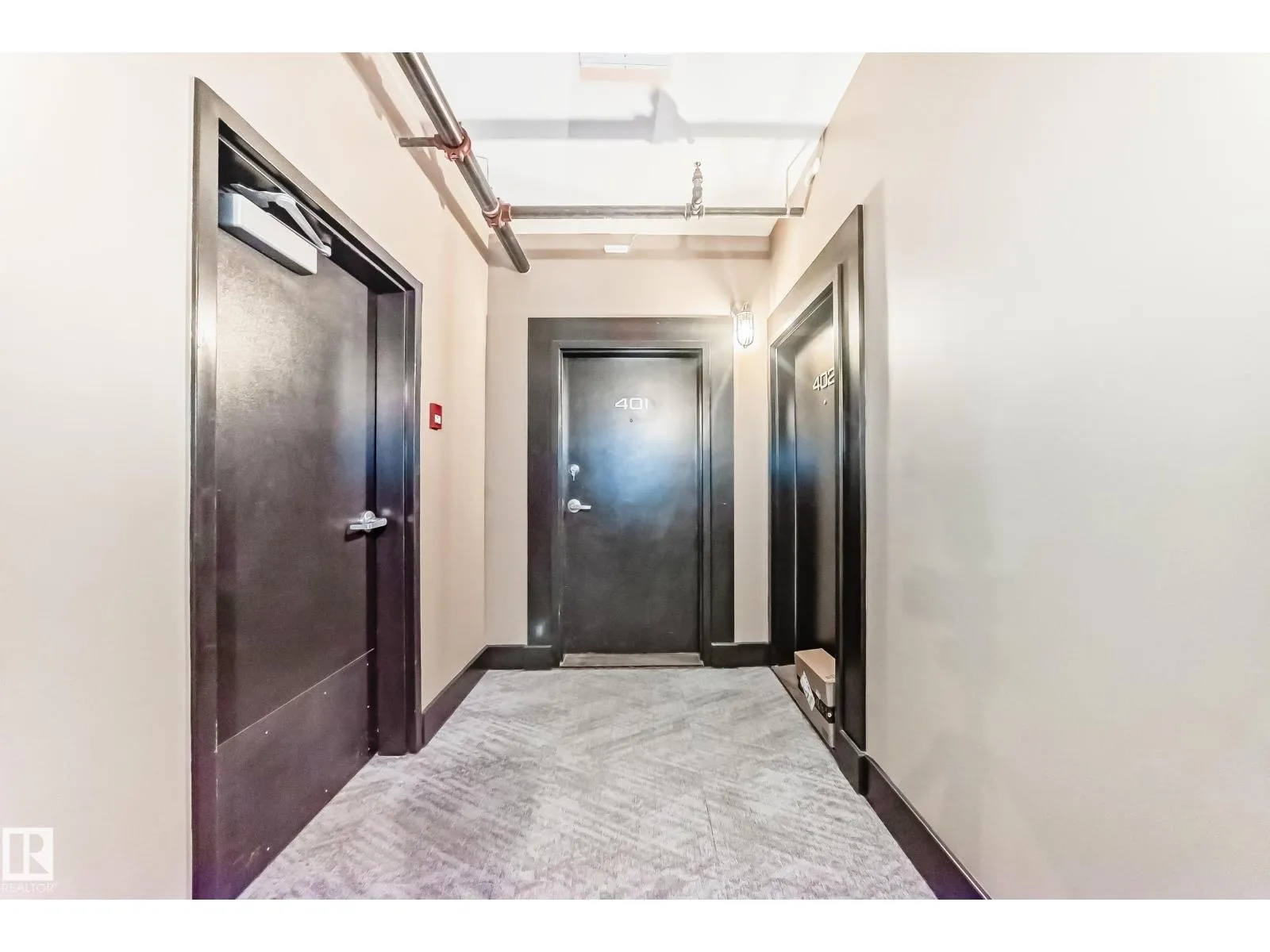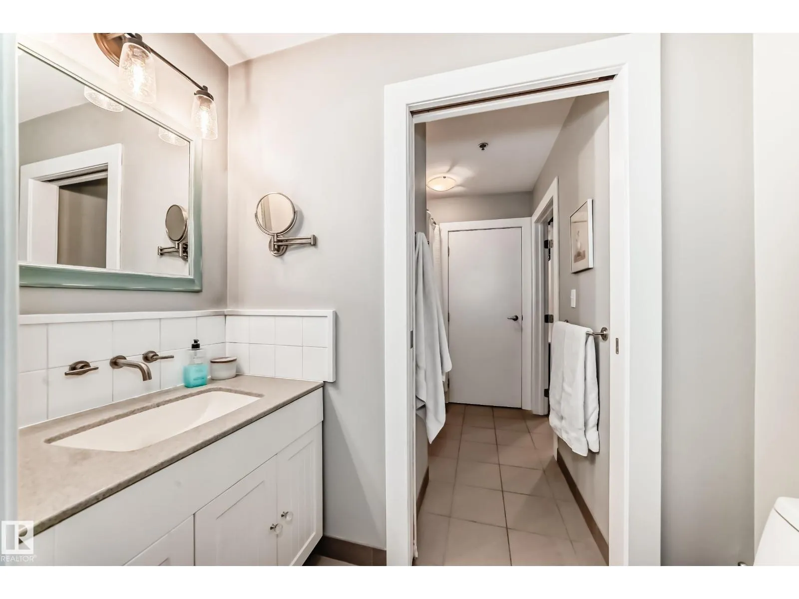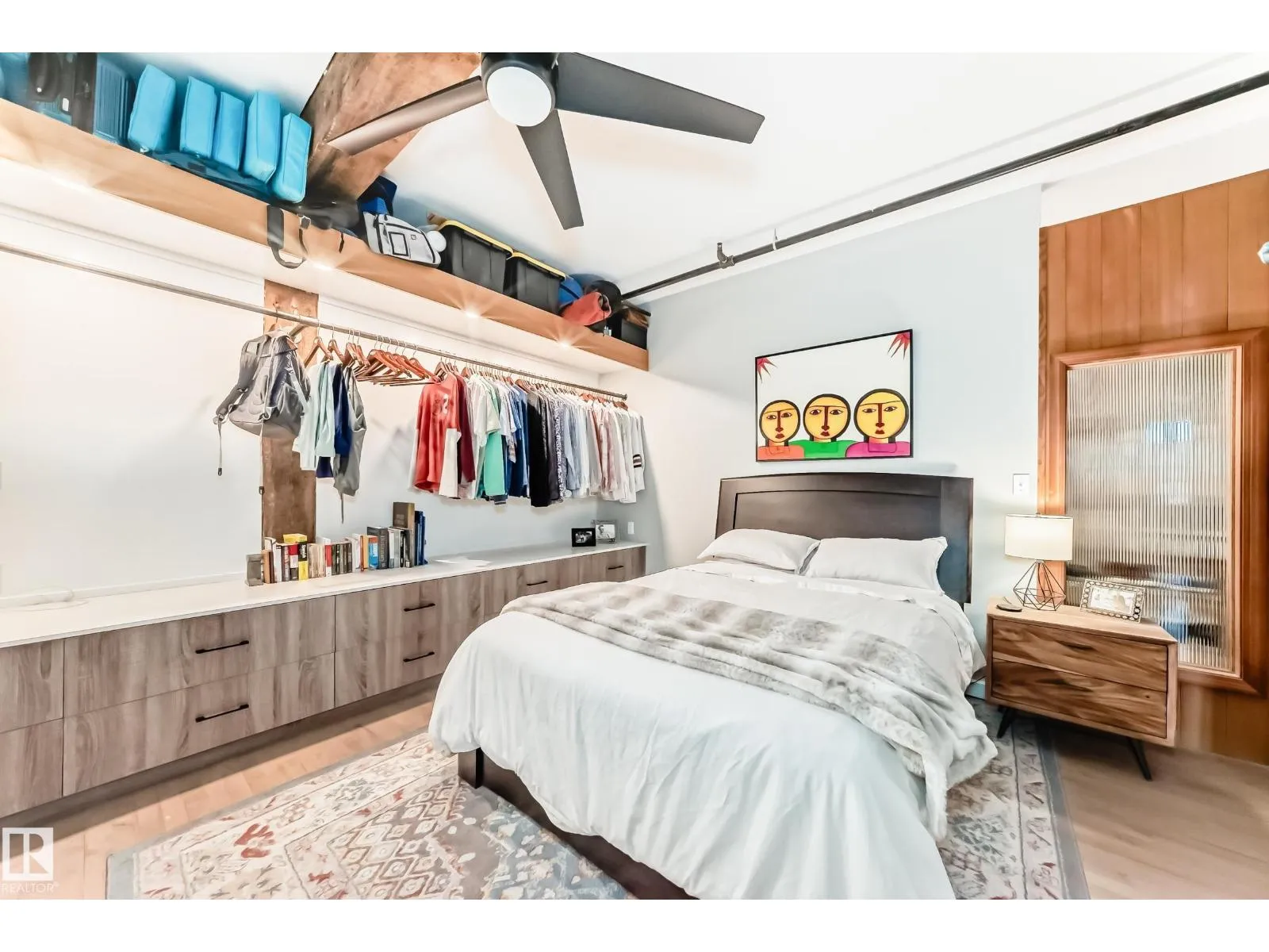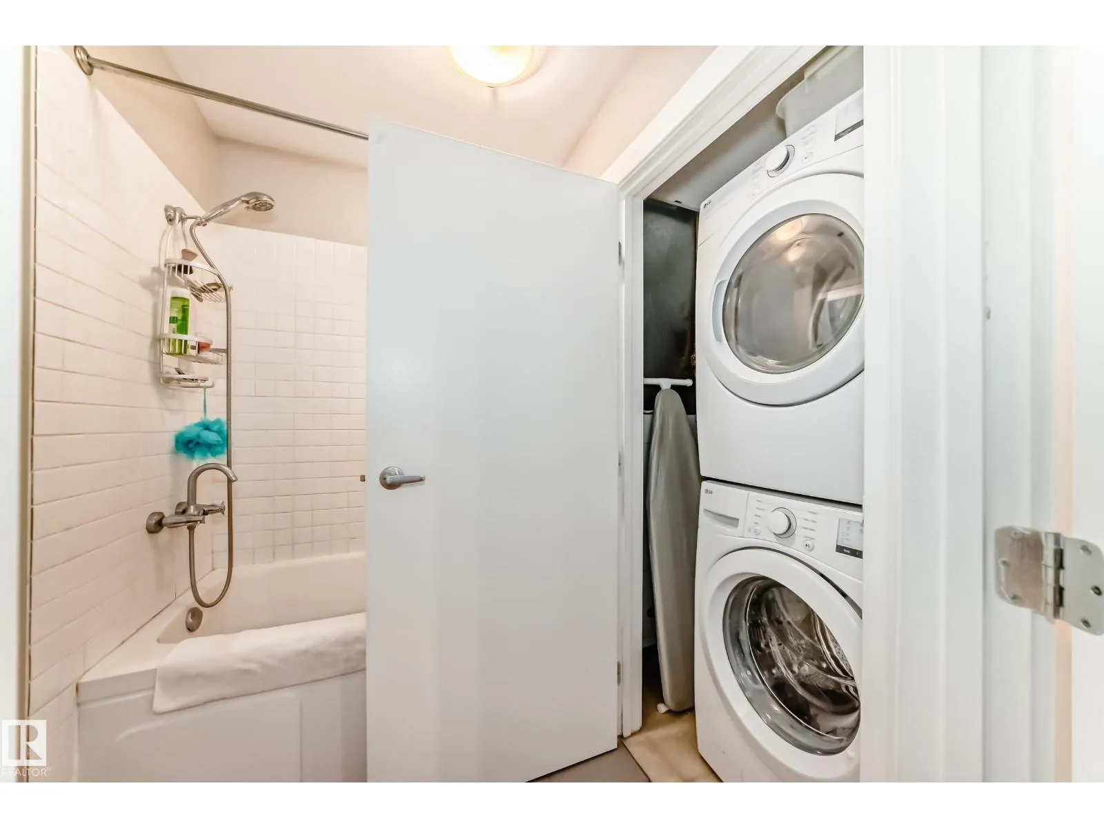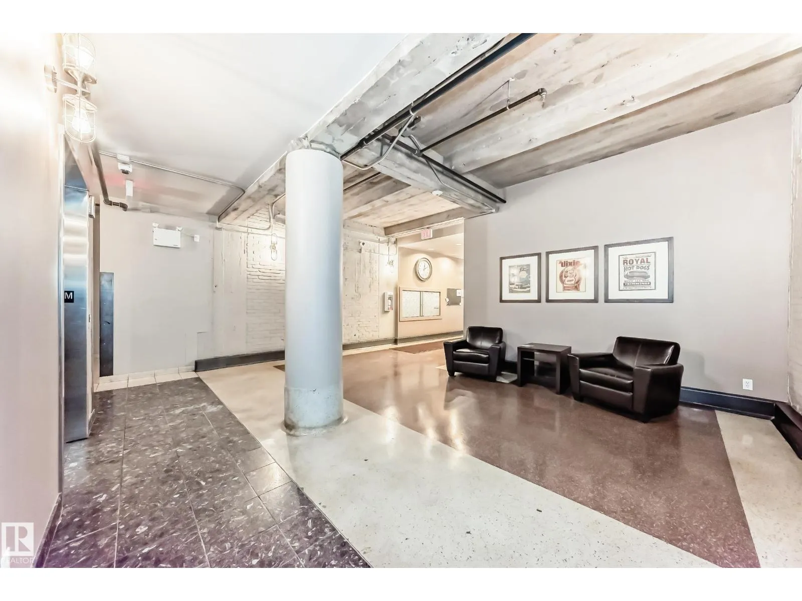 Pristine studio loft in the historic Phillips Lofts. This stunning warehouse-style unit offers 1,050 sq. ft. of open-concept living w/ exposed brick, original timber beams, 9â ceilings, & massive windows throughout. Thoughtfully renovated while preserving its character, the kitchen features new quartz countertops, new tile backsplash, refinished cabinets w/ new hardware, deep single-basin sink, & updated faucet, along w/ a premium LG induction range, LG over-the-range microwave, & Danby beverage centre. Custom built-in wardrobe cabinetry includes clothes rail, upper storage, & dimmable LED lighting, maximizing functionality while maintaining the loft aesthetic. Additional storage added w/ a new custom shelf in the front closet. The 4-piece bath includes new full-size LG washer & dryer, & a pocket-door. Maple hardwood floors have been professionally refinished, & the private balcony is enhanced w/ Turkish pendant lighting. Unbeatable location steps from Rogers Place, Jasper Ave., restaurants, cafés, &LRT. (id:27476)