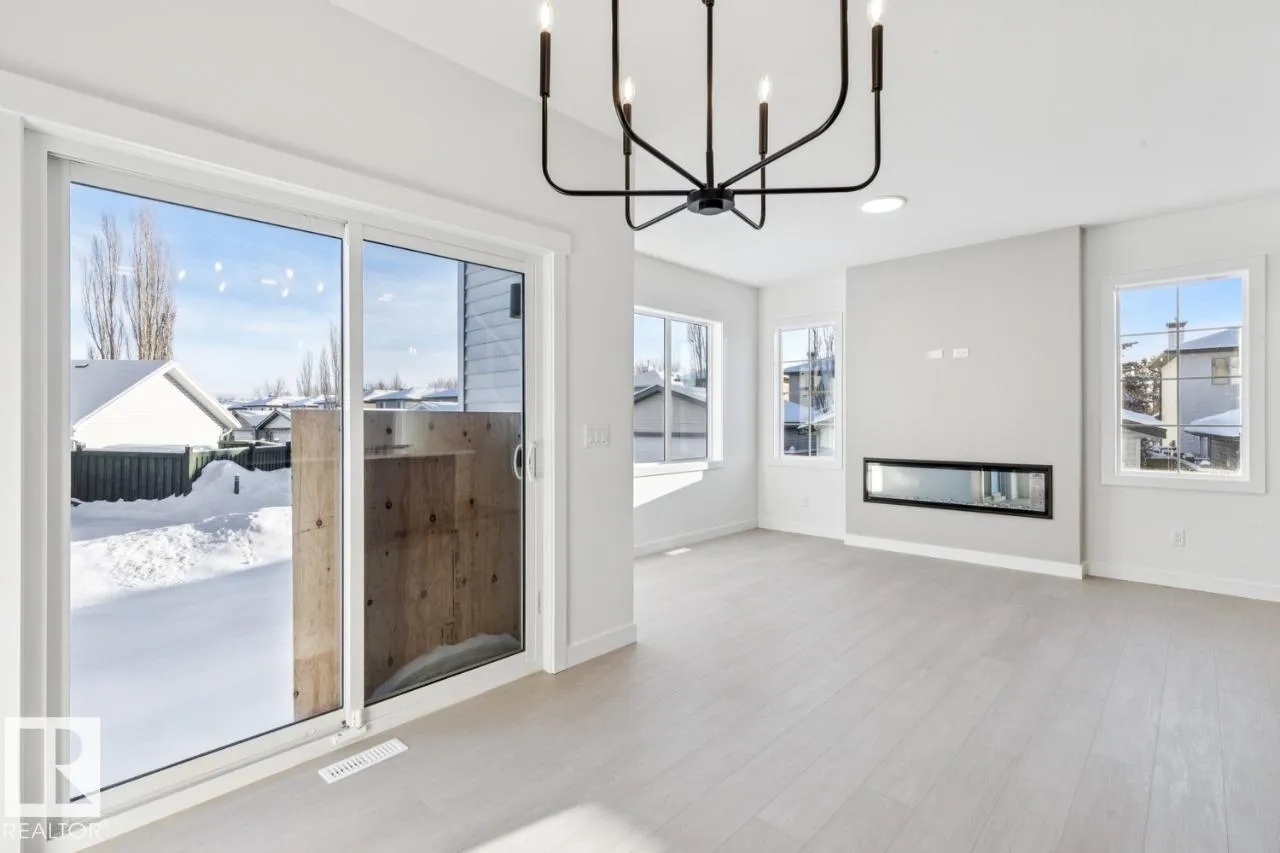 Discover timeless design and modern family living in this 2,000 sq. ft. Parkwood Homes two-storey, ideally located on a corner lot across from a park. Featuring 4 bedrooms and 3 baths, this bright, open home includes a main-floor bedroom and full bathâperfect for guests. The great room offers cozy charm with an electric fireplace, while the kitchen impresses with a large island, eating bar, walk-through pantry, and open dining area. A mudroom with built-in bench and hooks adds everyday convenience. Upstairs, the open-to-below staircase leads to a central bonus room, laundry, and three spacious bedrooms. The primary bedroom features a large walk-in closet and 4-piece ensuite. With a 9â foundation, side entry, and extra windows for abundant light, this home blends comfort, functionality, and elegance. Photos are representative. (id:27476)