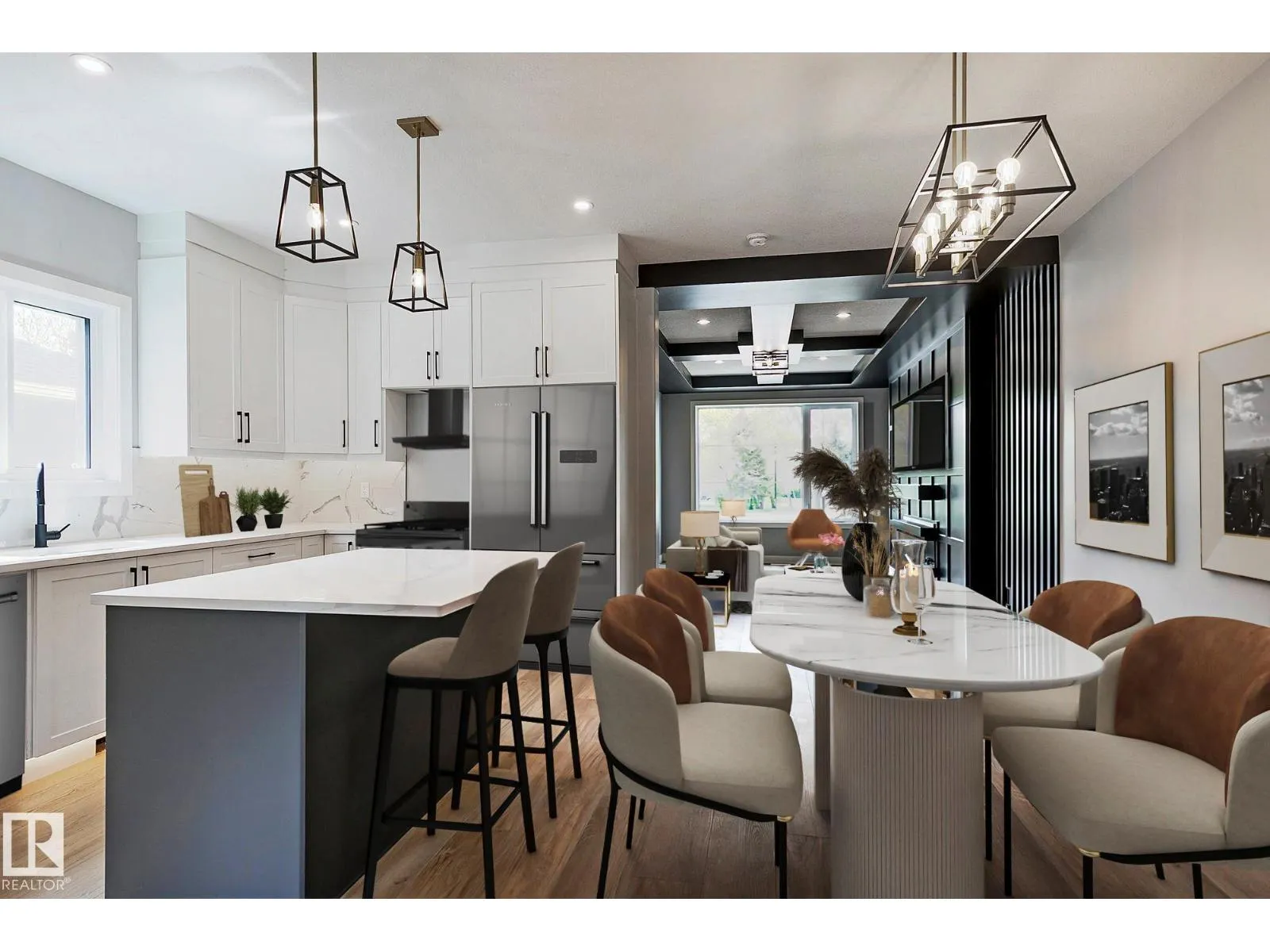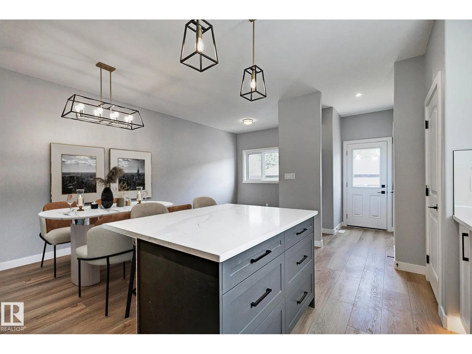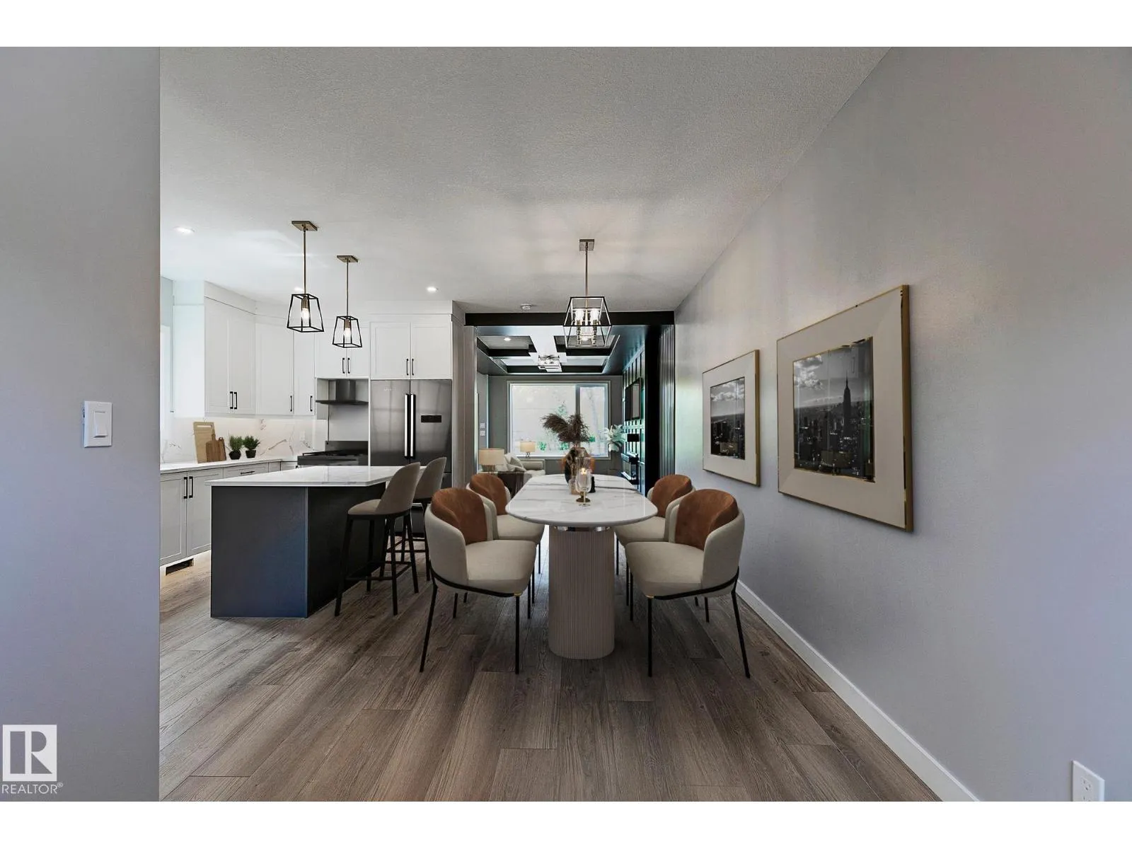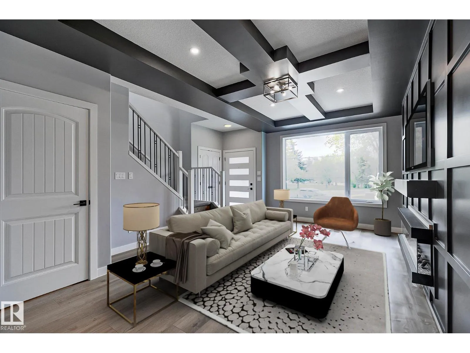 CUSTOM-BUILT SHOW HOME FOR SALE! This stunning duplex offers 3 spacious bedrooms, 2.5 baths, a bonus room, & a SIDE ENTRANCE, all thoughtfully designed for modern living. The main floor is truly a showpiece, featuring a striking floor-to-ceiling custom feature wall w/3D fireplace, an elegant buffet bar, & 9-ft ceilings throughout. The beautifully appointed kitchen, complete w/s.s appliances, is perfectly positioned at the rear of the home and flows seamlessly into a generous dining area & expansive living room. Upstairs, the spacious primary retreat impresses w/ a full ensuite, large closet, & designer feature wall, while the additional bedrooms & bonus room provide flexibility for families or professionals. The 9-ft ceiling basement offers a separate side entrance & is roughed-in for a future legal basement suite or ideal Airbnb opportunity. Located just minutes from Westmount Shopping Centre, major hospitals, UofA & Macewan Uni. Move-in ready, fully landscaped & DOUBLE GARAGE. NO condo fees or HOA fees. (id:27476)