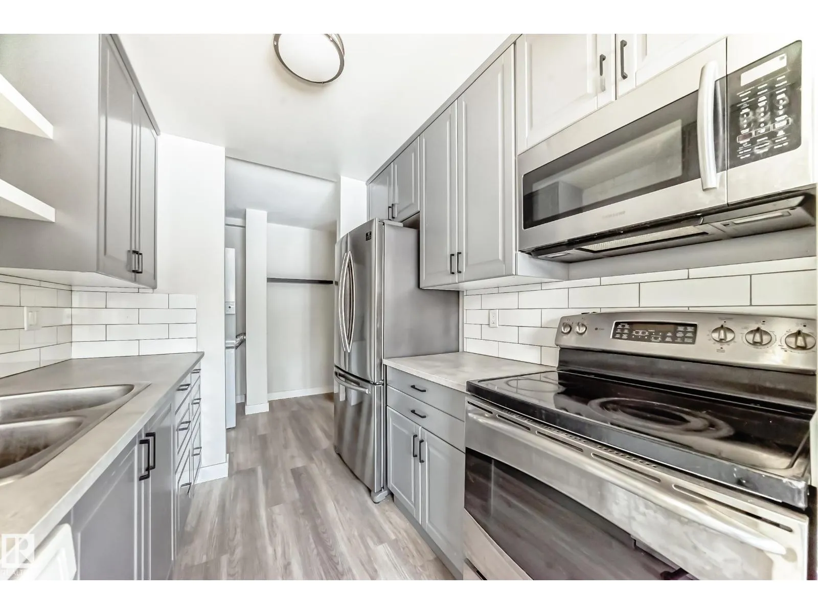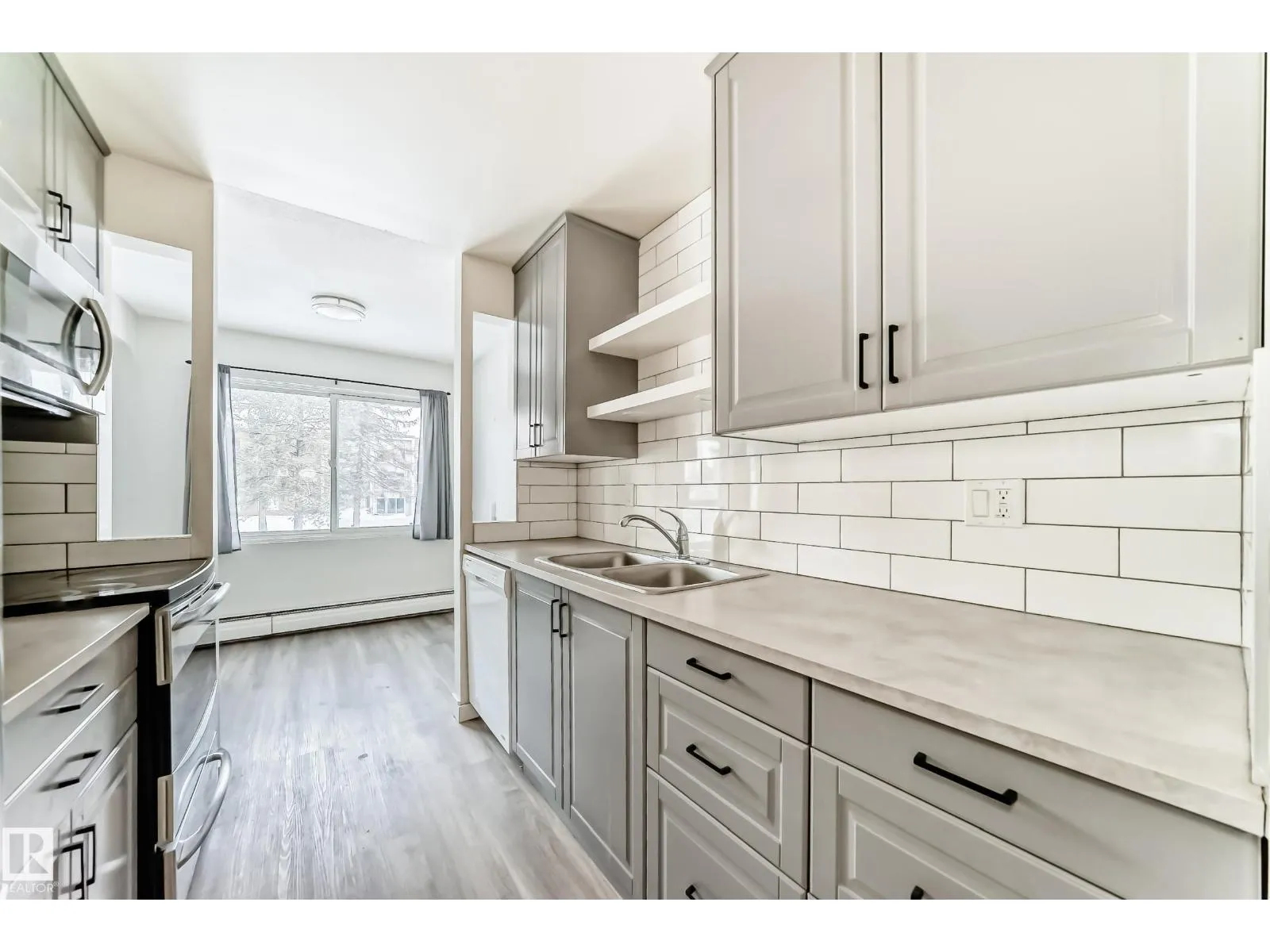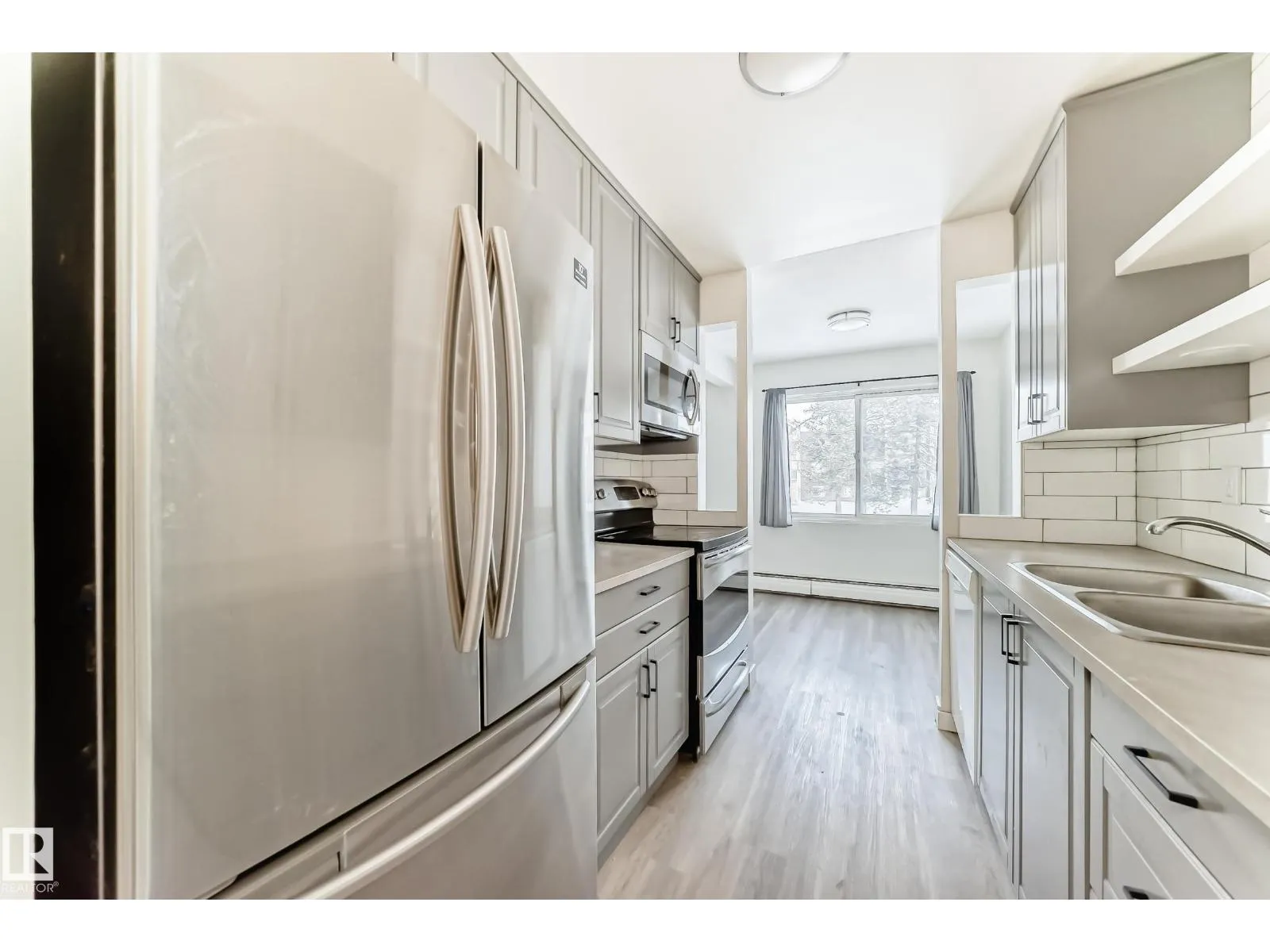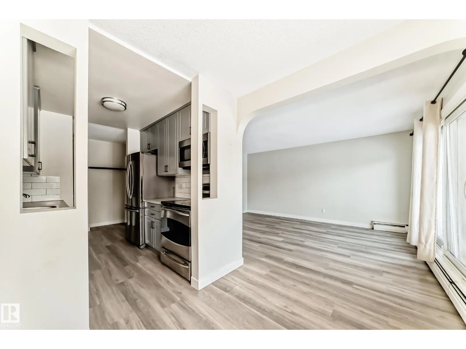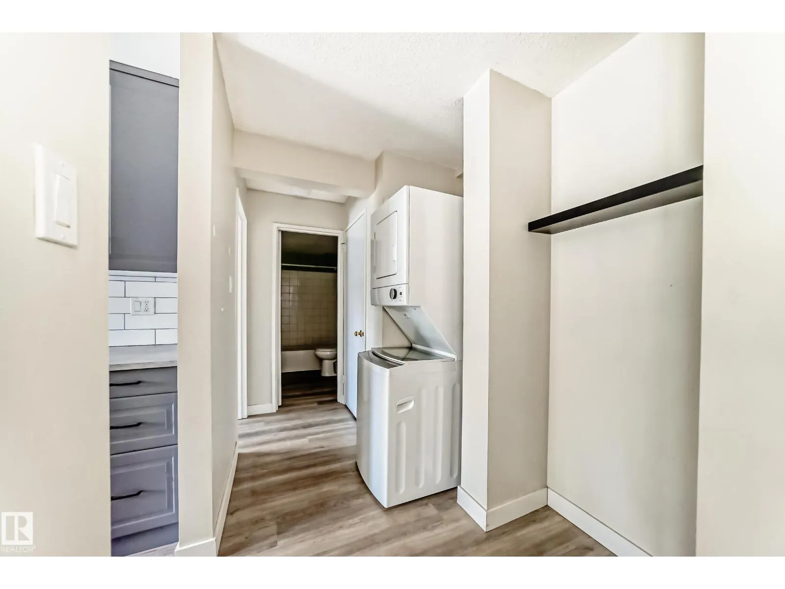 One Bedroom and one bathroom unit in sought-after Royal Gardens! This updated 701 sq. ft. condo offers privacy and natural light with an open layout. Bright windows fill the open-concept living and dining area, and the galley kitchen features modern cabinetry with stainless steel appliances. The entire unit has newer vinyl flooring and features a newer washer/dryer combo for in-suite laundry. Patio doors lead to a private balcony with open views of the peaceful courtyard and walking path. Enjoy in-suite laundry, oversized storage, in a well-managed, pet-friendly building with condo fees including heat and water, along with an in-complex exercise facility. Prime location close to the University, LRT, Southgate Mall, shopping, schools, daycares, and Whitemud Drive. Ideal for professionals, students, or investors. (id:27476)