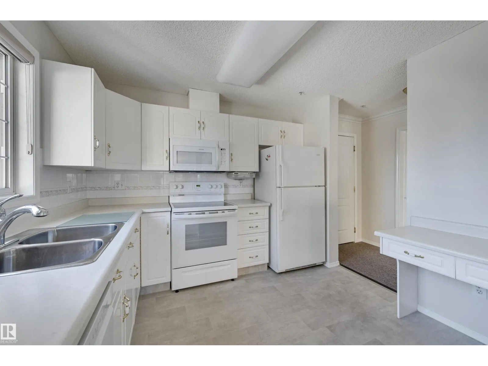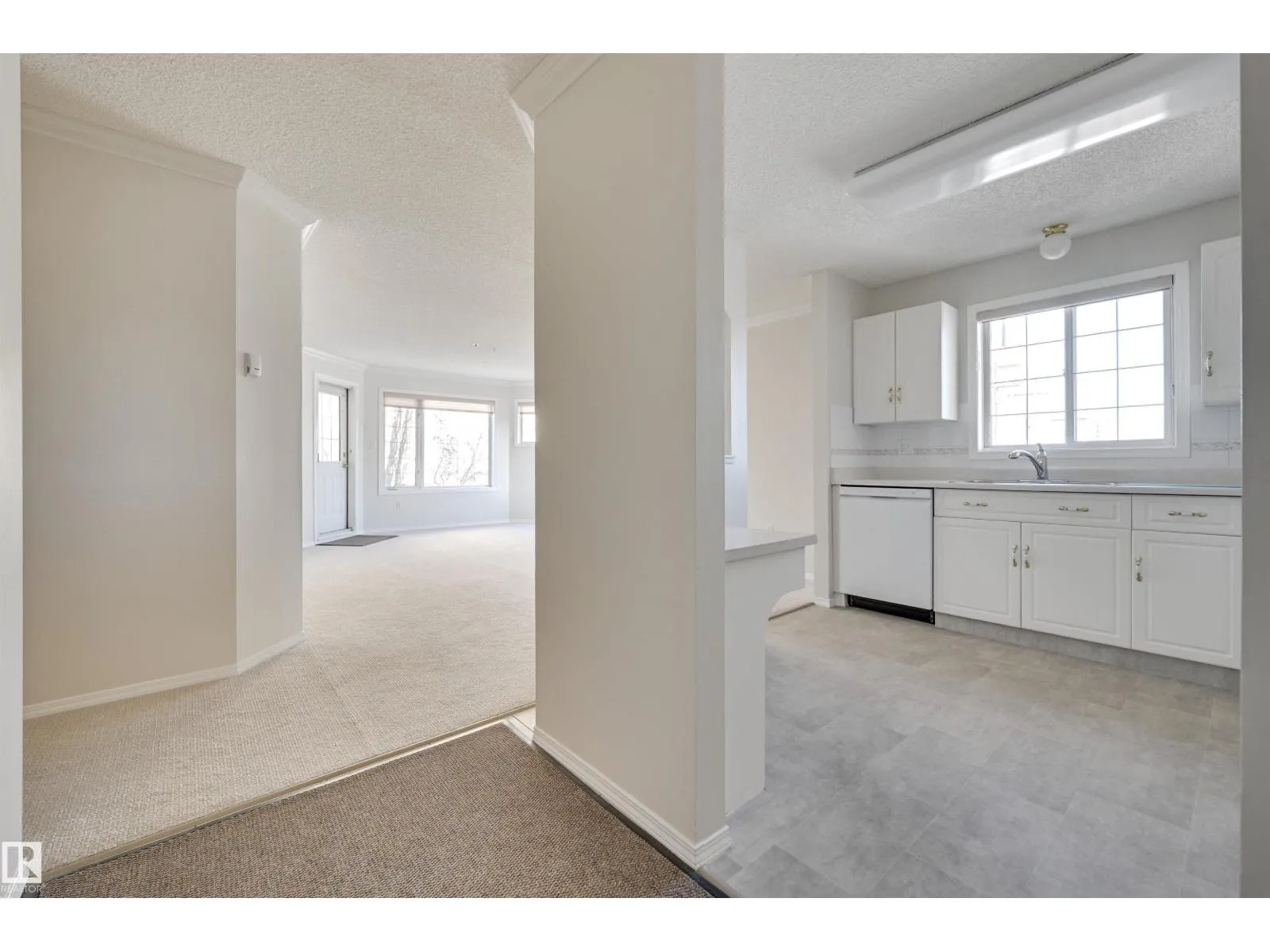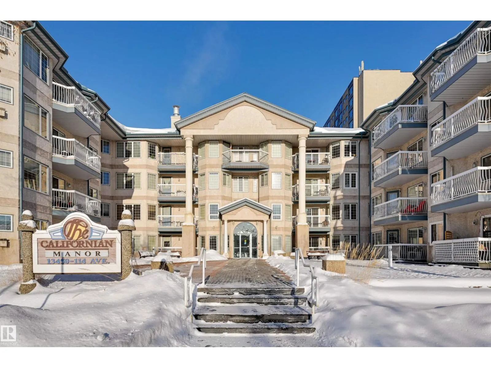 Welcome to Californian Manor, a welcoming 50+ community known for its friendly atmosphere and unbeatable walkability to everyday amenities. This well-maintained corner suite is filled with natural light from its ample windows. Two generously sized bedrooms and two full bathrooms. The bright, open living area features dual bay windows, open to the dining room, and access to the large balcony. The kitchen is functional with white cabinetry, white appliances including a newer stove and dishwasher, a breakfast bar, and a picture window over the sink. Enjoy the in-suite laundry and storage, plus a storage locker at the parking stall #63 underground. Recent upgrades include newer flooring and fresh paint, leaving the condo in exceptional, move-in-ready condition. Amenities include a fitness room, party room, library/craft room, and car wash bay. With bus service at the door, the library next door, and Westmount Shopping Centre with Safeway just across the street, this is an ideal place to move in and enjoy! (id:27476)
