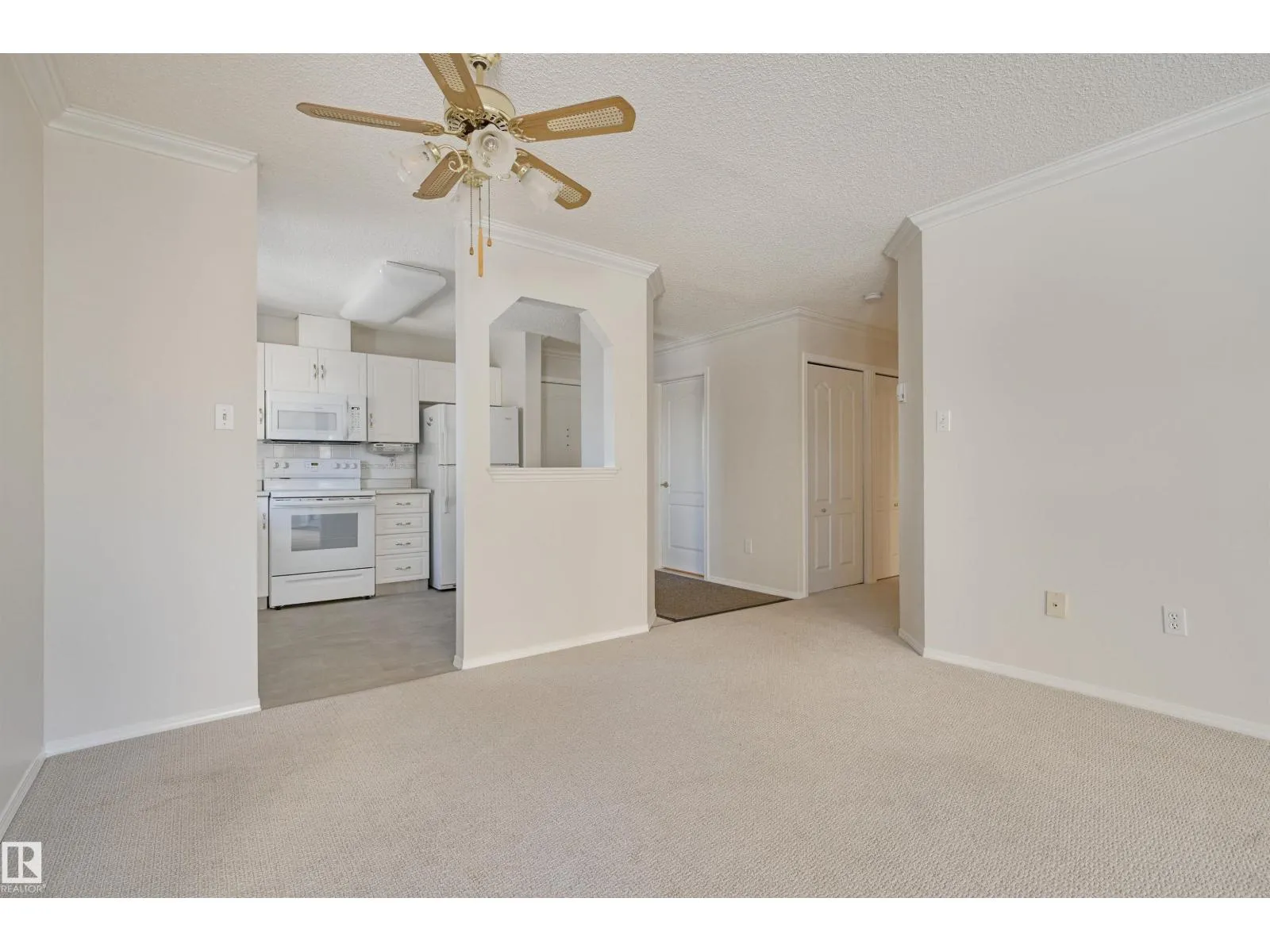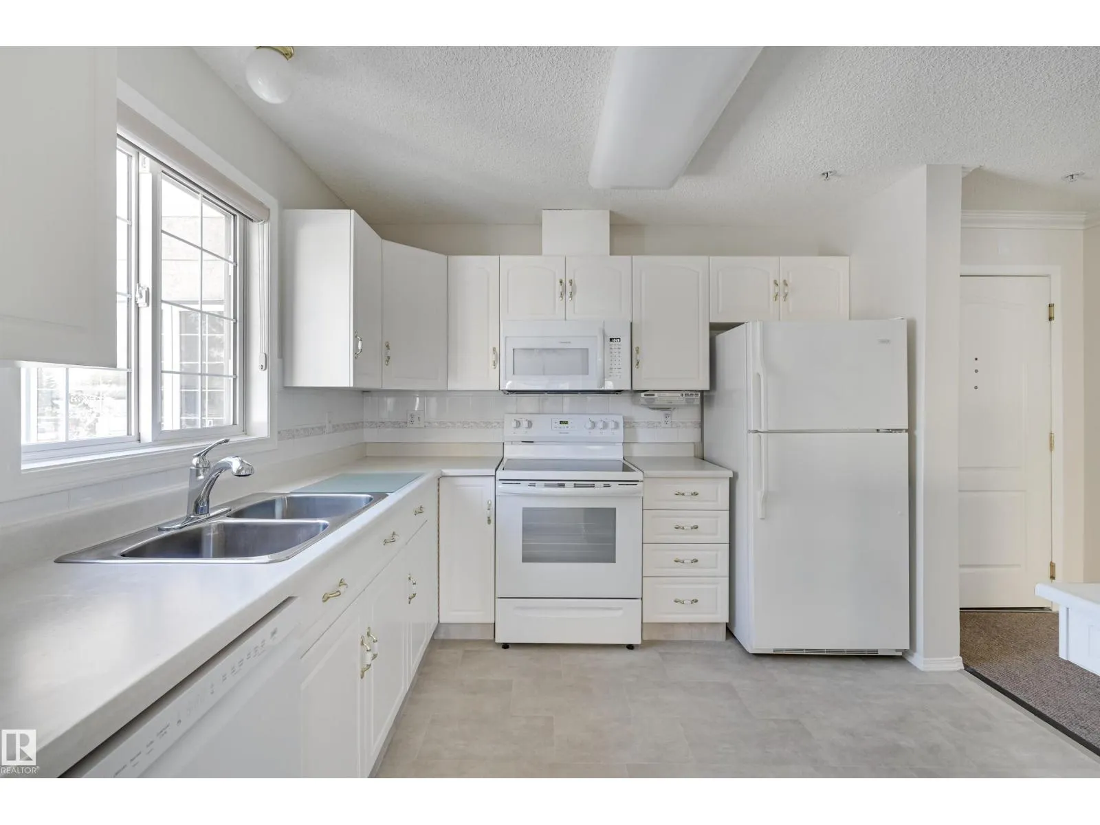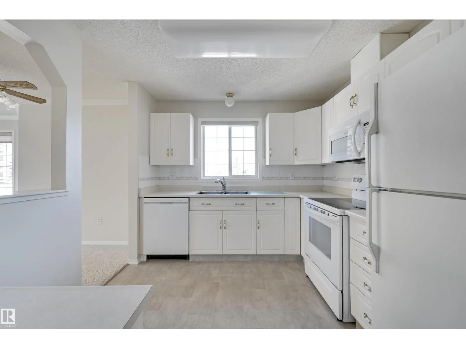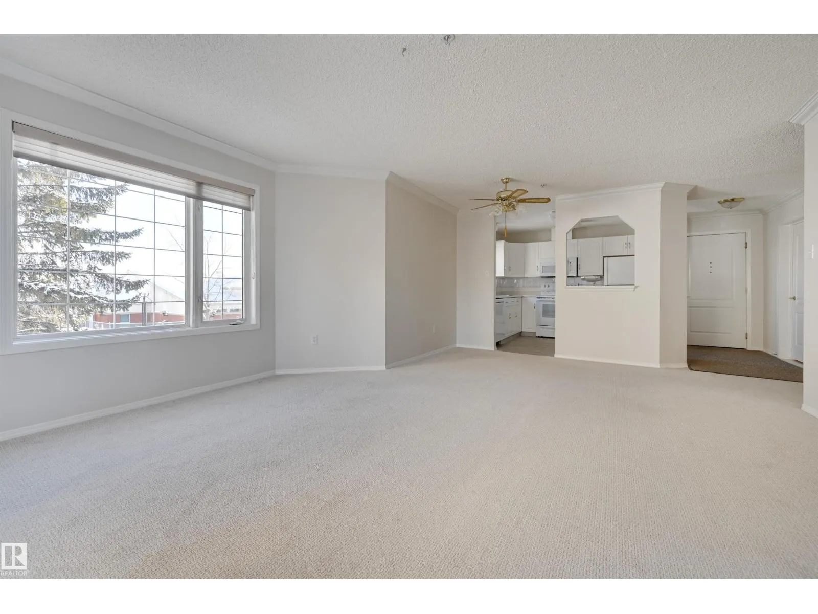 Welcome to Californian Manor, a welcoming 50+ community known for its friendly atmosphere and unbeatable walkability to everyday amenities. This well-maintained corner suite is filled with natural light from its ample windows. Two generously sized bedrooms and two full bathrooms. The bright, open living area features dual bay windows, open to the dining room, and access to the large balcony. The kitchen is functional with white cabinetry, white appliances including a newer stove and dishwasher, a breakfast bar, and a picture window over the sink. Enjoy the in-suite laundry and storage, plus a storage locker at the parking stall #63 underground. Recent upgrades include newer flooring and fresh paint, leaving the condo in exceptional, move-in-ready condition. Amenities include a fitness room, party room, library/craft room, and car wash bay. With bus service at the door, the library next door, and Westmount Shopping Centre with Safeway just across the street, this is an ideal place to move in and enjoy! (id:27476)