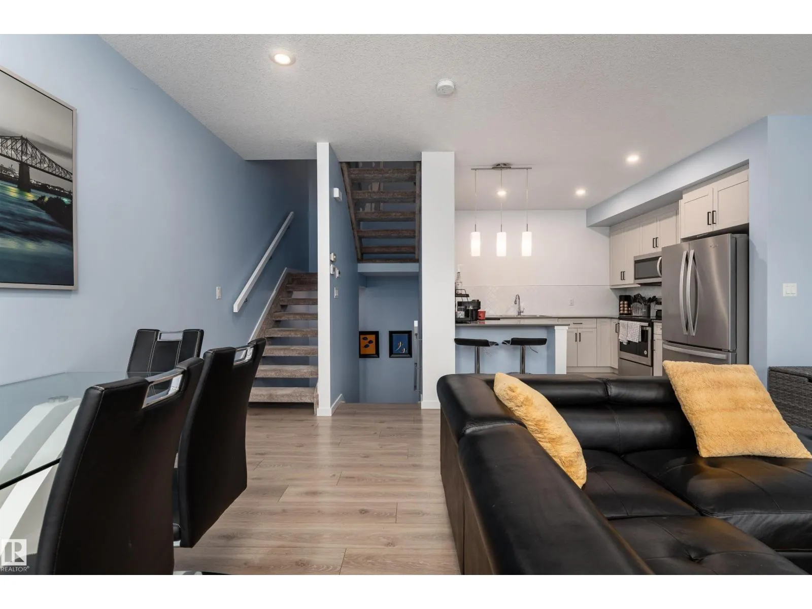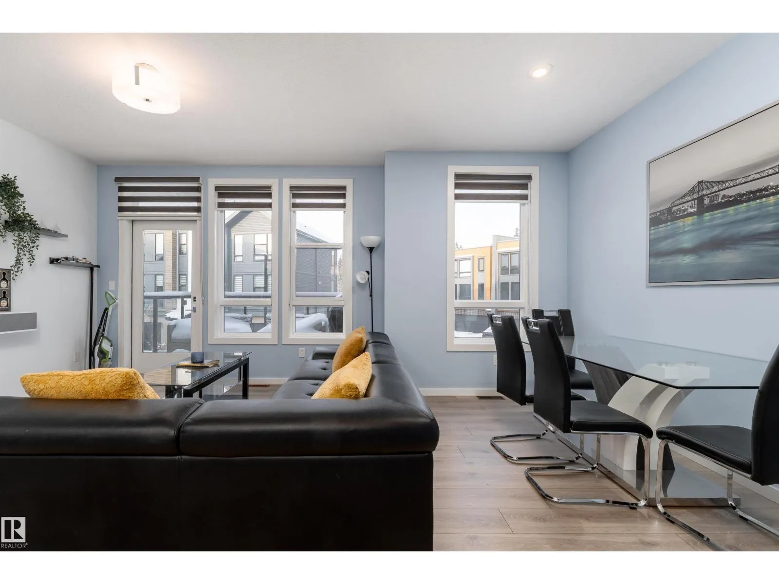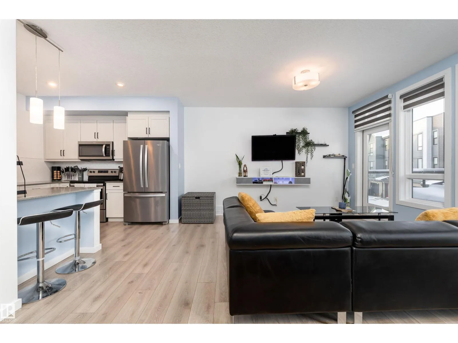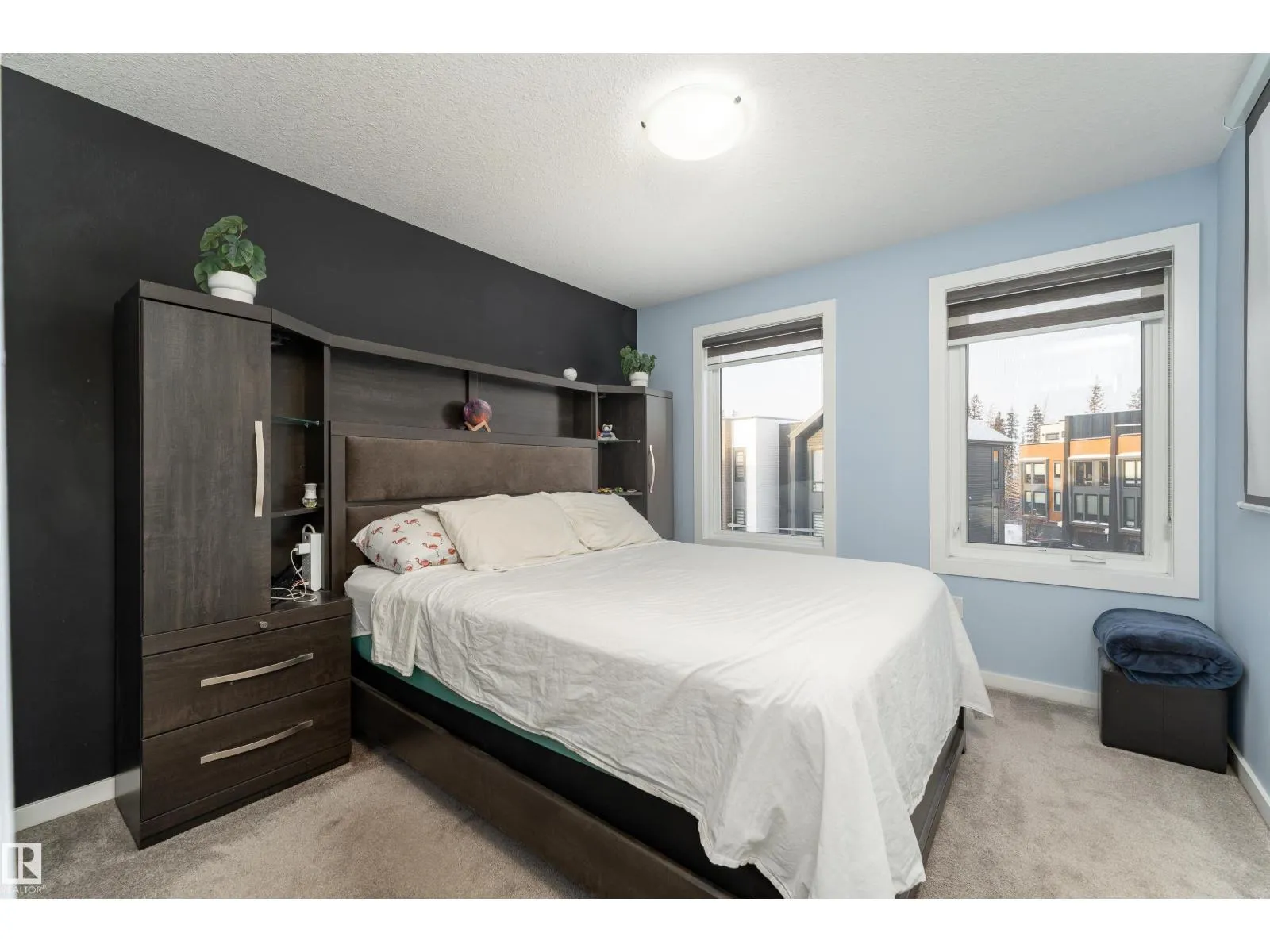 Contemporary comfort meets exceptional value in Rutherford! This stylish 3-storey townhome offers a fantastic entry into South Edmonton living with impressively low condo fees. Step inside to a welcoming foyer with easy access to the fully finished attached garage. The sun-filled main level showcases soaring windows, a sleek open-concept kitchen complete with quartz countertops and stainless steel appliances, a designated dining area, and a modern living space perfect for entertaining. The upper level features 2 spacious bedrooms, including a king-sized primary retreat with a walk-through closet and a private ensuite boasting an oversized shower. A full 4pc bathroom and convenient upstairs laundry complete this floor. Added perks include a main-floor 2pc powder room, custom garage storage and built-ins, and guest parking located just steps from the unit. Ideally located near trails, green spaces, schools, shopping, and major commuter routes. (id:27476)