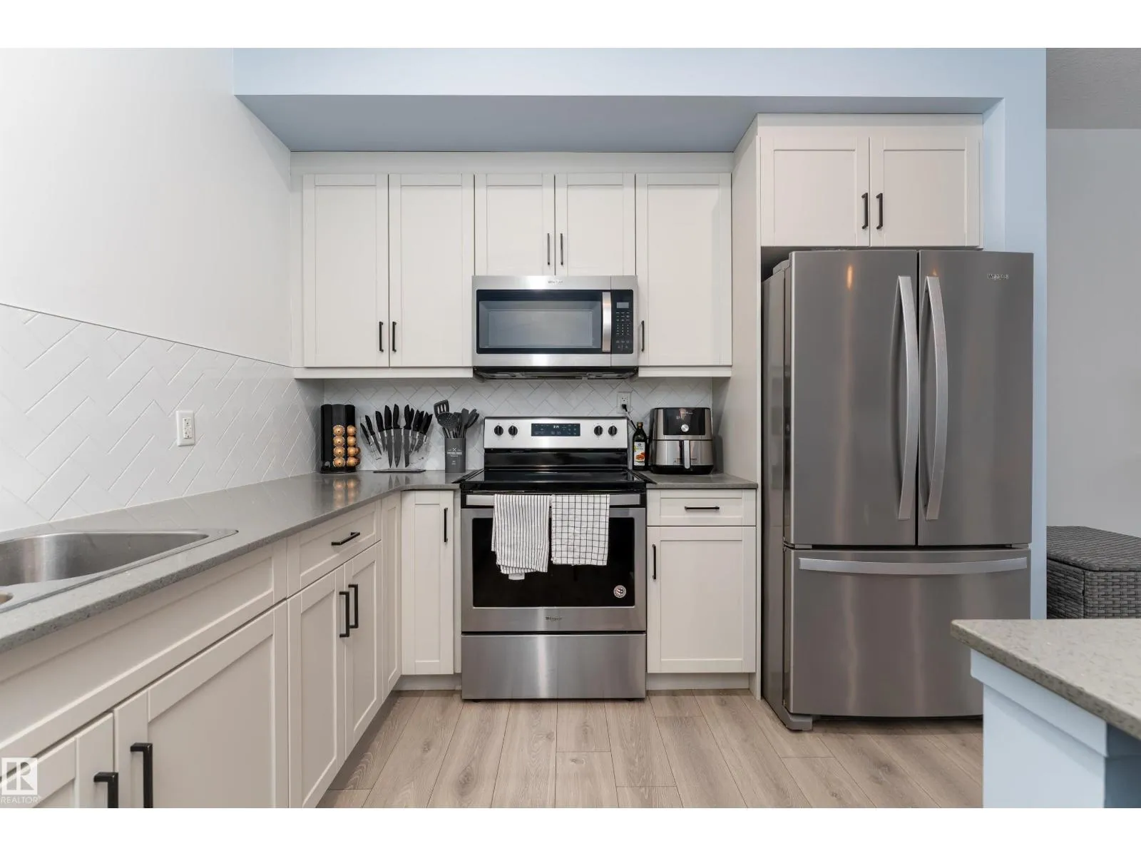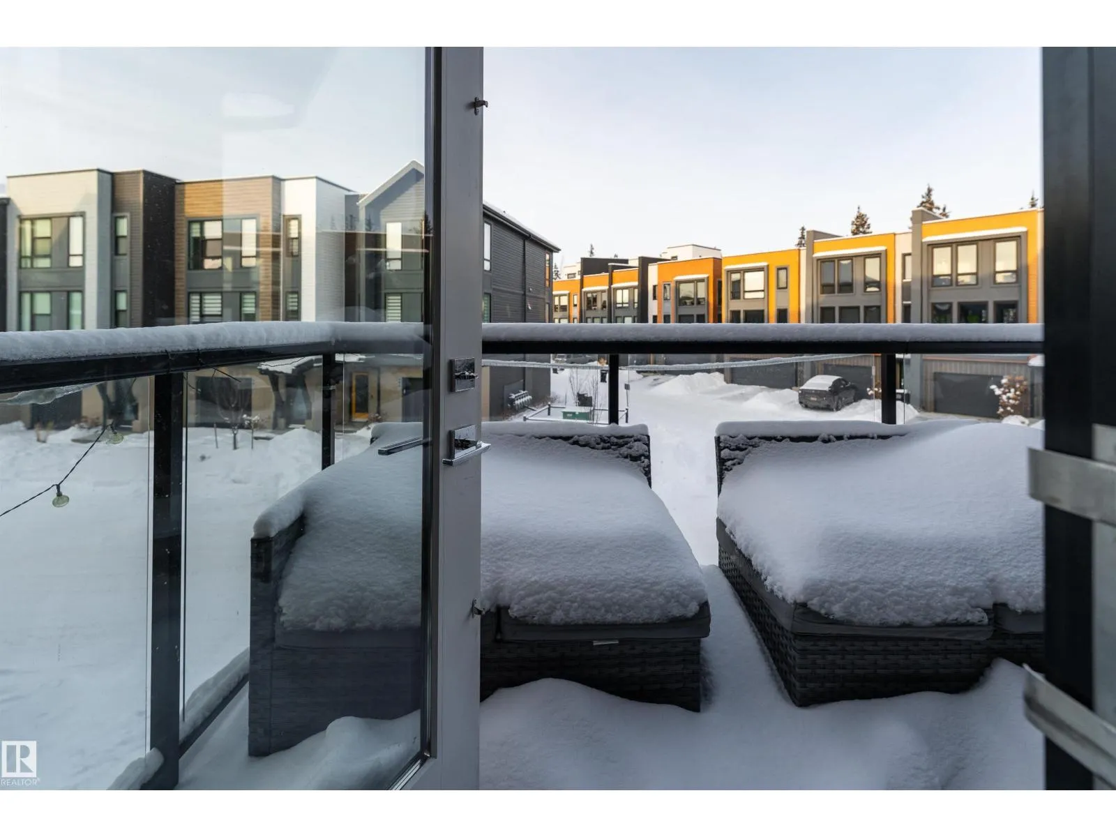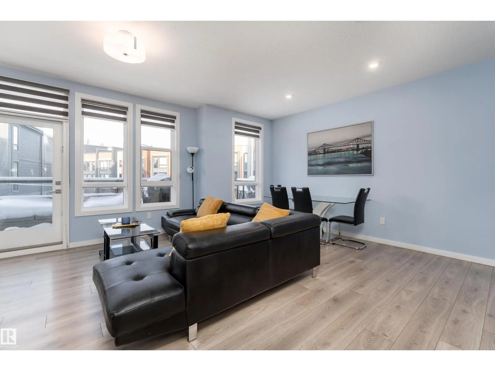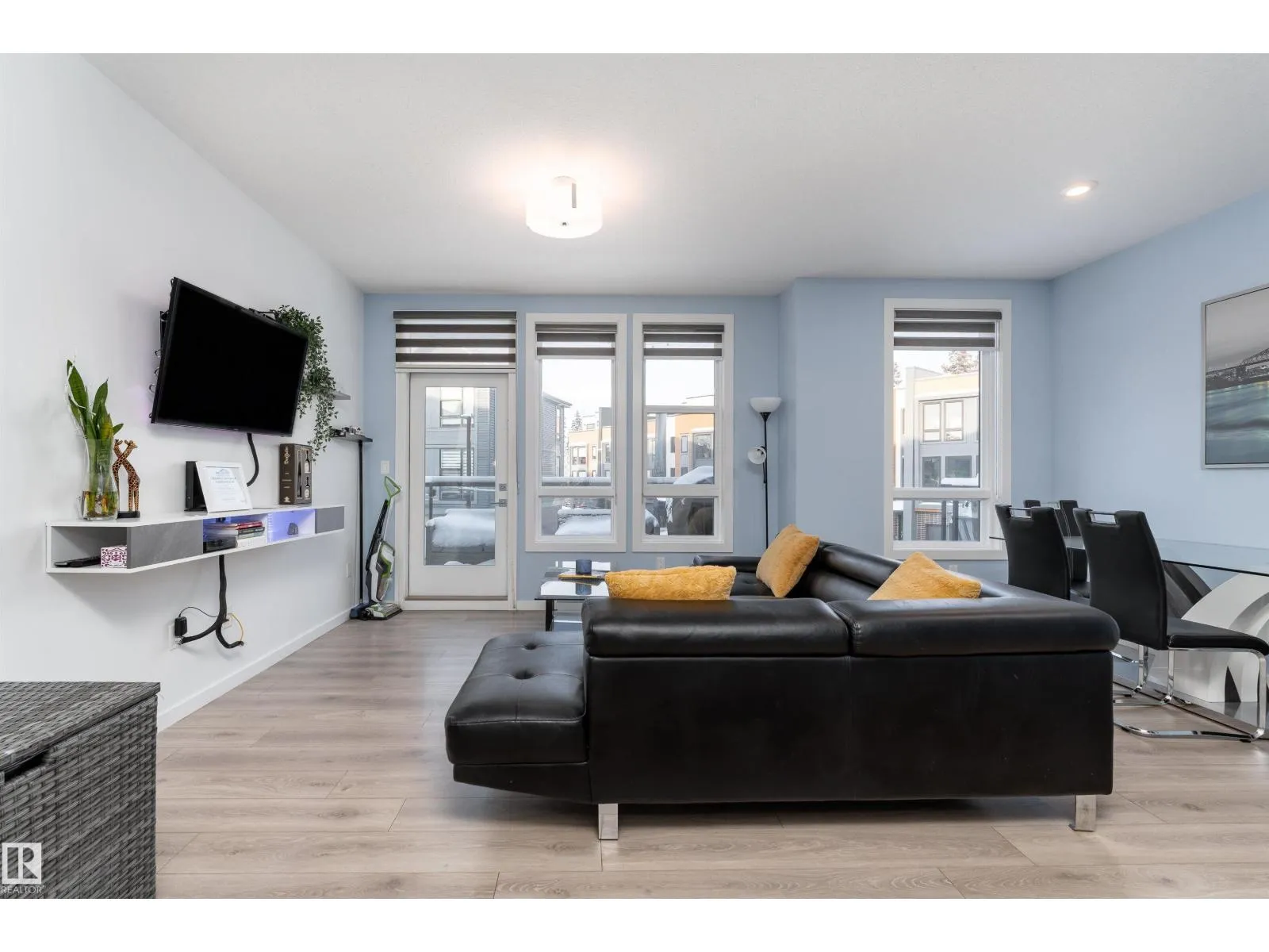 Contemporary comfort meets exceptional value in Rutherford! This stylish 3-storey townhome offers a fantastic entry into South Edmonton living with impressively low condo fees. Step inside to a welcoming foyer with easy access to the fully finished attached garage. The sun-filled main level showcases soaring windows, a sleek open-concept kitchen complete with quartz countertops and stainless steel appliances, a designated dining area, and a modern living space perfect for entertaining. The upper level features 2 spacious bedrooms, including a king-sized primary retreat with a walk-through closet and a private ensuite boasting an oversized shower. A full 4pc bathroom and convenient upstairs laundry complete this floor. Added perks include a main-floor 2pc powder room, custom garage storage and built-ins, and guest parking located just steps from the unit. Ideally located near trails, green spaces, schools, shopping, and major commuter routes. (id:27476)