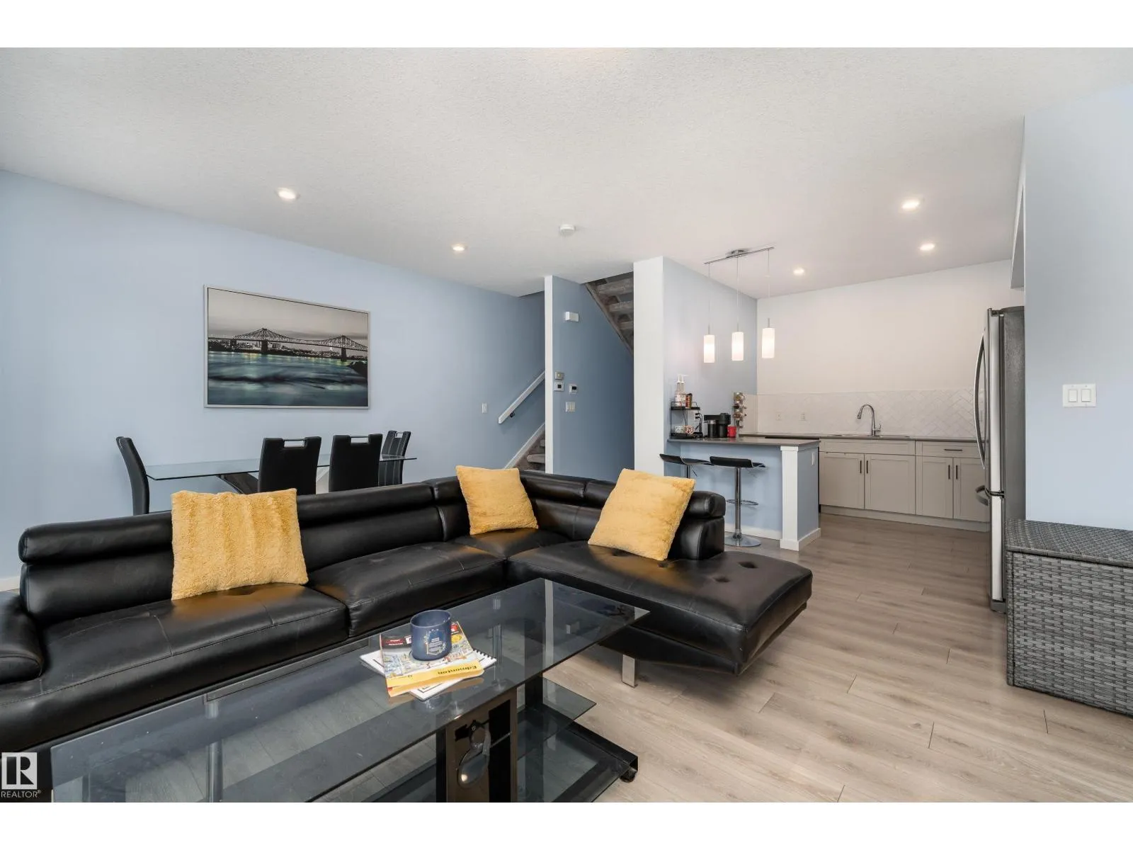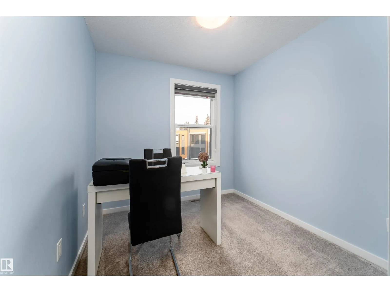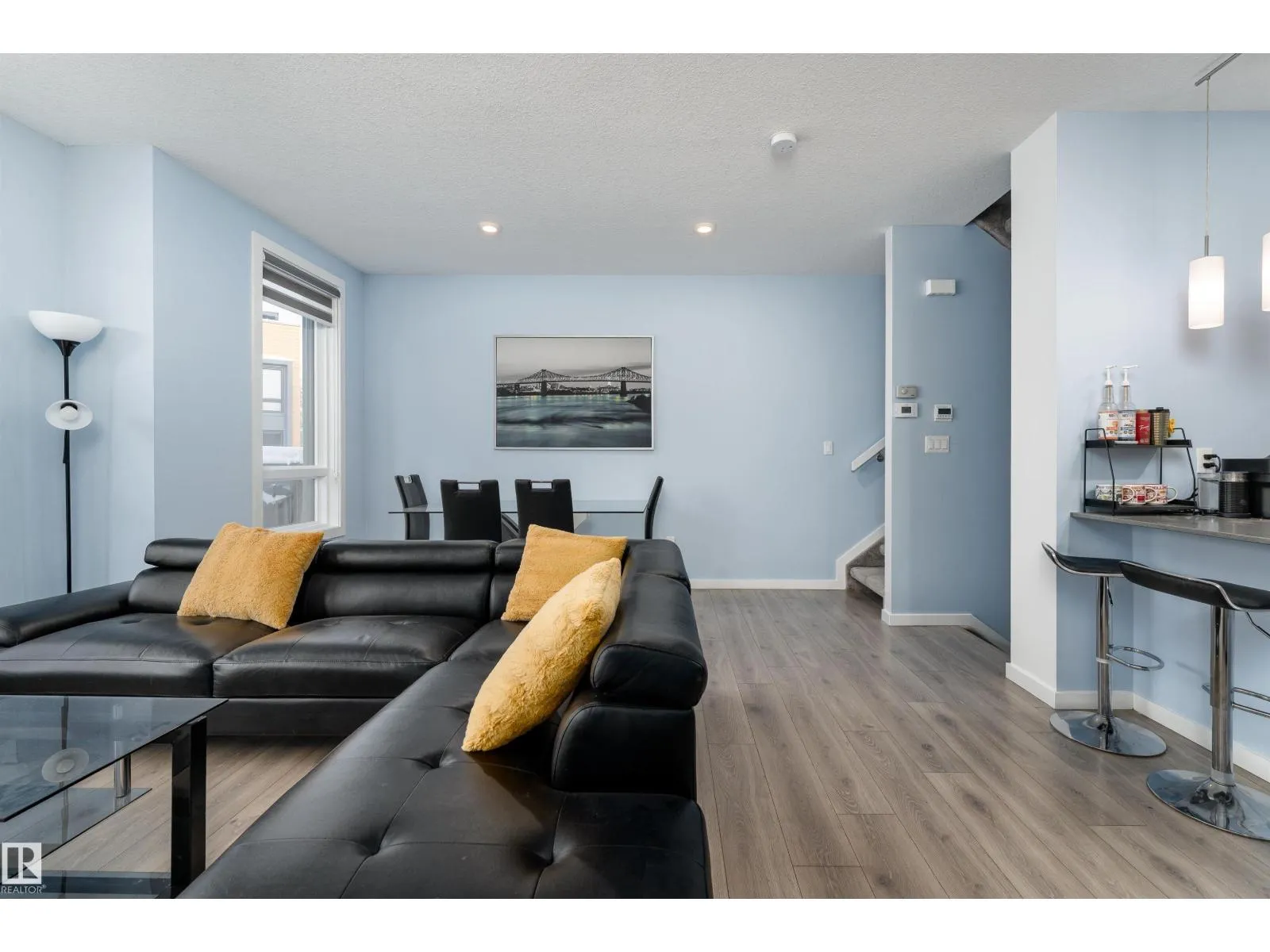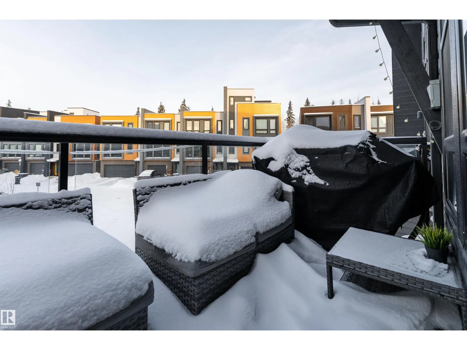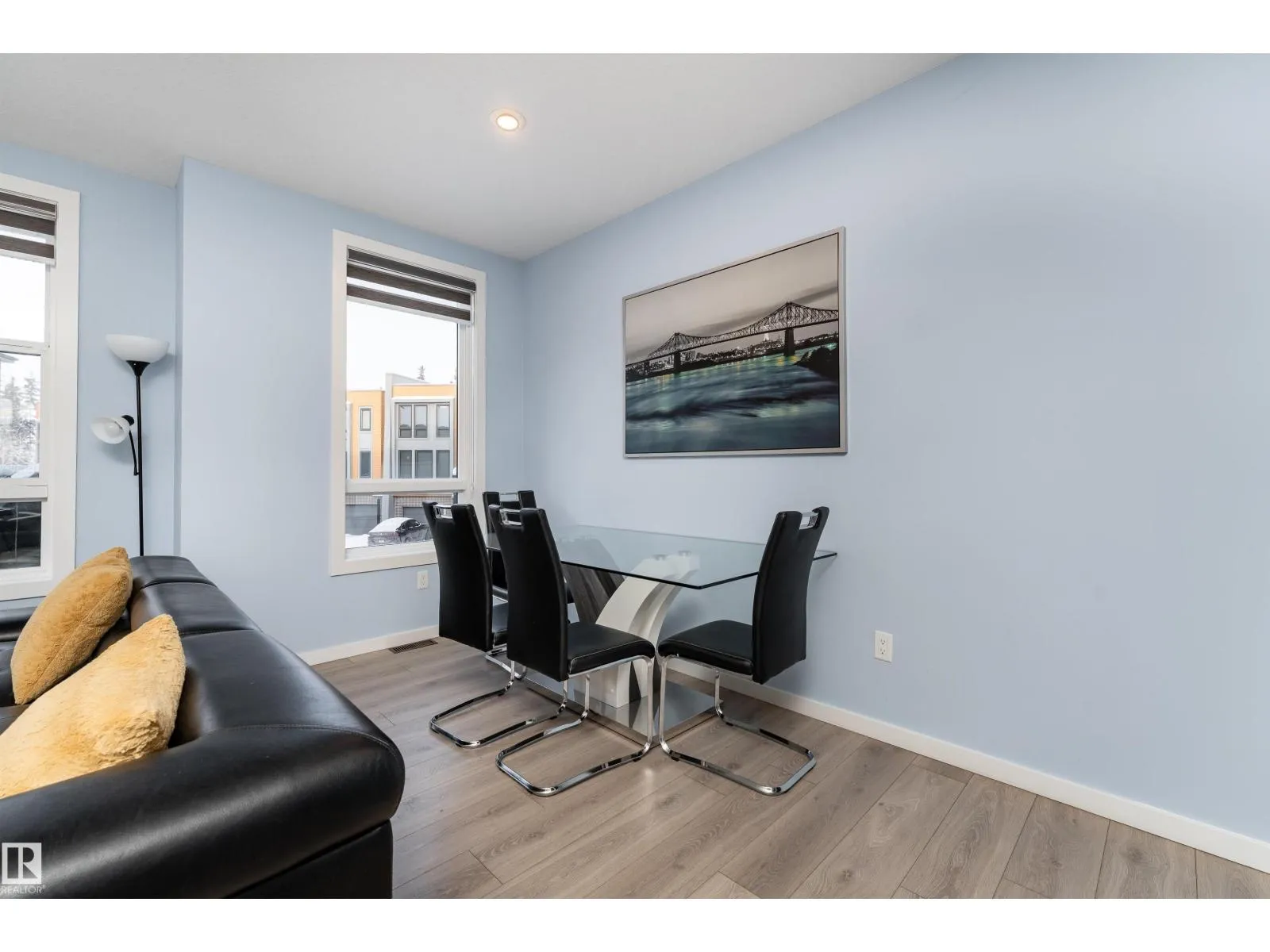 Contemporary comfort meets exceptional value in Rutherford! This stylish 3-storey townhome offers a fantastic entry into South Edmonton living with impressively low condo fees. Step inside to a welcoming foyer with easy access to the fully finished attached garage. The sun-filled main level showcases soaring windows, a sleek open-concept kitchen complete with quartz countertops and stainless steel appliances, a designated dining area, and a modern living space perfect for entertaining. The upper level features 2 spacious bedrooms, including a king-sized primary retreat with a walk-through closet and a private ensuite boasting an oversized shower. A full 4pc bathroom and convenient upstairs laundry complete this floor. Added perks include a main-floor 2pc powder room, custom garage storage and built-ins, and guest parking located just steps from the unit. Ideally located near trails, green spaces, schools, shopping, and major commuter routes. (id:27476)