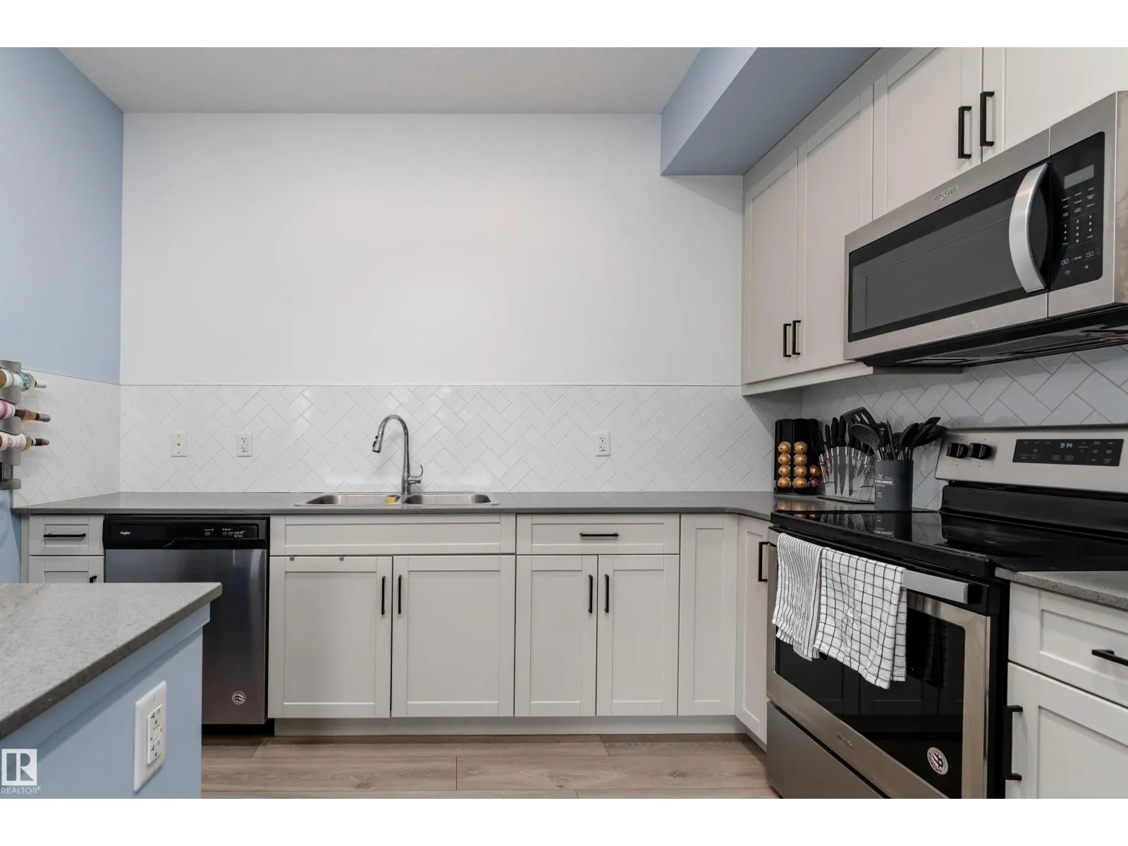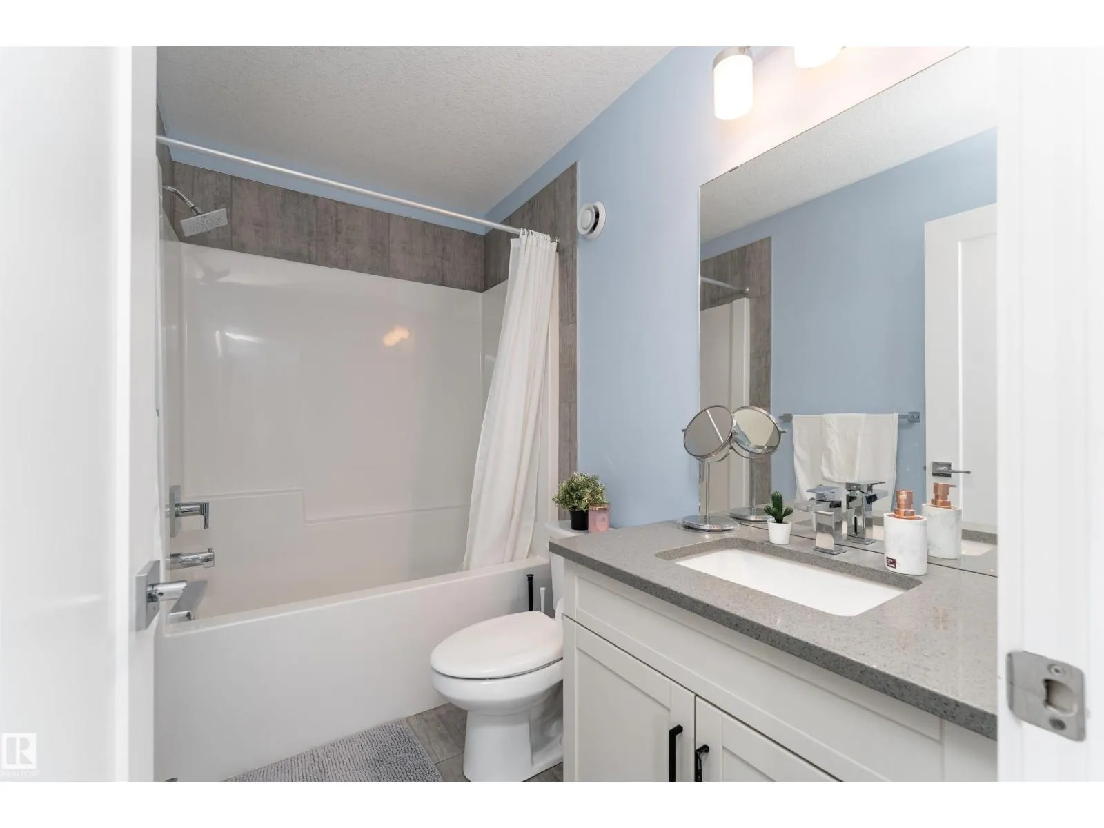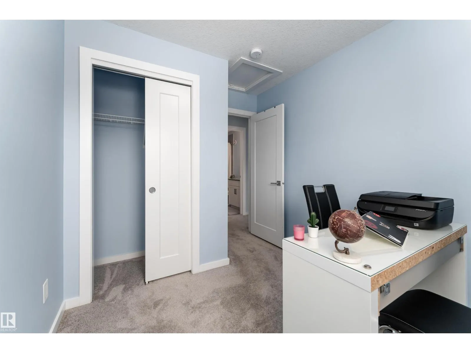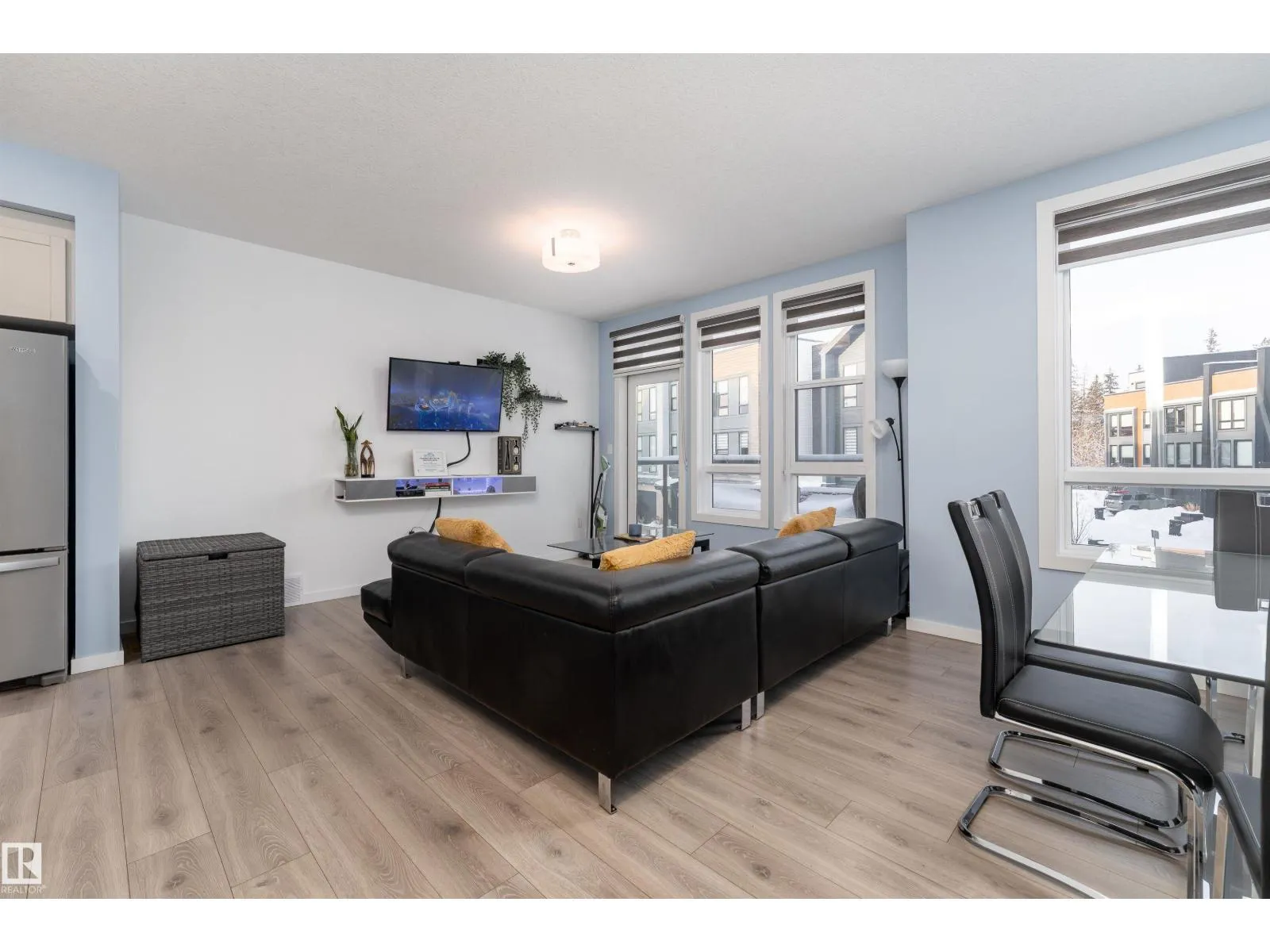 Contemporary comfort meets exceptional value in Rutherford! This stylish 3-storey townhome offers a fantastic entry into South Edmonton living with impressively low condo fees. Step inside to a welcoming foyer with easy access to the fully finished attached garage. The sun-filled main level showcases soaring windows, a sleek open-concept kitchen complete with quartz countertops and stainless steel appliances, a designated dining area, and a modern living space perfect for entertaining. The upper level features 2 spacious bedrooms, including a king-sized primary retreat with a walk-through closet and a private ensuite boasting an oversized shower. A full 4pc bathroom and convenient upstairs laundry complete this floor. Added perks include a main-floor 2pc powder room, custom garage storage and built-ins, and guest parking located just steps from the unit. Ideally located near trails, green spaces, schools, shopping, and major commuter routes. (id:27476)