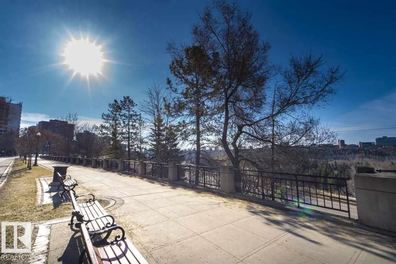 RIVER VALLEY VIEWS | VICTORIA PROMENADE | EXECUTIVE CONDO Live in one of downtown Edmontonâs most sought-after buildings! This sun-soaked, south-facing 2 bed, 2 bath executive condo offers over 1,000 sqft of beautifully updated living space. Enjoy river valley views from your private patio retreatâperfect for morning coffee or relaxing evenings. The open-concept layout features new floors, fresh paint, and thoughtful upgrades throughout. The oversized primary suite includes a walk-in closet and spacious ensuite, while the second bedroom and full bath offer great flexibility for guests or a home office. Just steps to parks, trails, dining, the Promenade, and all downtown amenitiesâthis is urban living at its finest. Heated underground parking & Storage included. A rare opportunity in a truly iconic building. (photos digitally staged or modified) (id:27476)