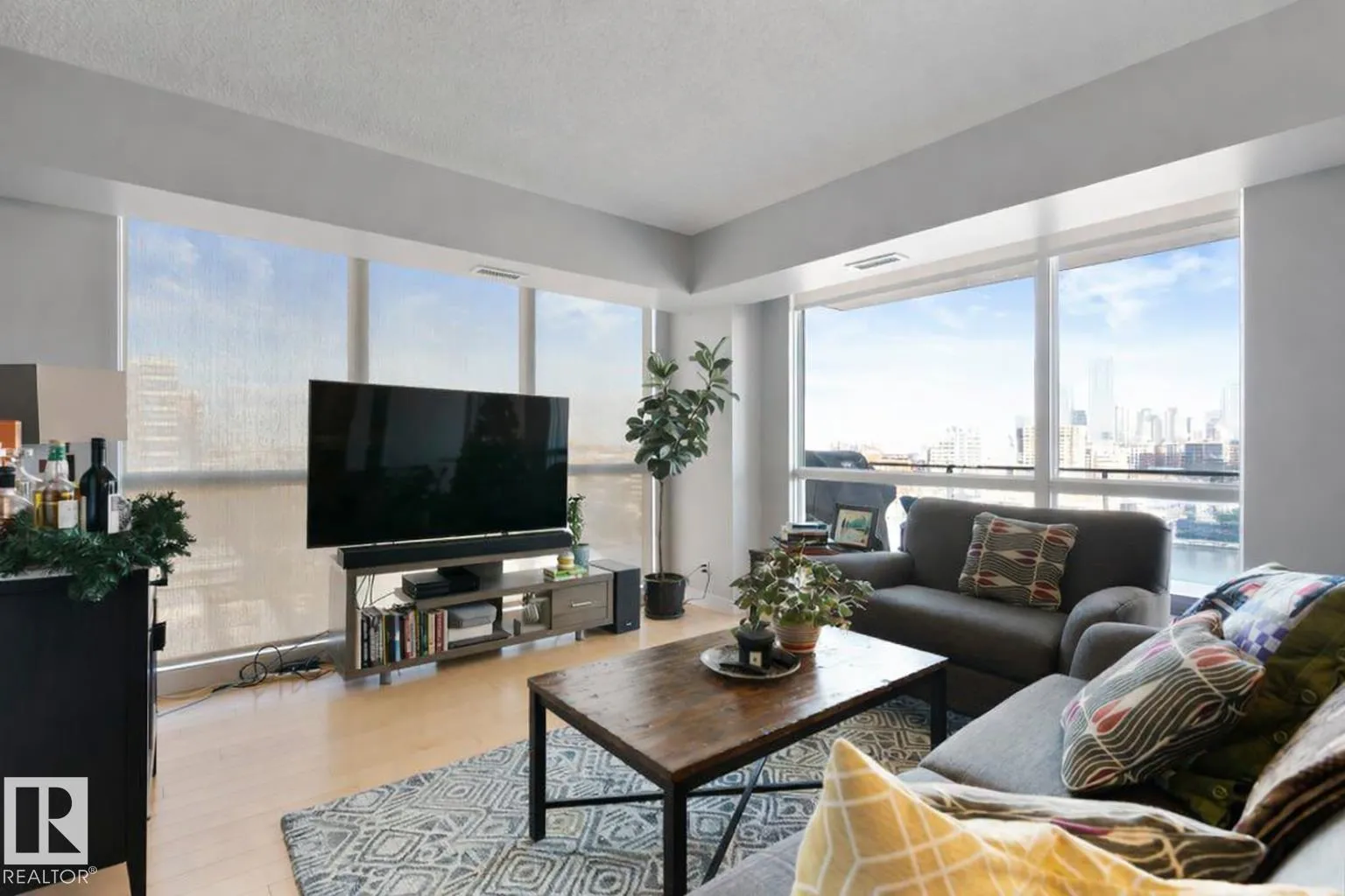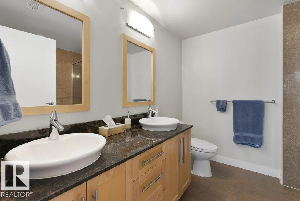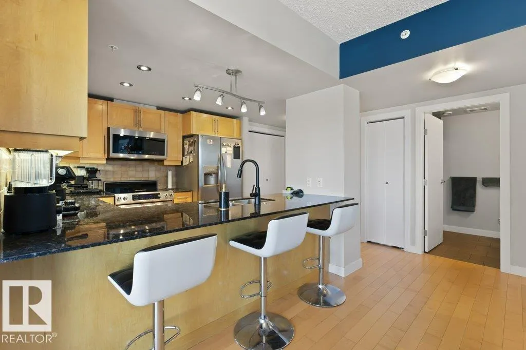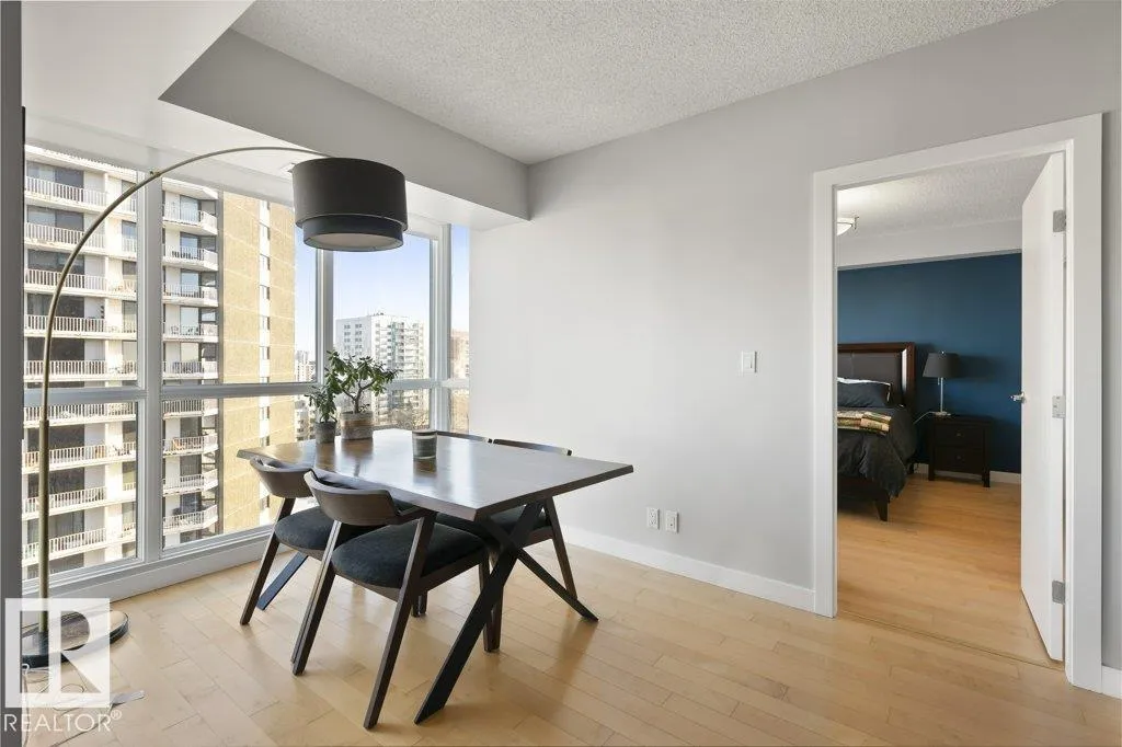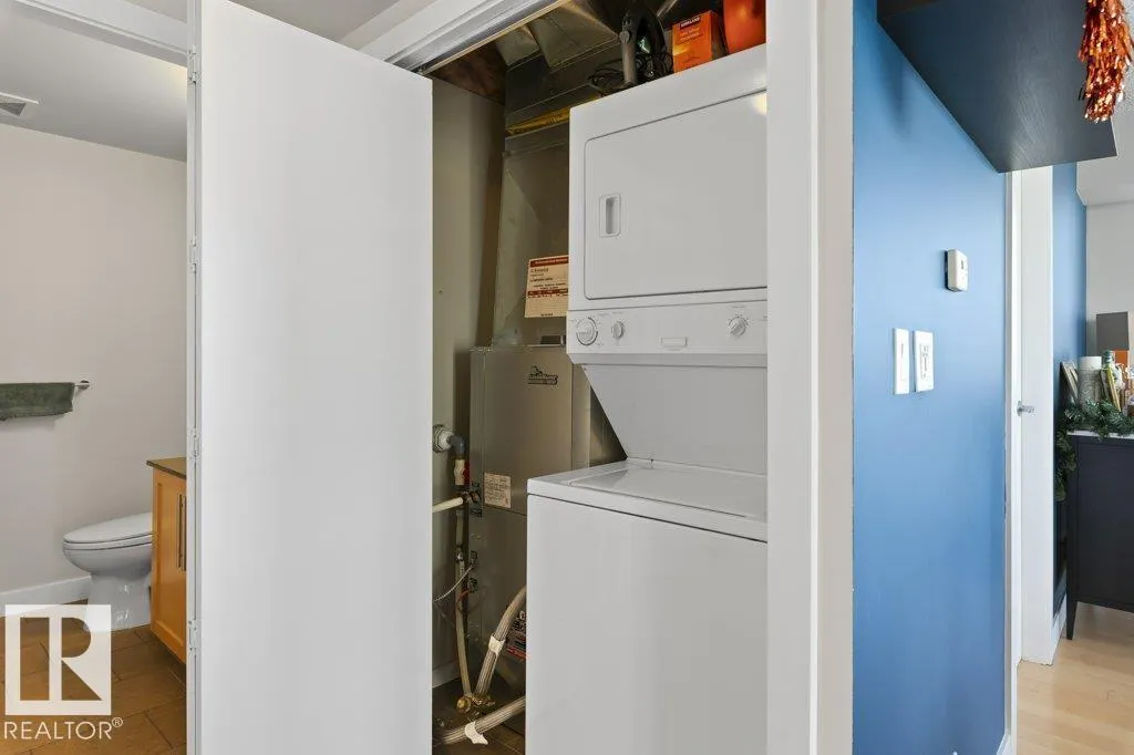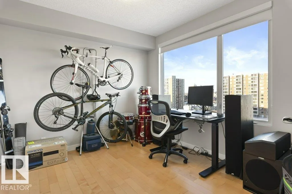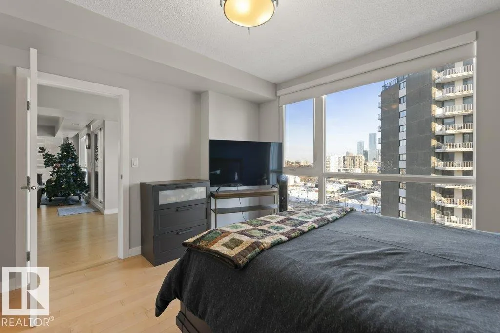 Elevate your downtown lifestyle in this IMMACULATE 11th-FLOOR executive condo with 2 bedrooms + DEN, 2 full baths, 2 TITLED UNDERGROUND parking stalls w/ storage PLUS the rare bonus of only 4 UNITS PER FLOOR for added privacy! This bright CORNER UNIT offers stunning east & north city views through FLOOR-TO-CEILING windows and a large balcony w/ natural gas BBQ hookup, perfect for entertaining above it all. A thoughtfully designed space features hardwood floors, a modern kitchen with granite counters, tons of cabinets, and a versatile den ideal for a home office or dining space. The spacious primary suite includes a WALK-IN closet & spa-inspired 5-PIECE ENSUITE with soaker tub and DOUBLE sinks. Enjoy year-round comfort with a heat pump system (furnace & A/C replaced in 2022) and in-suite laundry. Well-managed building w/ gym and ample visitor parking. Steps to Jasper Ave, restaurants, river valley trails, and everything downtown has to offer, this is urban living done right! (id:27476)