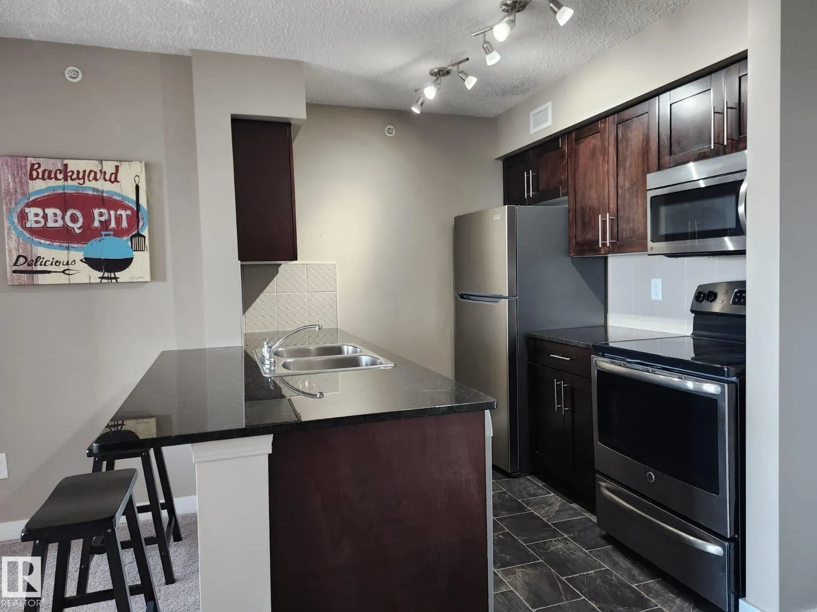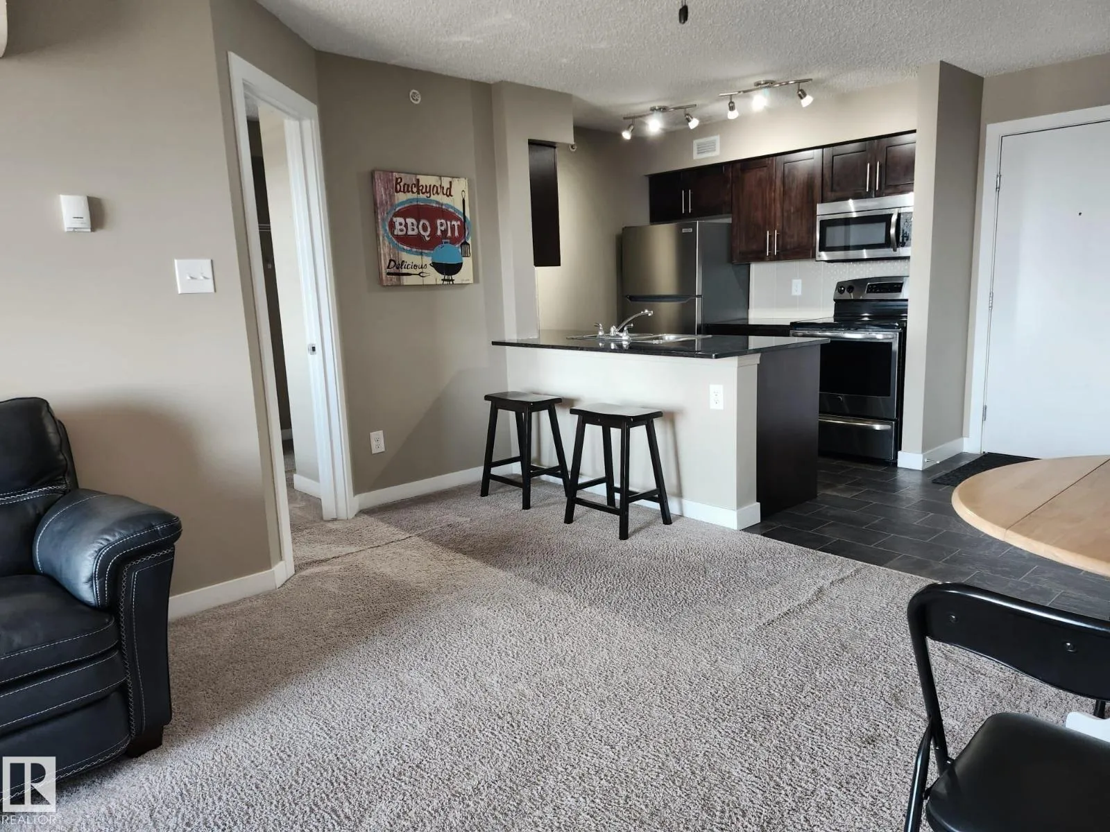TOP FLOOR Corner Unit with 2 HEATED UNDERGROUND parking stalls, 2 STORAGE UNITS, & IN-SUITE LAUNDRY. Stunning Views! This original owner condo is impeccably clean, beautifully maintained, and offers 2 BEDS + a DEN, 2 full bathrooms, & the comfort of CENTRAL AIR CONDITIONING. Enjoy the privacy & extra light of a top floor corner unit w/ expansive views overlooking GREEN SPACE. Featuring 2 The stylish kitchen is equipped w/ rich dark maple cabinetry, luxurious granite countertops, stainless steel appliances, a breakfast bar, & a dedicated dining area. Abundant windows fill the space w/ natural light, creating a warm, inviting atmosphere. The spacious living room opens to a covered balconyâperfect for relaxing & enjoying the view. The primary suite includes a walkthrough closet & 4-piece ensuite. A generous 2nd bedroom, versatile DEN, & another full bathroom complete the layout. Well maintained building by schools, parks, trails, shopping, public transit, & easy access to henday. (id:27476)