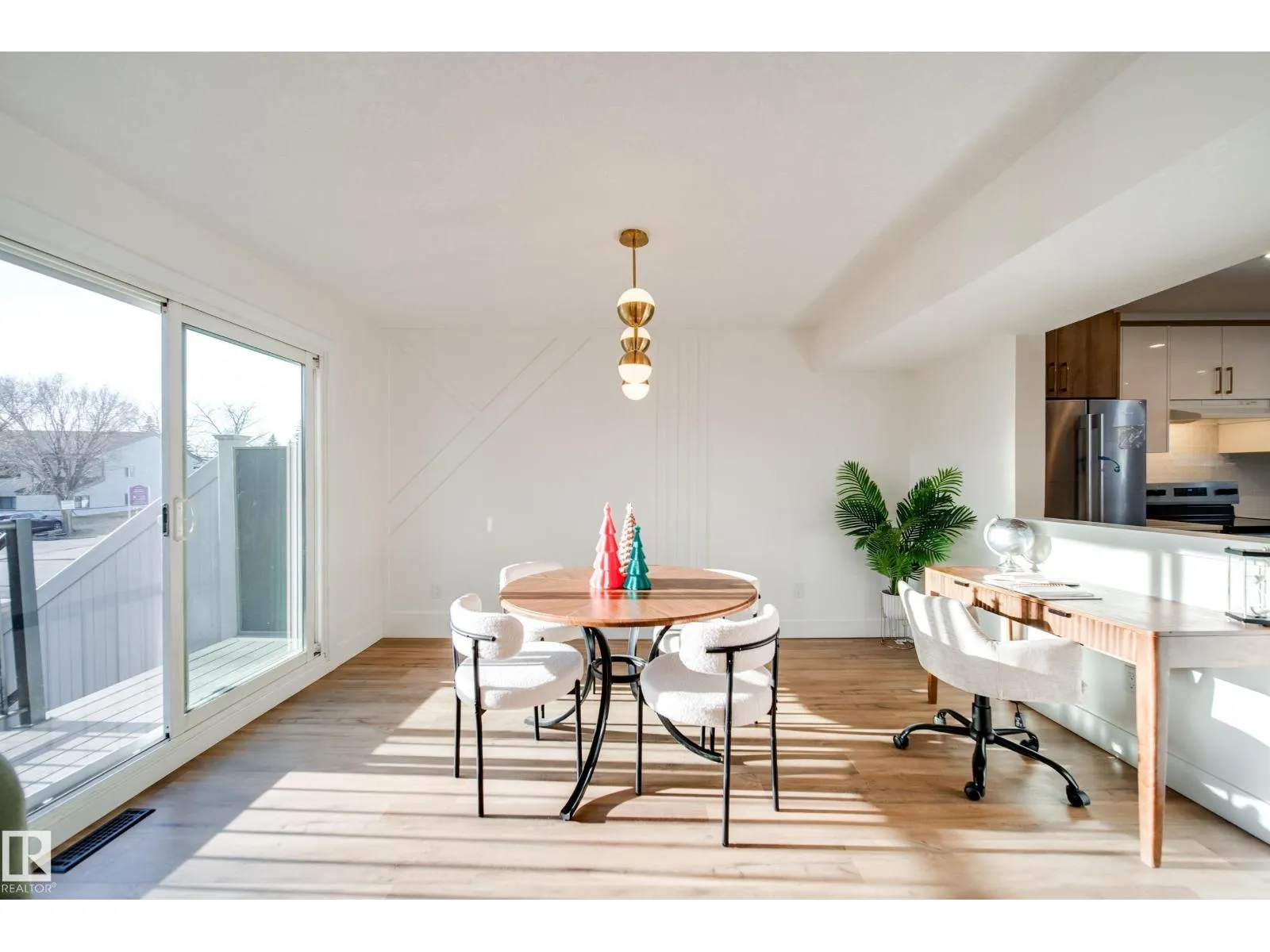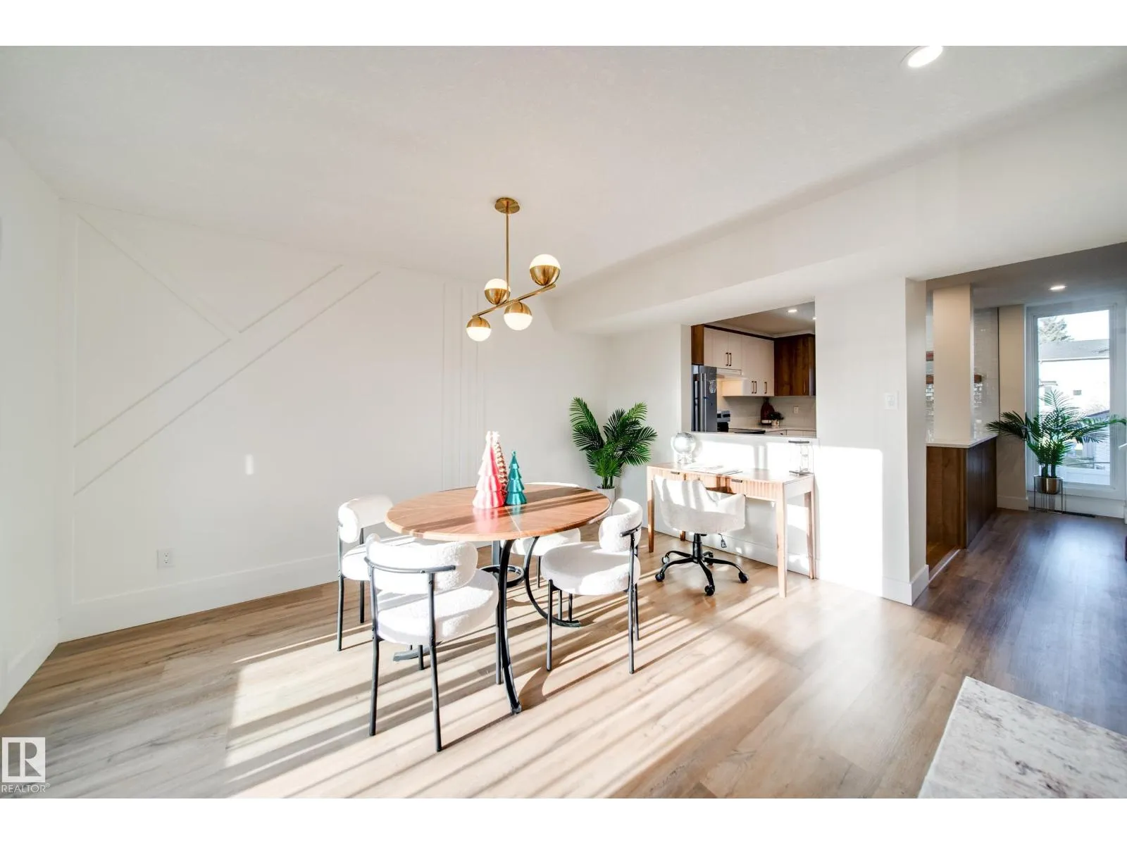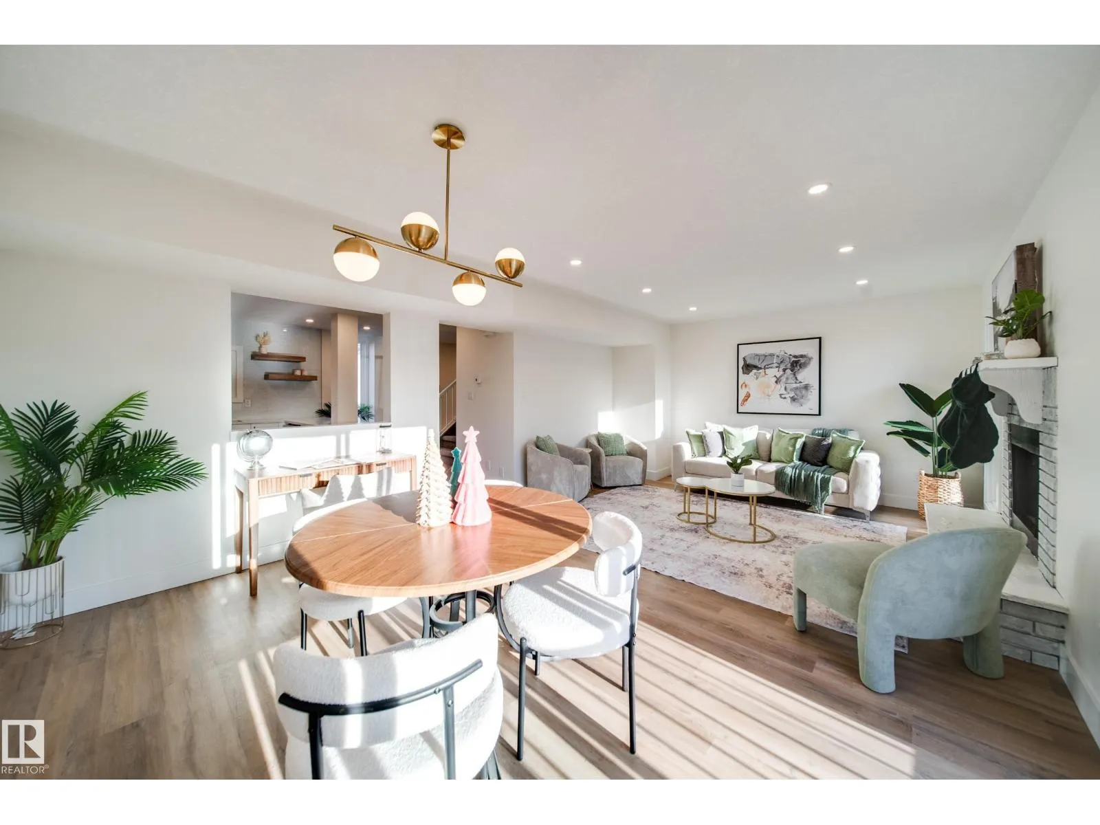 This beautifully renovated 3 BEDROOM, 2 BATHROOM townhome in family friendly Greenview delivers style, comfort, and convenience. The bright open concept main floor features NEW LUXURY VINYL PLANK FLOORING, modern lighting, and a cozy brick surround FIREPLACE. The dining area opens to a deck while the BRAND NEW KITCHEN impresses with white cabinetry, warm wood accents, QUARTZ counters, and black fixtures. Upstairs offers three spacious bedrooms and a NEW 4 PIECE BATHROOM with sleek tilework and new deep soaker tub. The lower level includes an ATTACHED GARAGE and extra storage. UPGRADES INCLUDE: NEW FURNACE, new appliances, trim, doors, FEATURE WALL, new lighting AND POT LIGHTING. With custom finishes throughout, this home is truly move in ready. Located steps from parks, schools, Mill Woods Golf Course, transit, and walking paths everything you need is right here. A perfect blend of modern design and location. Close to the Whitemud. This complex allows 2 PETS, there is NO HEIGHT/WEIGHT restrictions. (id:27476)