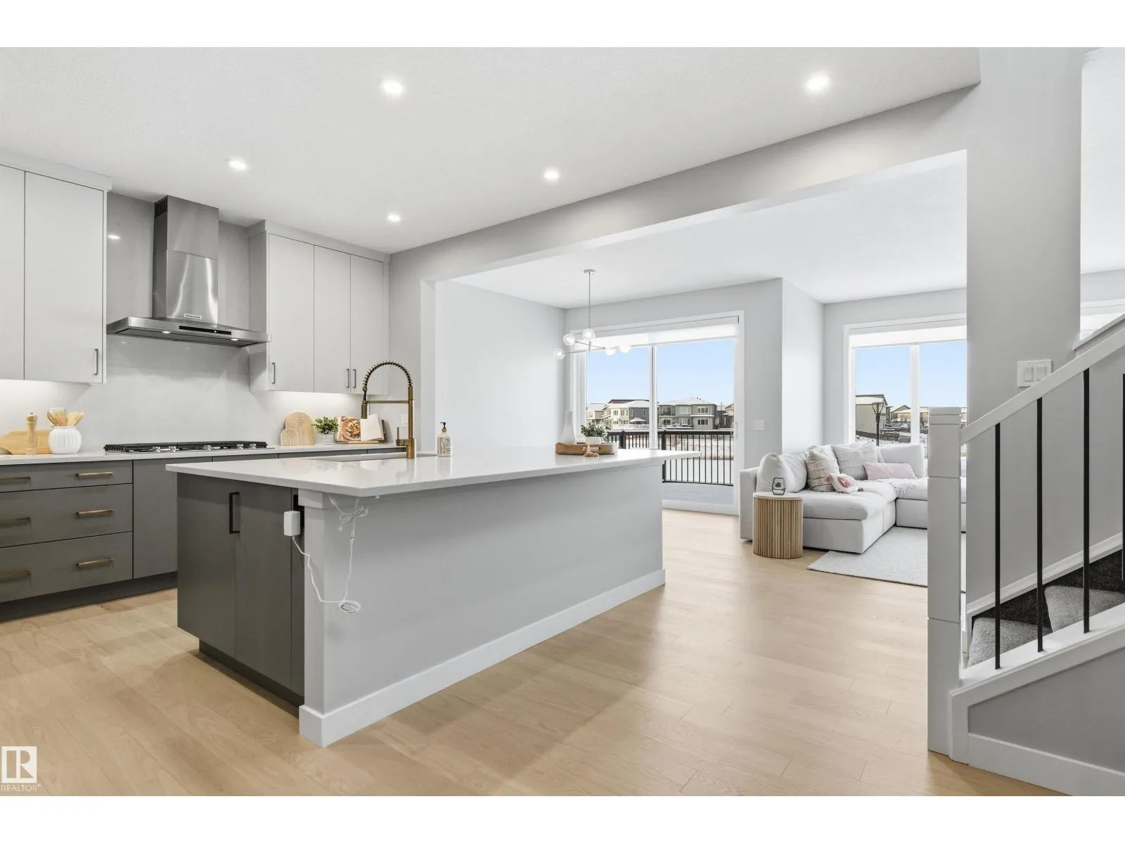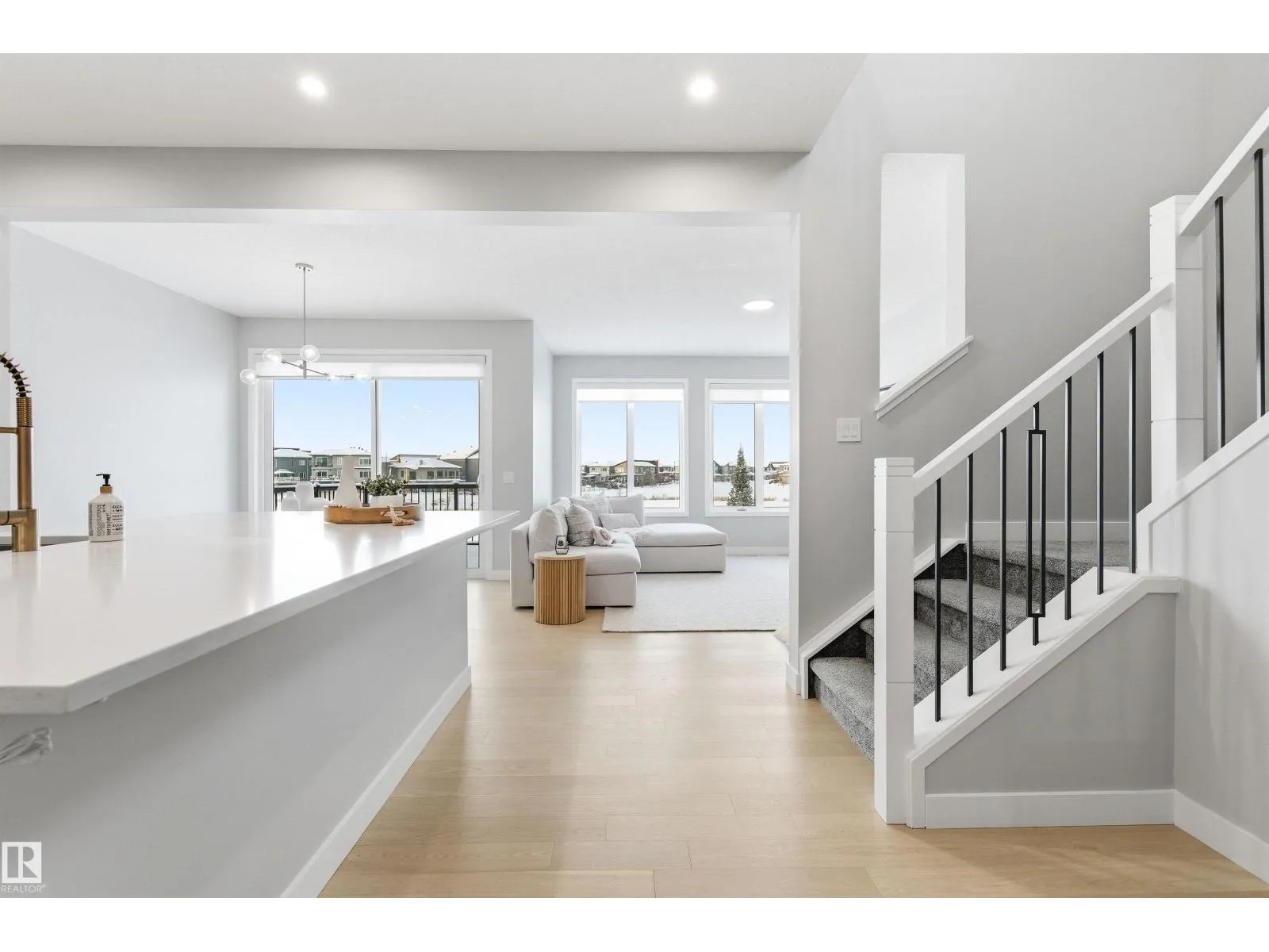 This is one of those homes that instantly feels special. Set on a huge pie-shaped lot with a walkout basement, it backs directly onto a beautiful pond and walking trail, offering unobstructed sunset views and no direct neighbours across - just water, sky, and space to breathe. Inside, oversized windows and 9-foot ceilings on every level fill the home with natural light, and the layout flows effortlessly around a stunning kitchen with a gas cooktop, large island, and beautiful finishes that open to the great room, perfectly positioned to soak in the views in both directions. Upstairs, the bonus room and primary suite feature elegant coffered ceilings, and the primary retreat has peaceful pond views, a spa-inspired ensuite, soaker tub, glass shower, double sinks, and a walk-in closet that connects directly to the laundry room. With central air, EV charger, solar panels, smart lighting, security, and impressive energy efficiency, this 2-year-old custom-built Jayman home is one of Keswick's best! (id:27476)