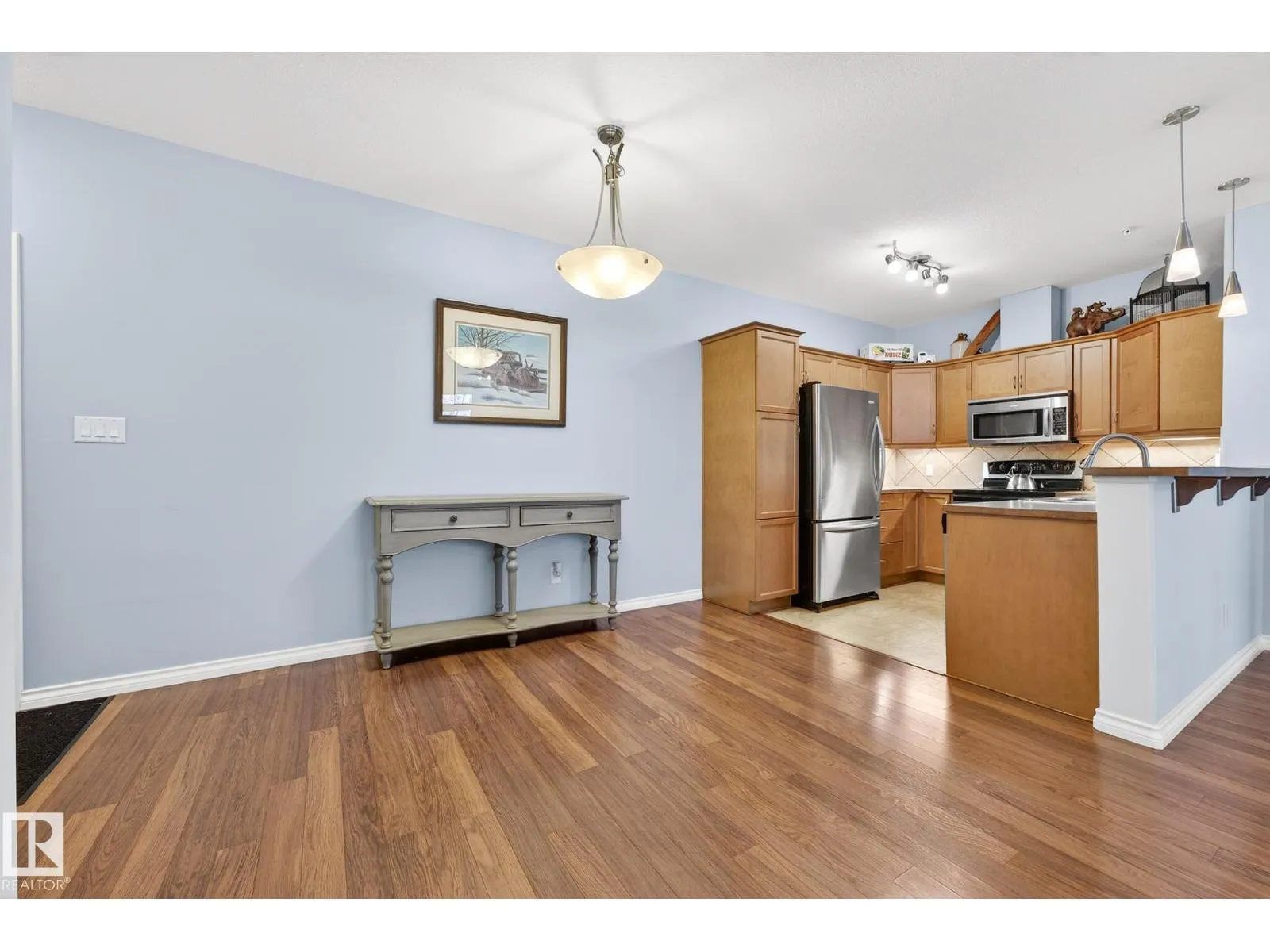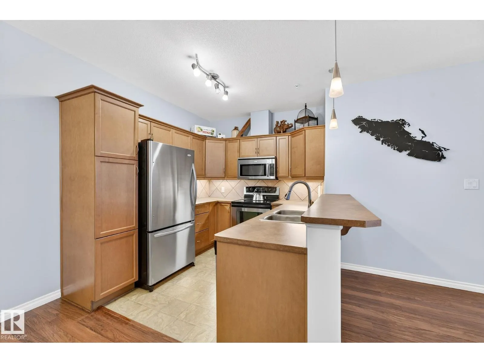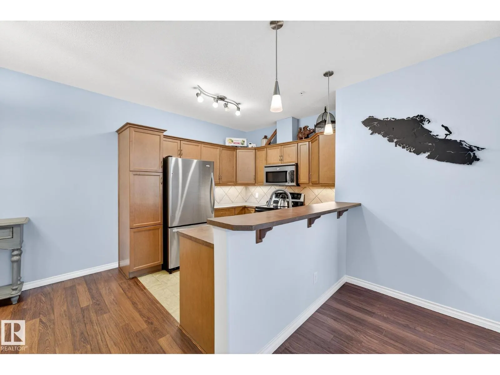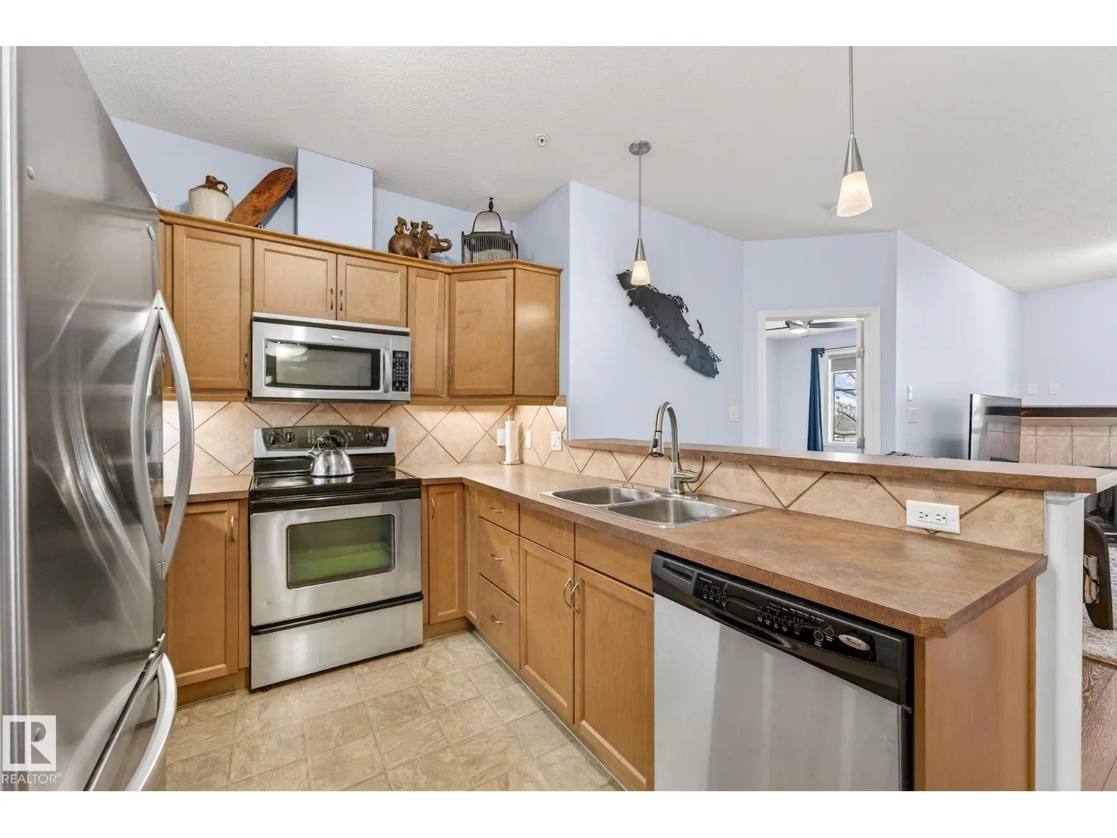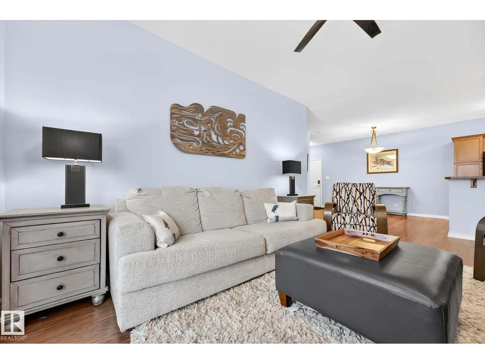 Say hello to this bright, south-facing 2 bed/2 bath open concept condo in Haddow, where comfort meets everyday living. A welcoming foyer leads to in-suite laundry and storage for effortless organization. The dining area flows into a U-shaped kitchen with stainless steel appliances, raised eating bar, pantry, and ample storage, perfect for quiet mornings and entertaining. The living room features a corner gas fireplace for cozy evenings next to a private covered balcony complete with a BBQ gas hook-up. Bedrooms are thoughtfully located on either side of the living room for additional privacy. The primary suite has walkthrough dual-sided mirrored closets with built-in organizers and a 3-piece ensuite. Heated underground parking with 2 titled stalls and 1 storage cage make coming home easy. Amenities to enjoy include the exercise room, social room, theatre, car wash, and guest suite rentals. Close to trails, services, shopping, Whitemud Drive, and Anthony Henday Drive. A place to truly feel at home. (id:27476)