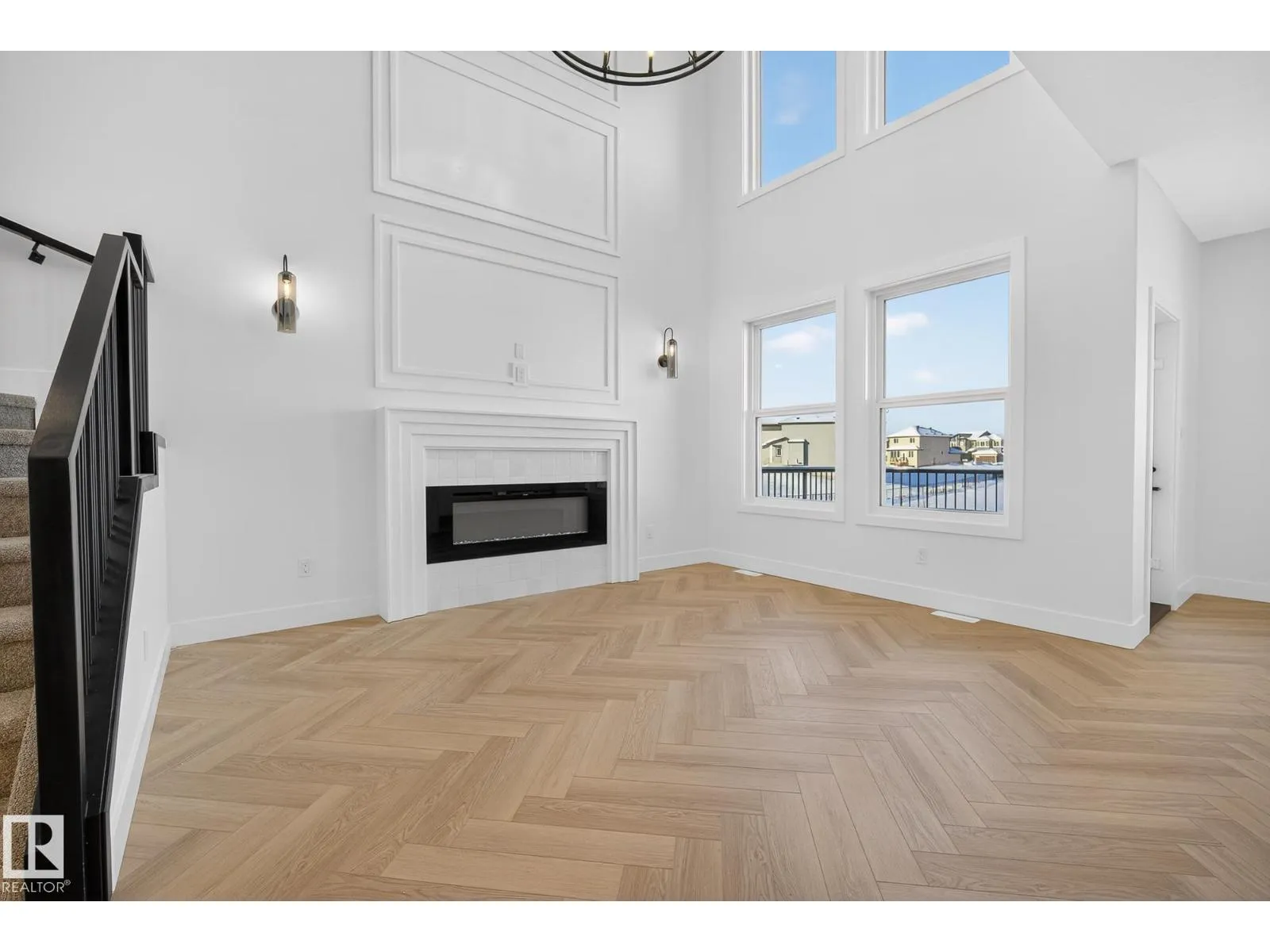 Welcome to this stunning, thoughtfully designed walkout basement home backing onto a serene dry pond. Offering 4 bedrooms and 3 full bathrooms, this home is sure to impress. The open-concept main floor features a bedroom and full bathroom, ideal for guests or multigenerational living. A convenient walk-through pantry connects the mudroom to the chef-inspired kitchen, complemented by elegant herringbone flooring throughout. The breathtaking great room showcases soaring 18-foot ceilings, a striking feature wall, and an electric fireplace, all while capturing views of the dry pond. Upstairs, the rear-facing primary bedroom serves as a private retreat, complete with a 5-piece ensuite and a spacious walk-in closet with direct access to the laundry room for added convenience. A large bonus room completes the upper level, perfect for entertaining or family gatherings. Ideally located just minutes from multiple schools and shopping centres, this home offers the perfect blend of tranquility and accessibility. (id:27476)