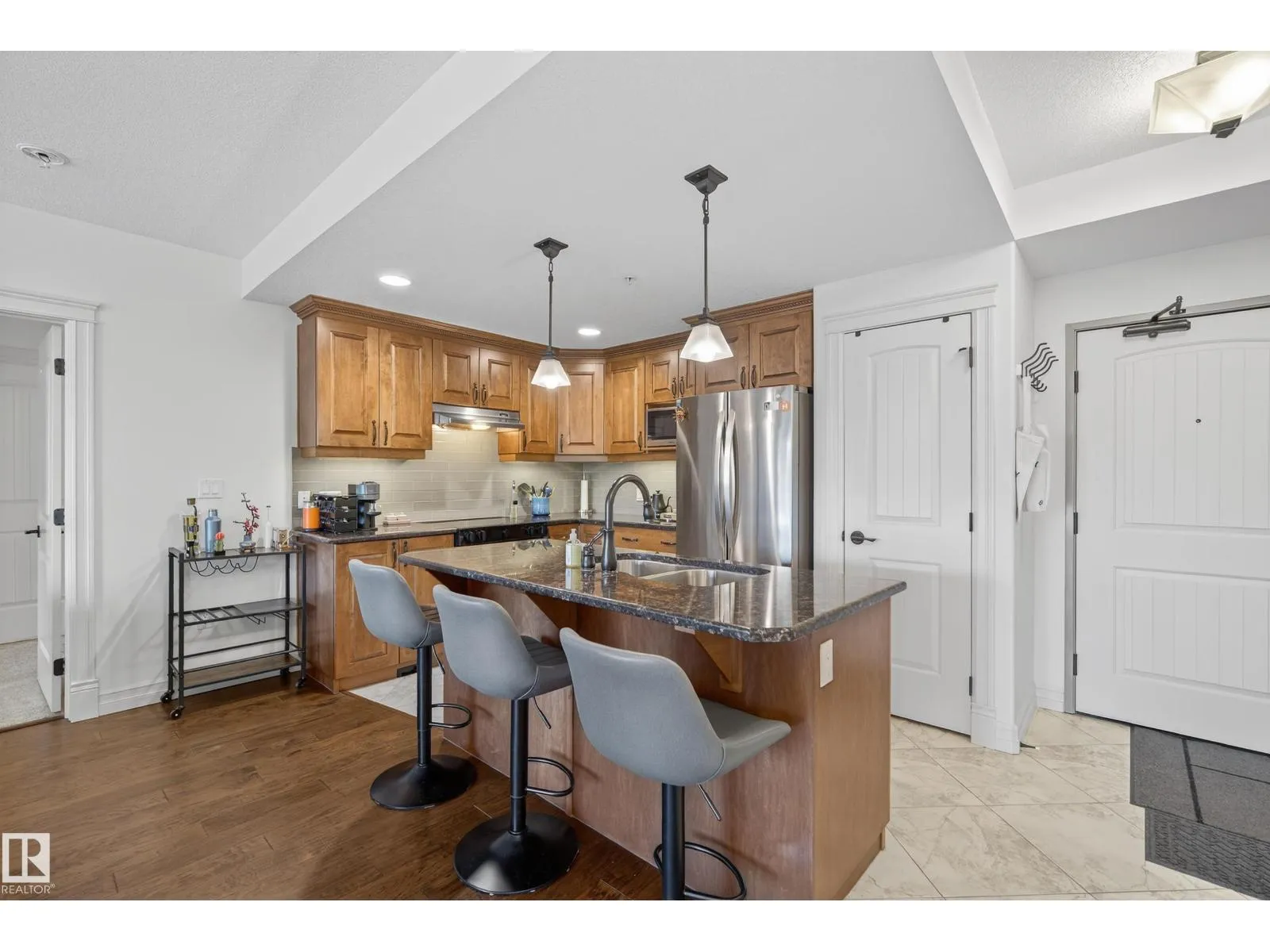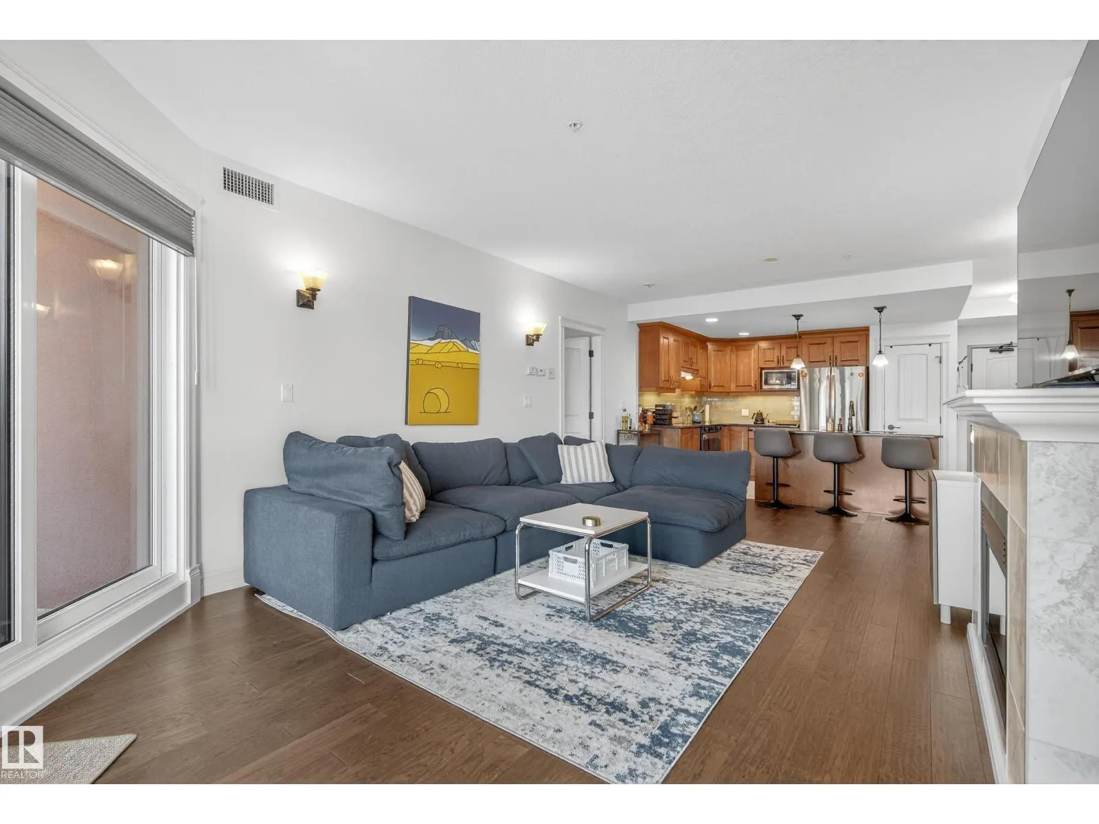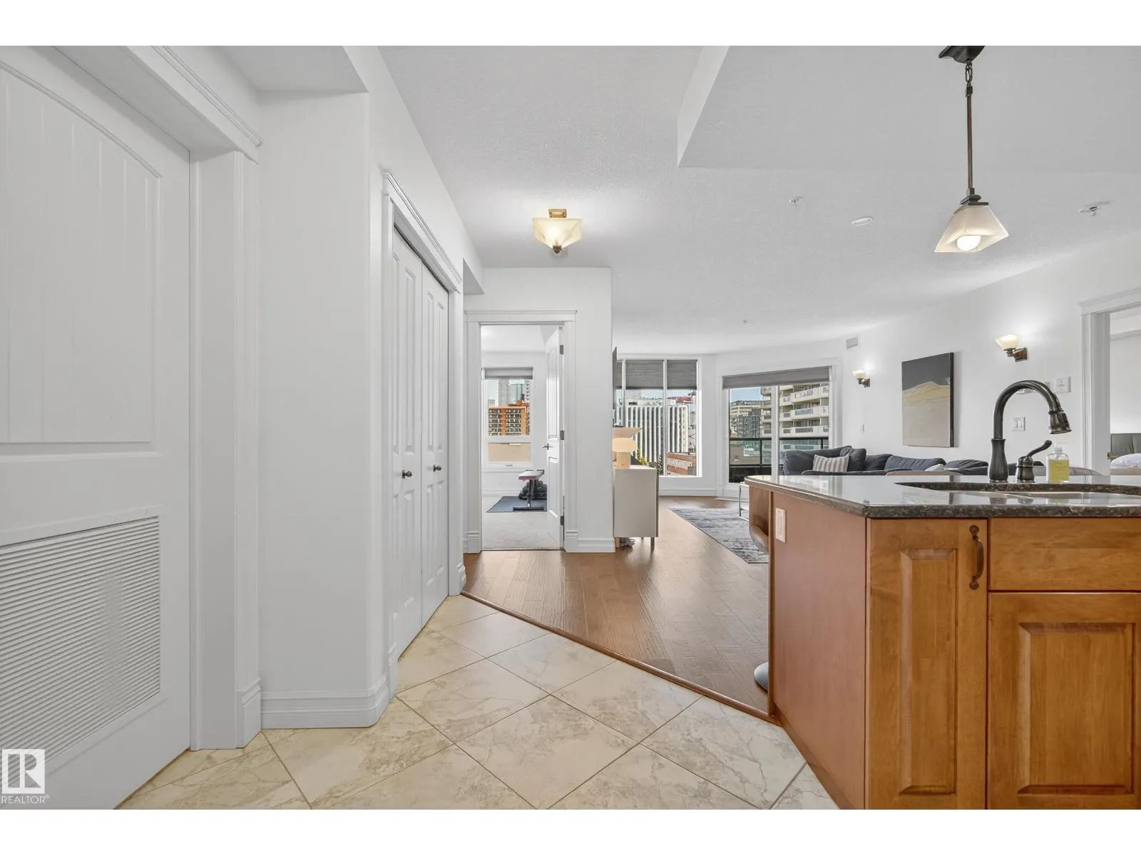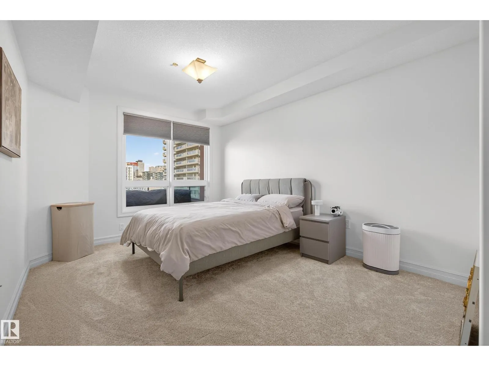 Located in Meridian Plaza, this 2 bed 2 bath condo is MOVE IN READY! The beautiful kitchen showcases SOLID WOOD Delton cabinetry topped with GRANITE countertops, a large island, and brand NEW electric stove (2025), dishwasher (2025), window coverings (2025) and fresh paint! The bright open living room features engineered hardwood floors, electric fireplace, & unobstructed downtown views! Enjoy summer evenings on the large patio equipped with a gas BBQ hookup. The primary suite offers a spacious walk-in-closet with built-ins & a luxurious 5 pc ensuite! The 2nd bedroom is generously sized with more city views & a walk-in-closet. Additional highlights include A/C, title underground parking, & in-suite laundry. Meridian Plaza offers exceptional amenities - fitness centre, owners lounge, guest suite, impressive atrium, and event space. Perfectly located within walking distance to everything downtown--restaurants, shopping & public transportation. The perfect property that blends comfort, style & convenience! (id:27476)