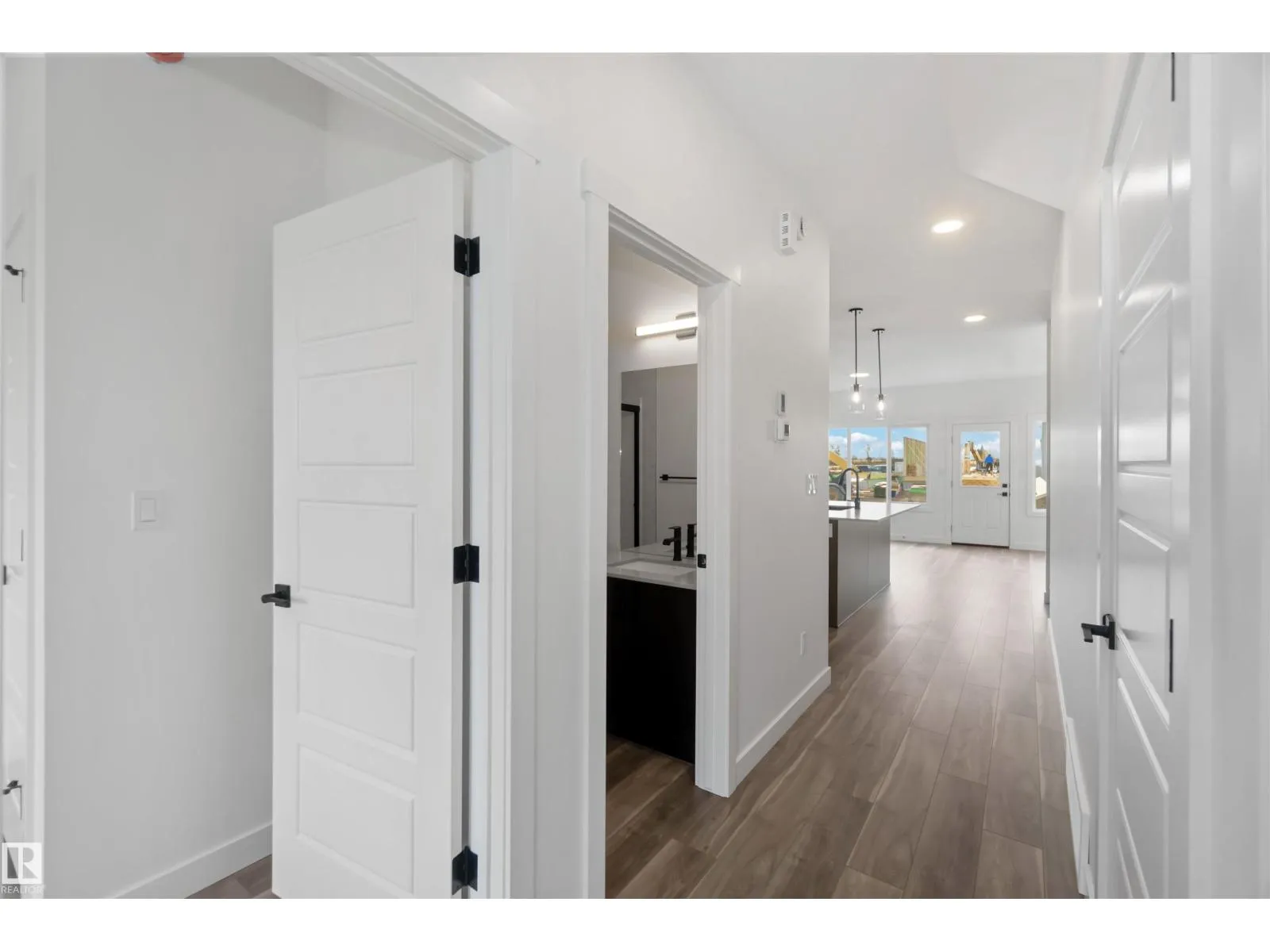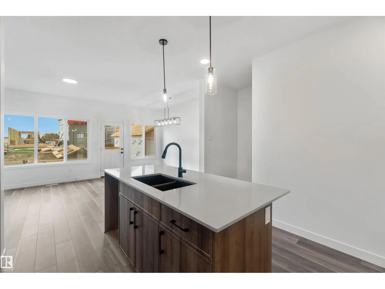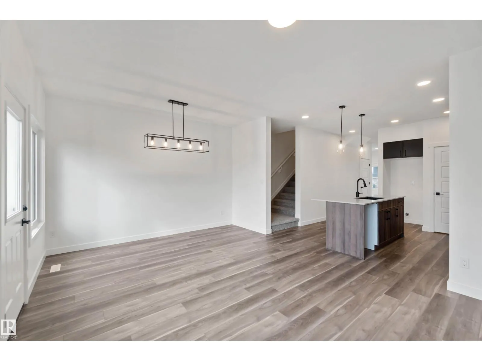 Welcome to the Sapphire by Sterling Homes, a 1,615 sq. ft. home designed for efficient modern living. The main floor features luxury vinyl plank flooring and 9â ceilings, with a bright open layout that includes a main-floor bedroom and a 3-piece bath with walk-in shower. The kitchen offers quartz countertops, an island with flush eating ledge, Silgranit undermount sink, over-the-range microwave, tiled backsplash, upgraded Winston cabinetry with soft-close doors and drawers, and a corner pantry. Large windows, pendant lighting, and a garden door fill the living area and nook with natural light. Upstairs includes a bonus room, primary suite with walk-in closet and 3-piece ensuite, two additional bedrooms, a 3-piece main bath, and a laundry closet for stackable washer and dryer. Black plumbing and lighting fixtures, separate side entrance, 9â ceilings on main and basement levels, basement rough-in, and Sterling Homesâ Signature Specification complete this home. (id:27476)
