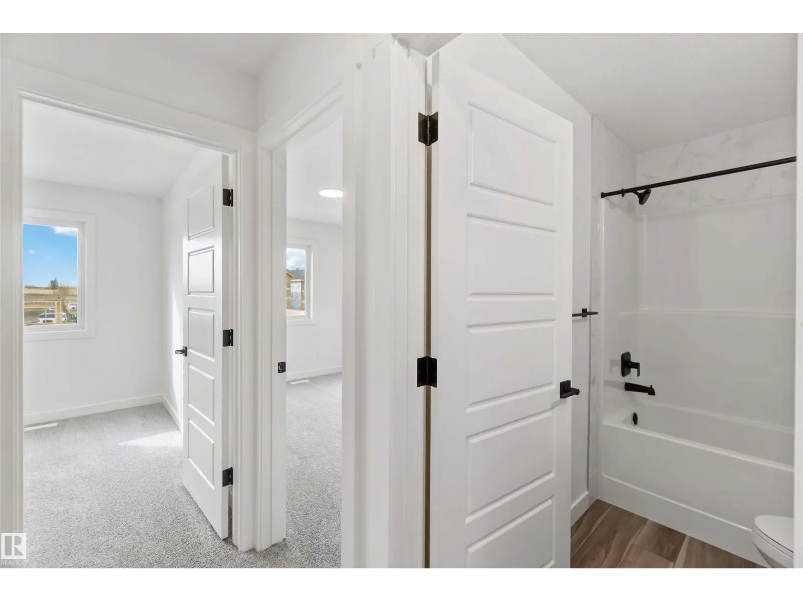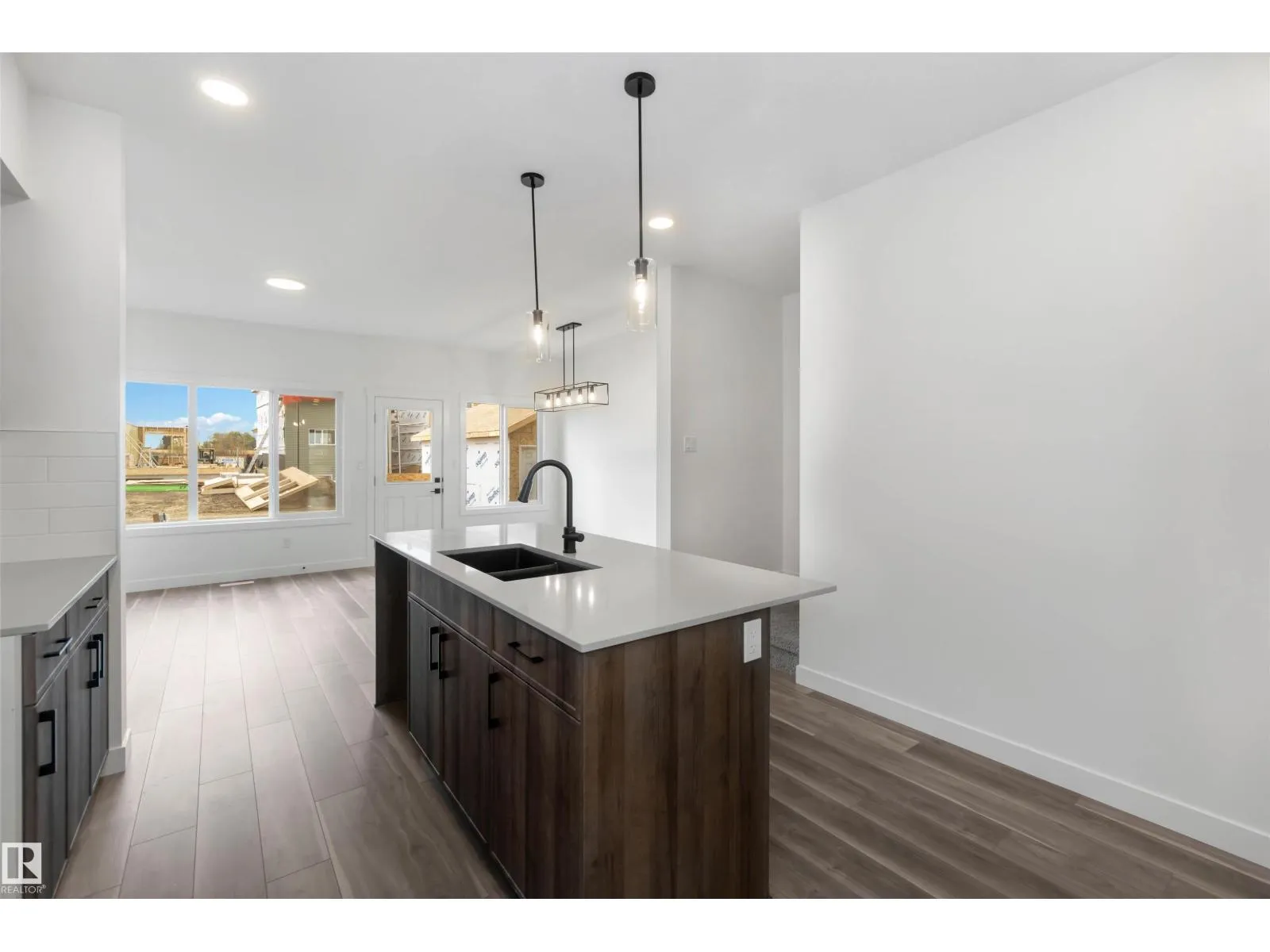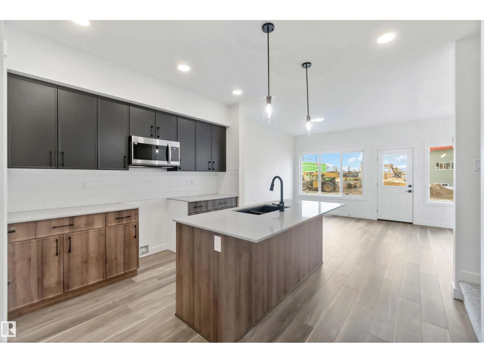 Welcome to the Sapphire by Sterling Homes, a 1,615 sq. ft. home designed for efficient modern living. The main floor features luxury vinyl plank flooring and 9â ceilings, with a bright open layout that includes a main-floor bedroom and a 3-piece bath with walk-in shower. The kitchen offers quartz countertops, an island with flush eating ledge, Silgranit undermount sink, over-the-range microwave, tiled backsplash, upgraded Winston cabinetry with soft-close doors and drawers, and a corner pantry. Large windows, pendant lighting, and a garden door fill the living area and nook with natural light. Upstairs includes a bonus room, primary suite with walk-in closet and 3-piece ensuite, two additional bedrooms, a 3-piece main bath, and a laundry closet for stackable washer and dryer. Black plumbing and lighting fixtures, separate side entrance, 9â ceilings on main and basement levels, basement rough-in, and Sterling Homesâ Signature Specification complete this home. (id:27476)