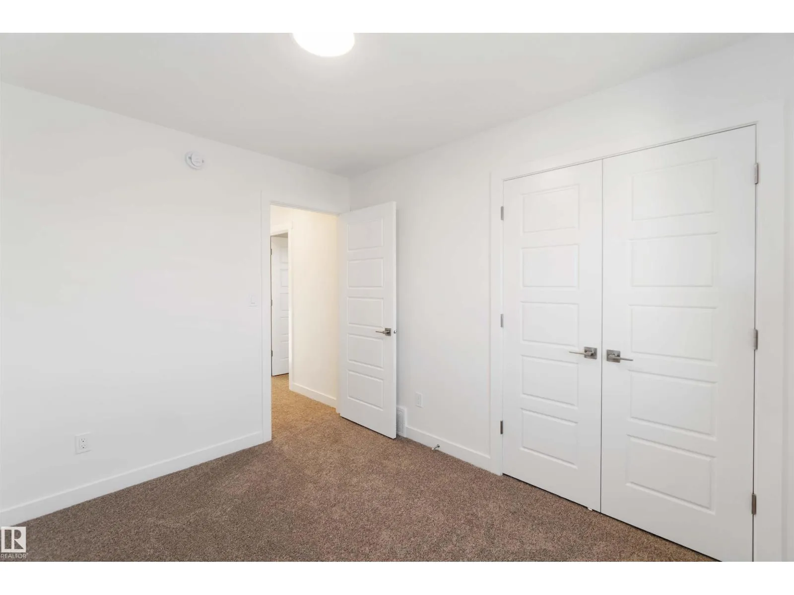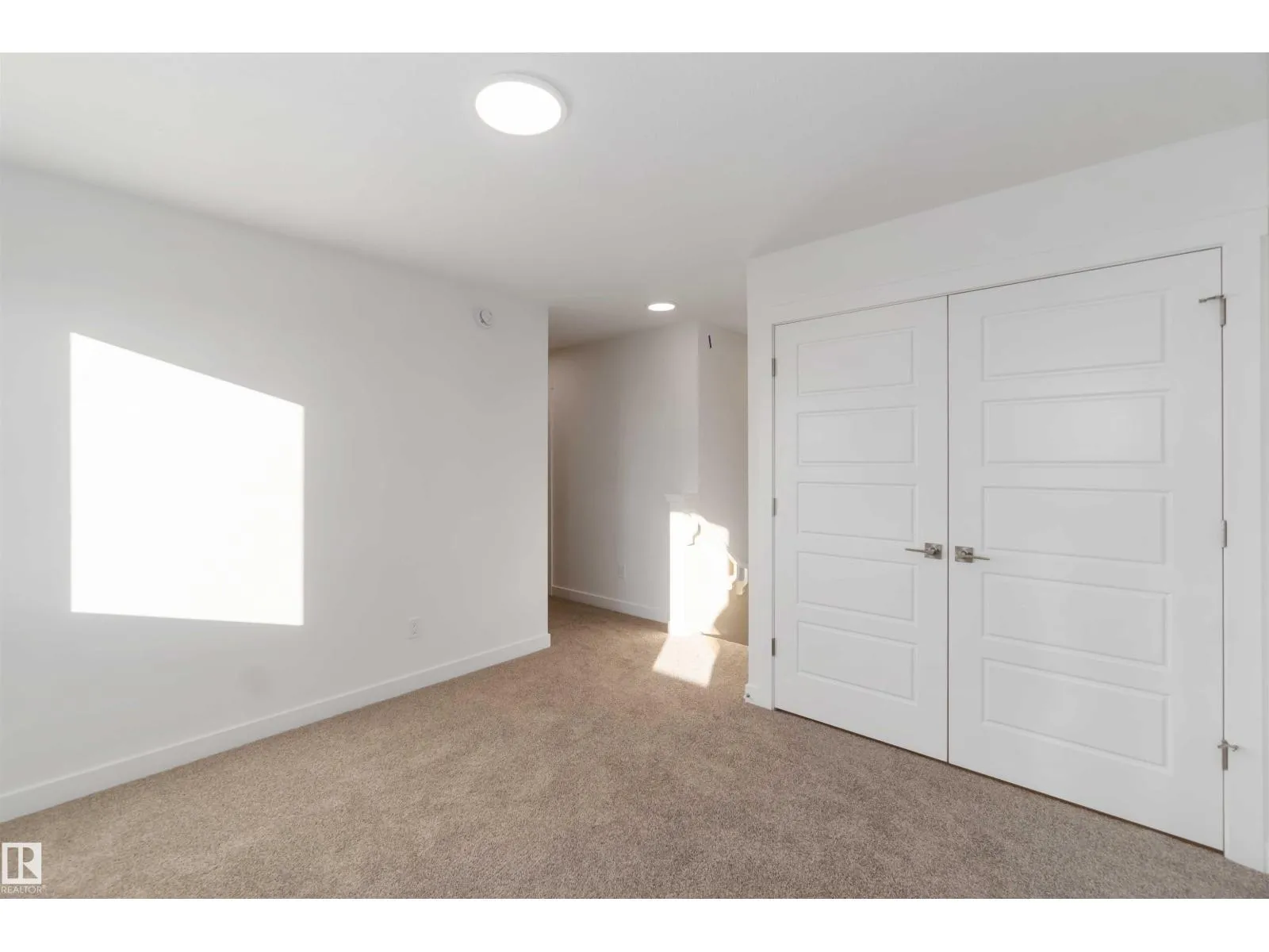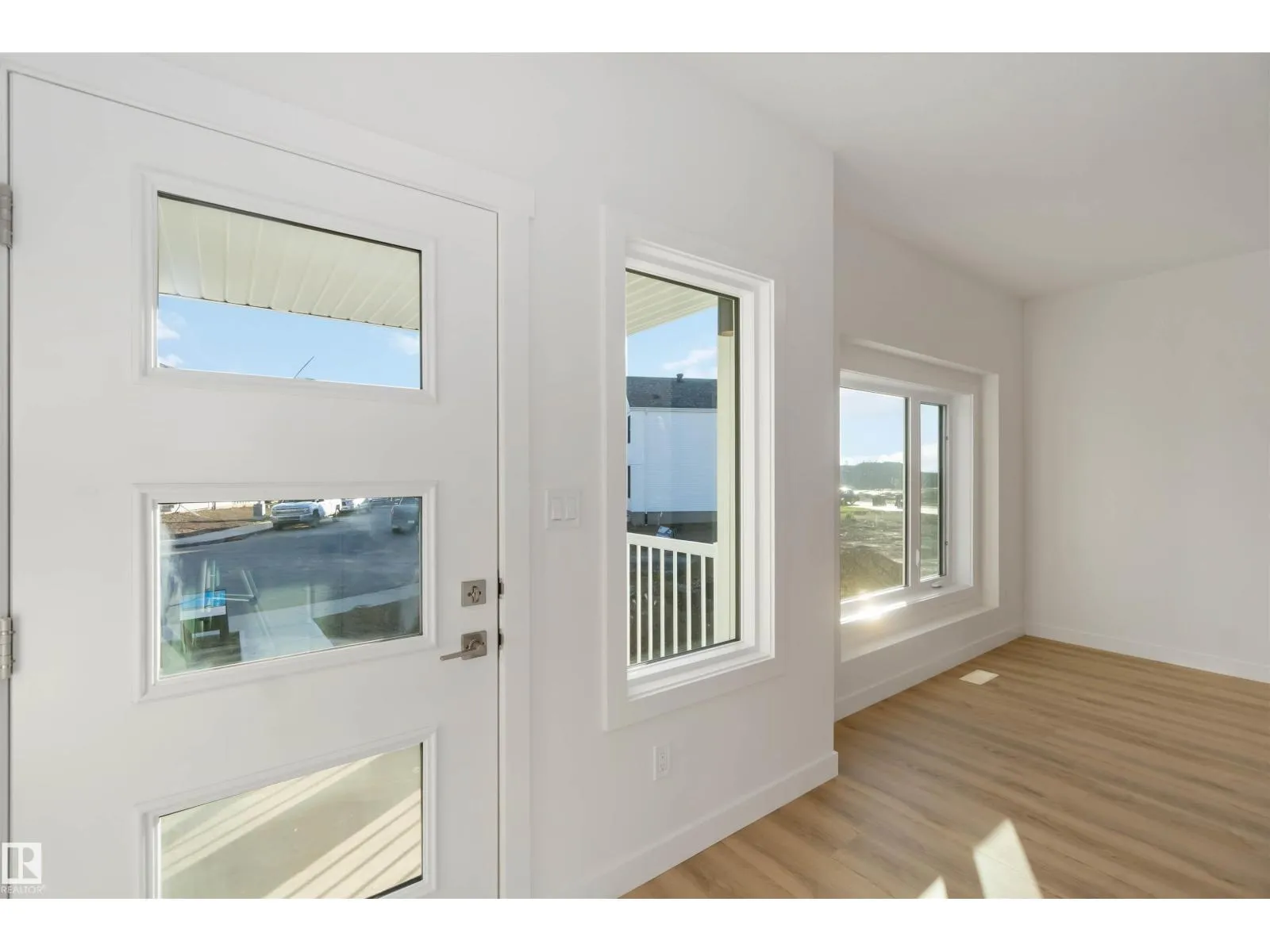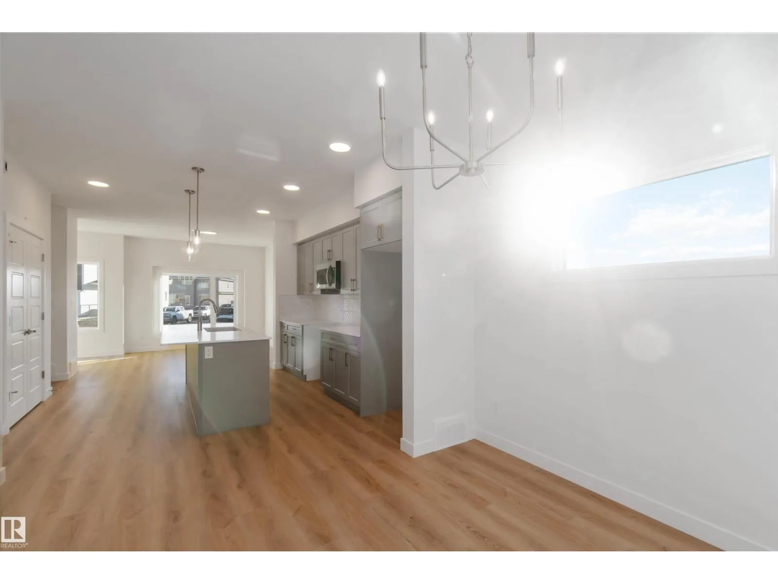 Welcome to The Sylvan by Sterling Homes, a beautifully designed home on a large pie lot with the option to add a triple car garage. The main floor features luxury vinyl plank flooring, 9â ceilings, and a welcoming foyer with a walk-in coat closet leading to a bright great room. The kitchen offers quartz countertops, an island with flush eating ledge and Silgranit undermount sink, Thermofoil cabinetry with soft-close doors and drawers, over-the-range microwave, and a pantry tucked by the staircase. A sunlit nook overlooks the backyard, with a main-floor bedroom, 3-piece bath, and garden door for outdoor access. Upstairs features a primary suite with walk-in closet and 3-piece ensuite, two additional bedrooms, a full bath, and a laundry closet. Brushed nickel fixtures, separate side entrance, basement rough-in, and a parking pad with option for detached garage complete this home. (id:27476)