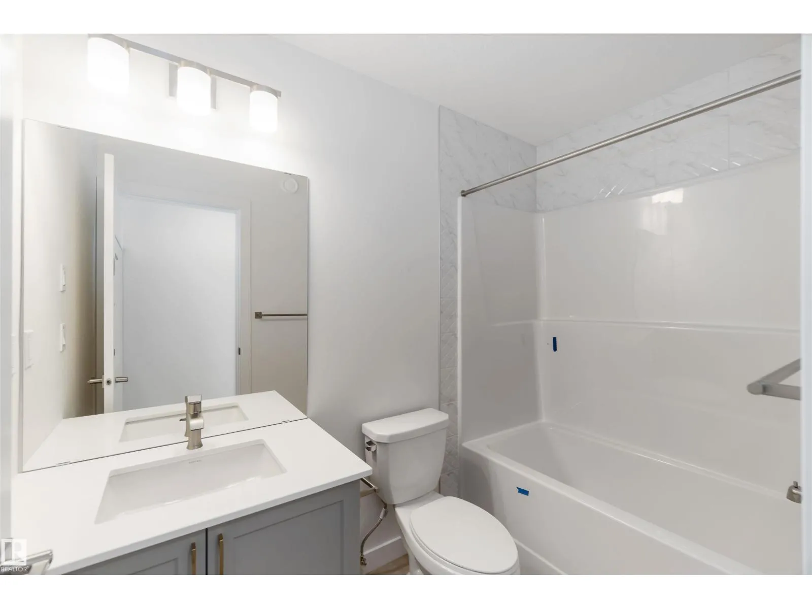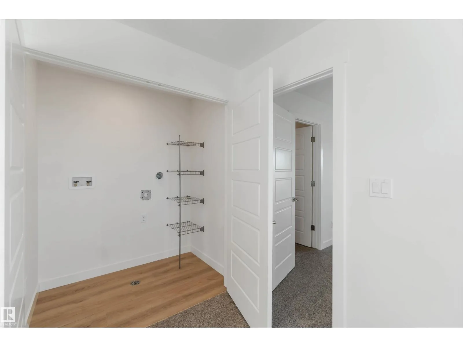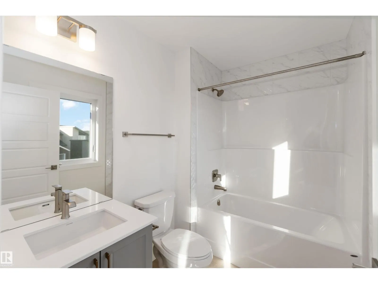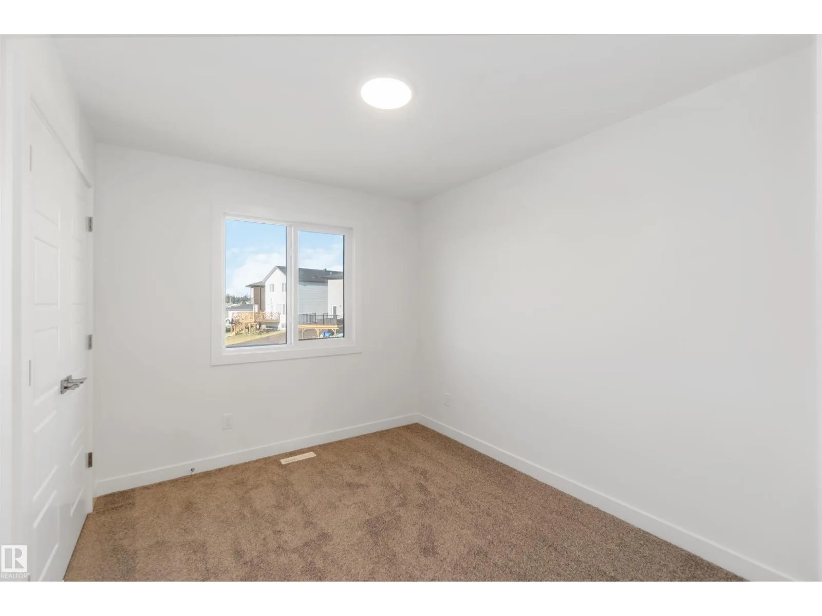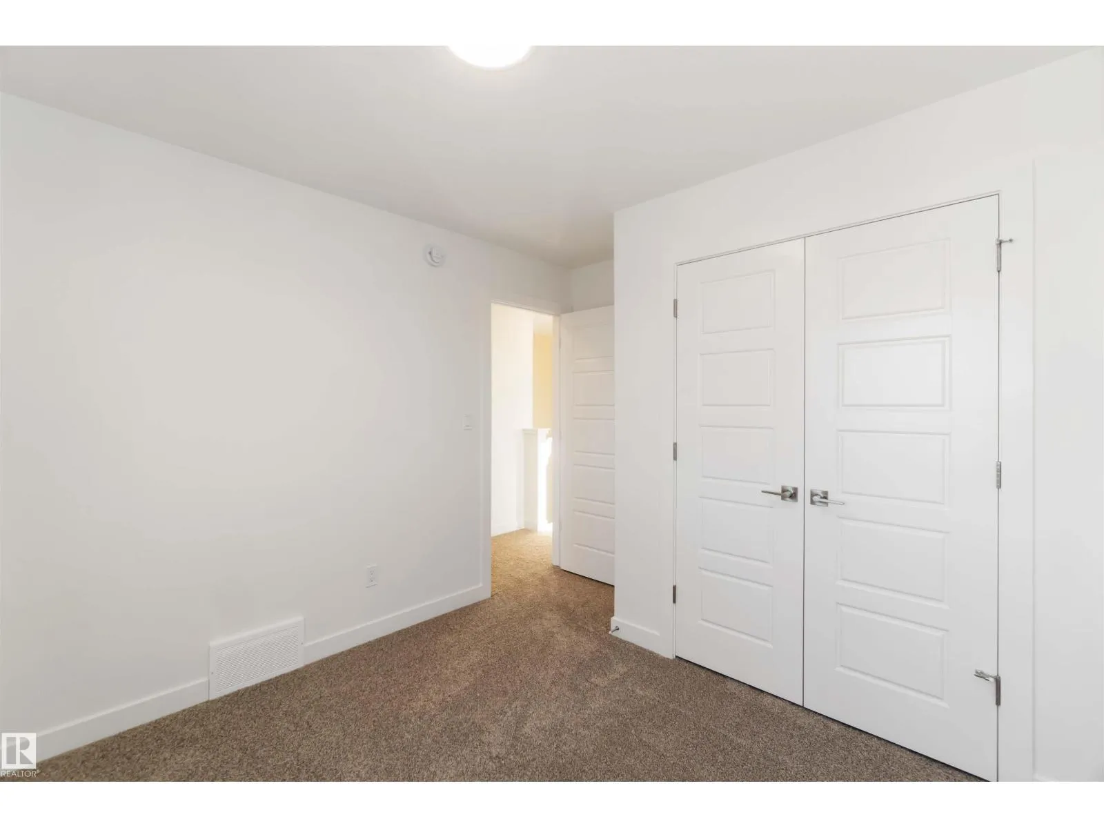 Welcome to The Sylvan by Sterling Homes, a beautifully designed home on a large pie lot with the option to add a triple car garage. The main floor features luxury vinyl plank flooring, 9â ceilings, and a welcoming foyer with a walk-in coat closet leading to a bright great room. The kitchen offers quartz countertops, an island with flush eating ledge and Silgranit undermount sink, Thermofoil cabinetry with soft-close doors and drawers, over-the-range microwave, and a pantry tucked by the staircase. A sunlit nook overlooks the backyard, with a main-floor bedroom, 3-piece bath, and garden door for outdoor access. Upstairs features a primary suite with walk-in closet and 3-piece ensuite, two additional bedrooms, a full bath, and a laundry closet. Brushed nickel fixtures, separate side entrance, basement rough-in, and a parking pad with option for detached garage complete this home. (id:27476)