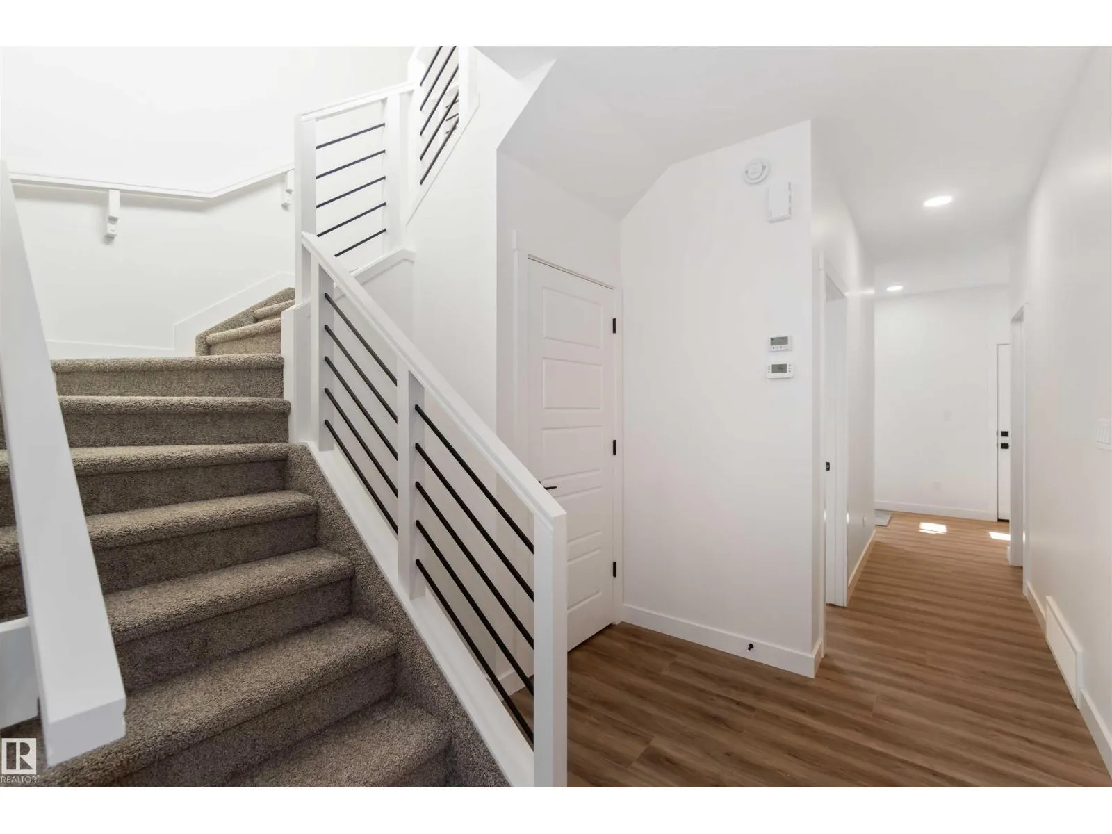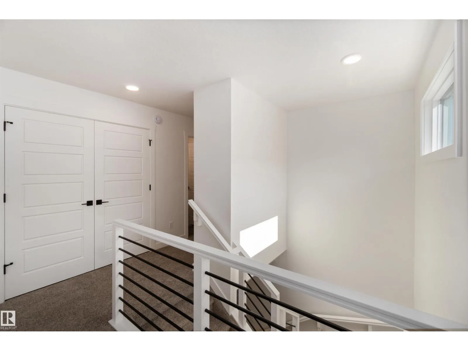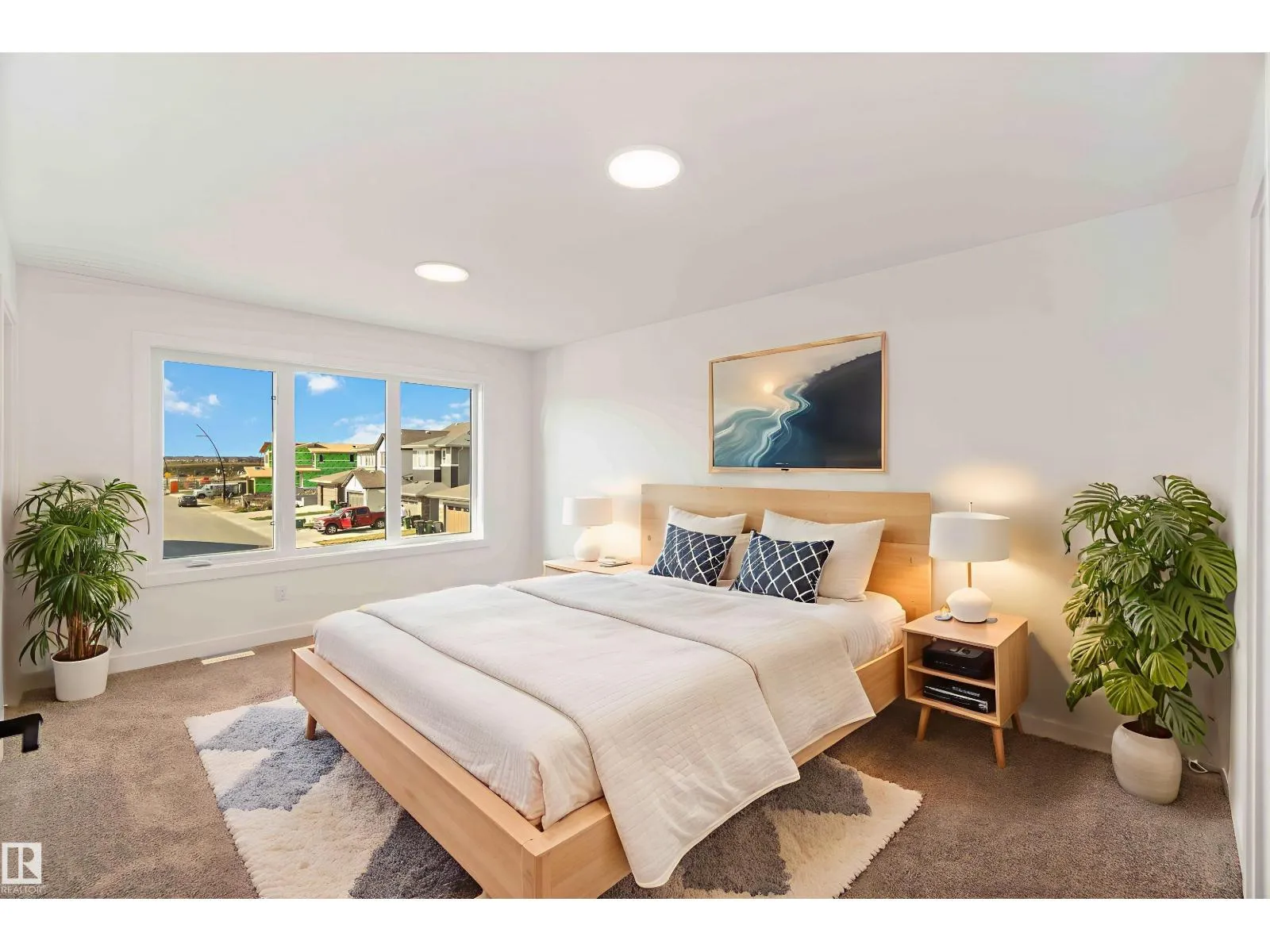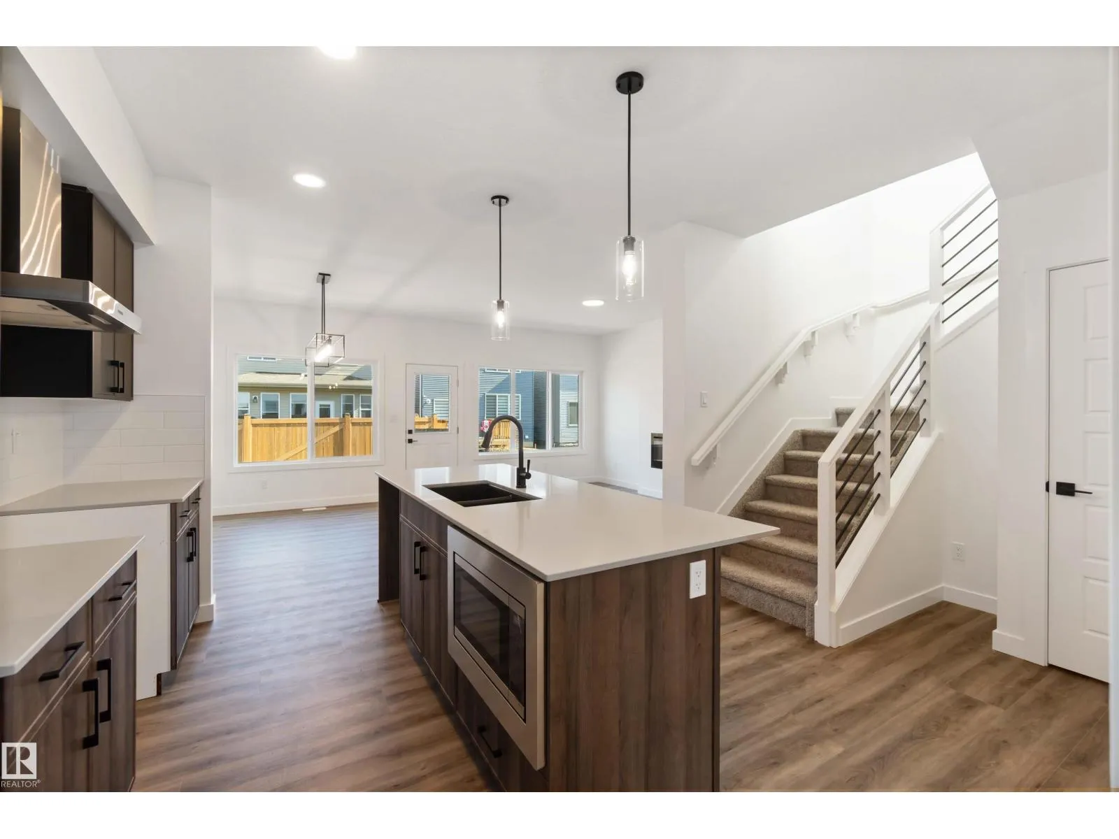 Welcome to The Affinity by Sterling Homes, a beautifully designed home combining elegance, functionality, and modern family living. The main floor features luxury vinyl plank flooring, 9â ceilings, a double attached garage with added width and floor drain, and a separate side entrance. A welcoming foyer leads to a den and full 3-piece bath with walk-in shower. The open-concept kitchen, great room, and nook include an island with flush eating ledge, Silgranit undermount sink, built-in microwave, full-height tiled backsplash, chimney-style hood fan, soft-close cabinetry, and corner pantry. Large windows and patio door fill the great room with light. Upstairs offers a primary suite with walk-in closet and 5-piece ensuite with double sinks, walk-in shower, and free-standing tub, plus a bonus room, main bath, laundry, and two additional bedrooms. Black fixtures, upgraded railings, basement rough-in, and Sterling Signature Specification complete this home. (id:27476)