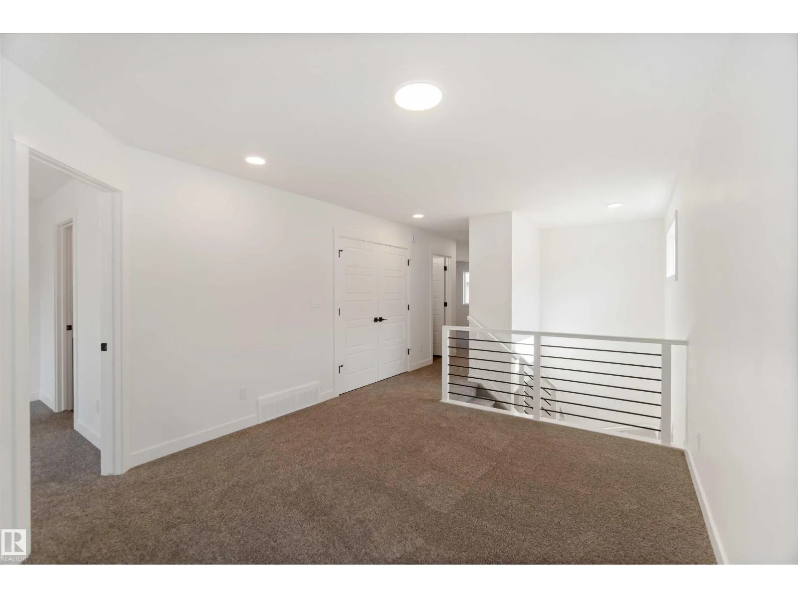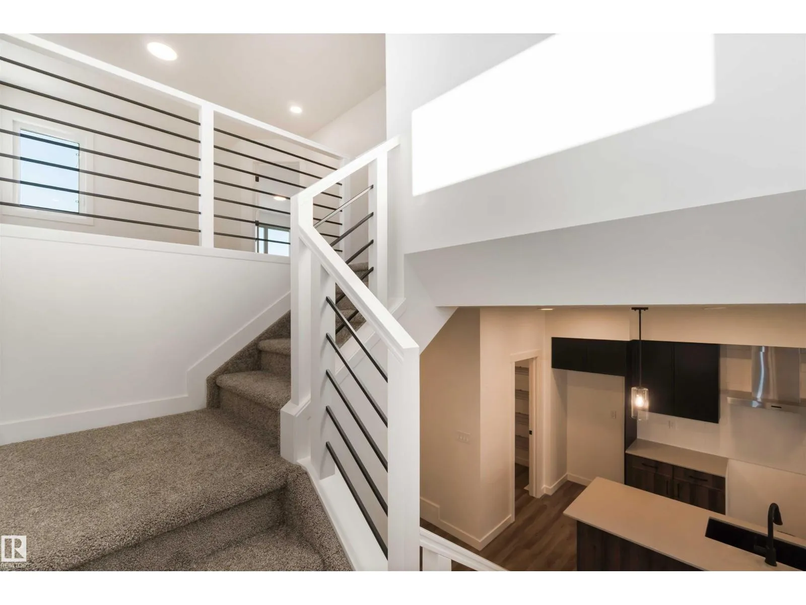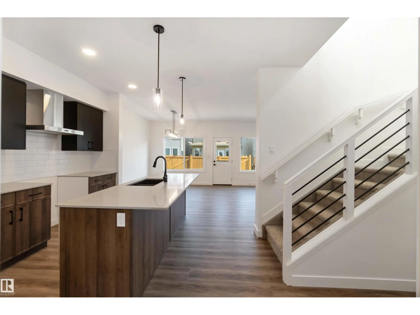 Welcome to The Affinity by Sterling Homes, a beautifully designed home combining elegance, functionality, and modern family living. The main floor features luxury vinyl plank flooring, 9â ceilings, a double attached garage with added width and floor drain, and a separate side entrance. A welcoming foyer leads to a den and full 3-piece bath with walk-in shower. The open-concept kitchen, great room, and nook include an island with flush eating ledge, Silgranit undermount sink, built-in microwave, full-height tiled backsplash, chimney-style hood fan, soft-close cabinetry, and corner pantry. Large windows and patio door fill the great room with light. Upstairs offers a primary suite with walk-in closet and 5-piece ensuite with double sinks, walk-in shower, and free-standing tub, plus a bonus room, main bath, laundry, and two additional bedrooms. Black fixtures, upgraded railings, basement rough-in, and Sterling Signature Specification complete this home. (id:27476)