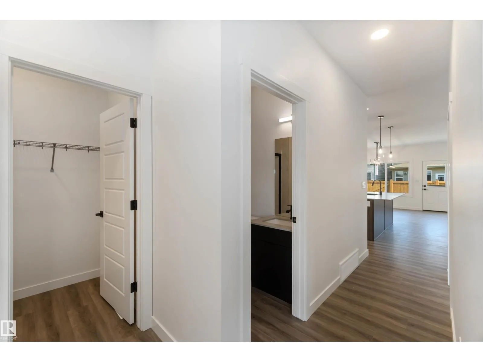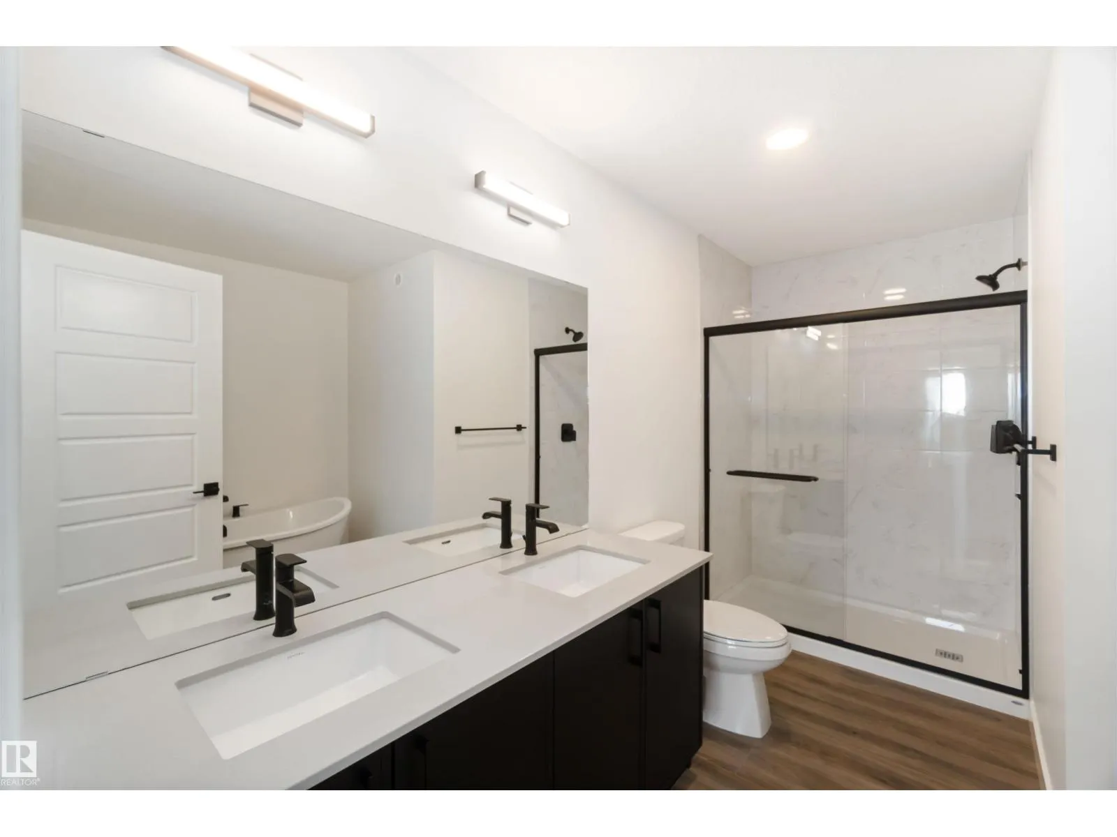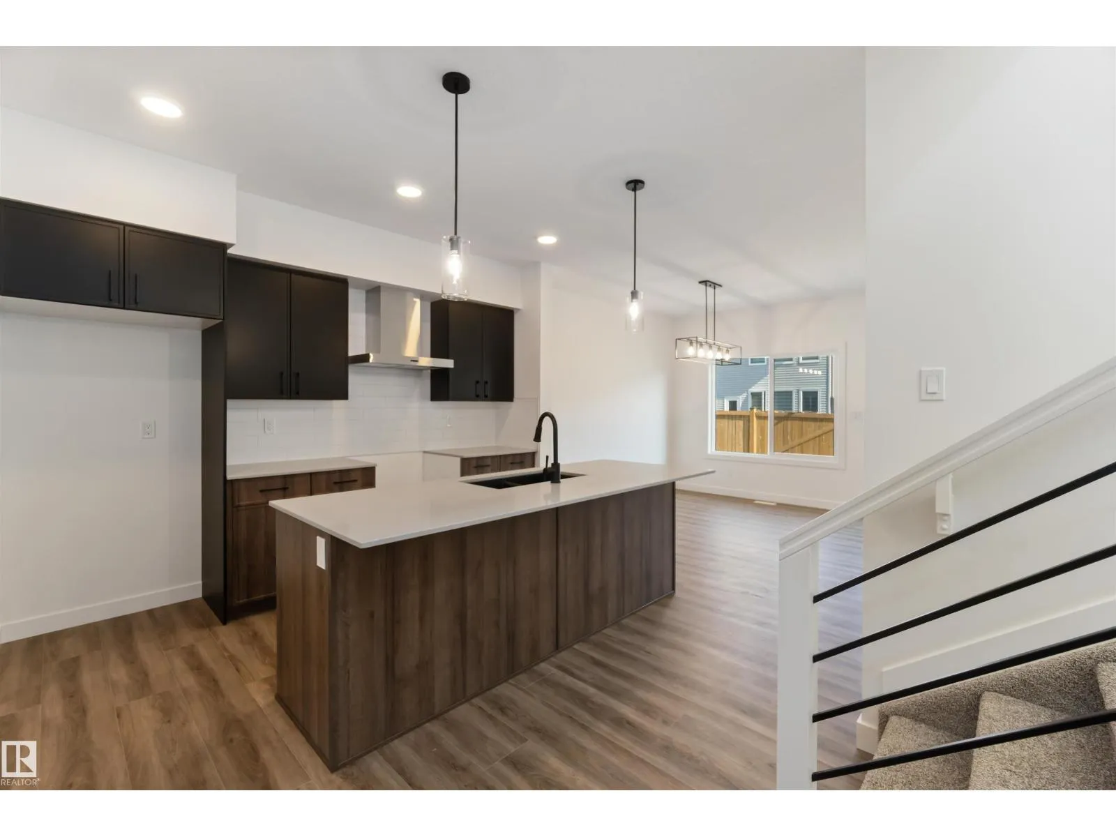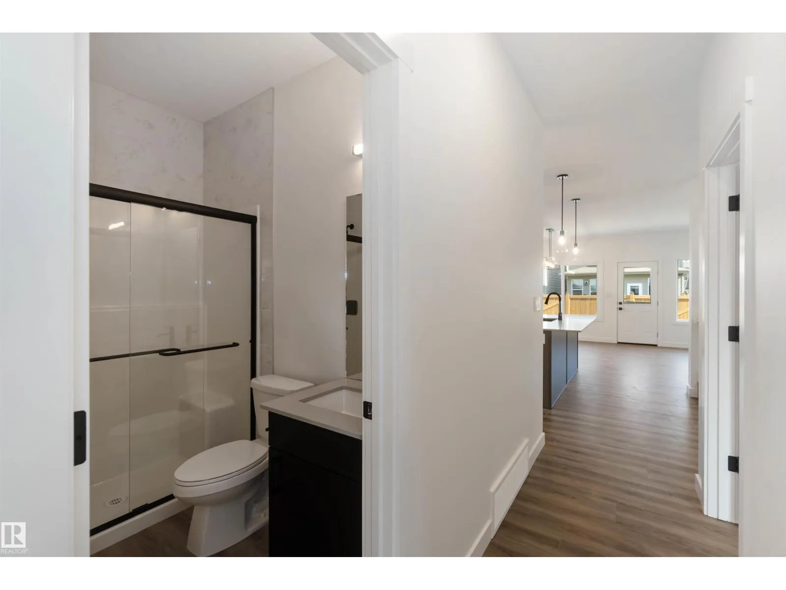 Welcome to The Affinity by Sterling Homes, a beautifully designed home combining elegance, functionality, and modern family living. The main floor features luxury vinyl plank flooring, 9â ceilings, a double attached garage with added width and floor drain, and a separate side entrance. A welcoming foyer leads to a den and full 3-piece bath with walk-in shower. The open-concept kitchen, great room, and nook include an island with flush eating ledge, Silgranit undermount sink, built-in microwave, full-height tiled backsplash, chimney-style hood fan, soft-close cabinetry, and corner pantry. Large windows and patio door fill the great room with light. Upstairs offers a primary suite with walk-in closet and 5-piece ensuite with double sinks, walk-in shower, and free-standing tub, plus a bonus room, main bath, laundry, and two additional bedrooms. Black fixtures, upgraded railings, basement rough-in, and Sterling Signature Specification complete this home. (id:27476)