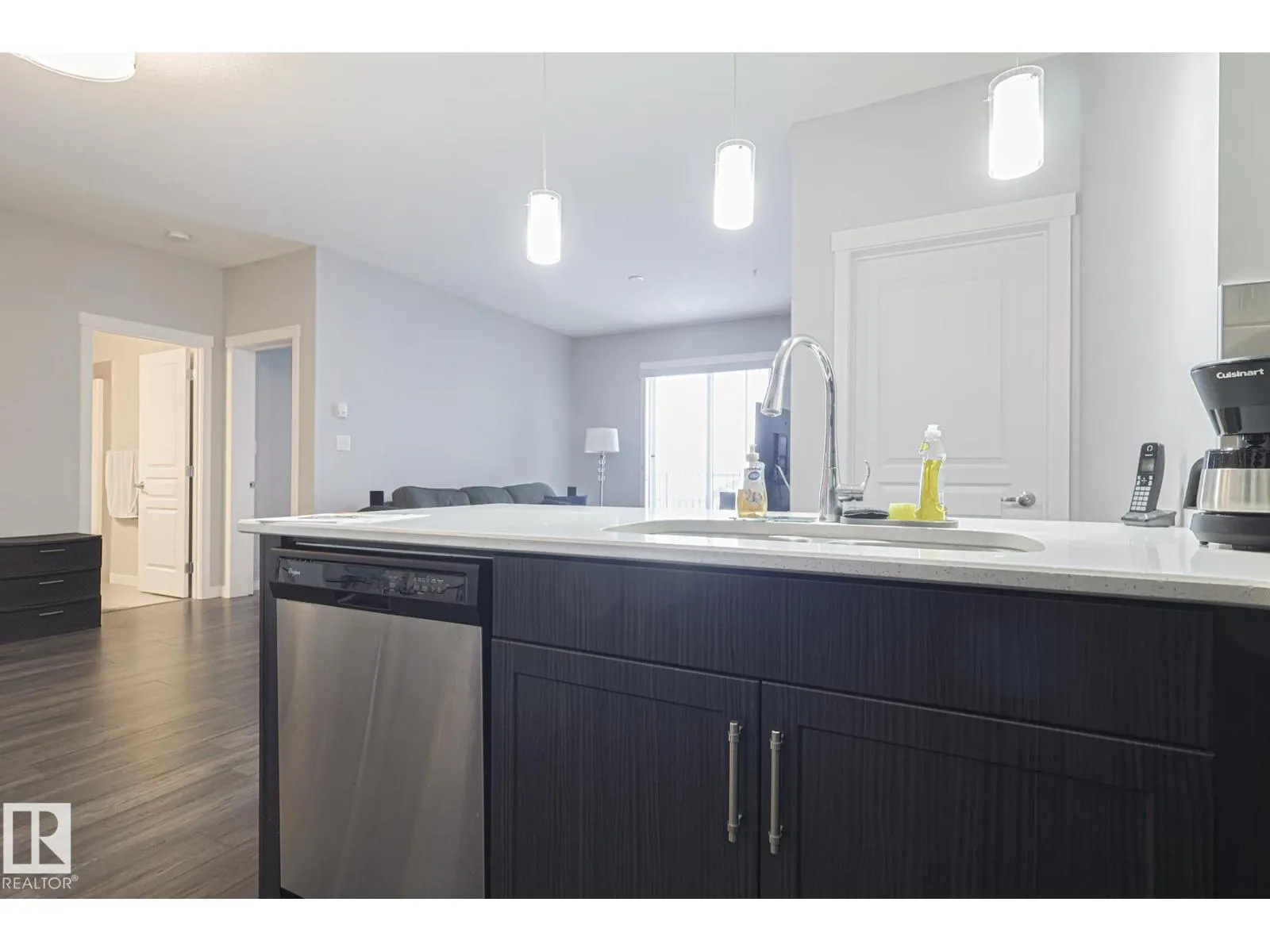 Welcome to Village At Walker Lake! This 2 bed 2 bath has everything and more! ALL UTILITIES INCLUDED, PET FRIENDLY, UNDERGROUND STALL, QUARTZ COUNTERTOPS, A/C, TOP FLOOR, IN-SUITE LAUNDRY, 9FT CELINING & VINYL PLANK FLOORING. As you enter this spacious 873 sq ft bright modern open concept unit you are wowed. The kitchen includes a upgraded backsplash and cabinetry with island eat-up bar. Off of the living room you have your patio with natural gas hook-up, you have a spacious laundry room with extra storage space & 4 piece bath. The master has a walk-through closet with 4 piece ensuite, lastly the spacious second bedroom completes this unit. Conveniently located close to schools, public transportation, grocery stores, shopping, restaurants & South Edmonton Common & walking trails. Easy access to Ellerslie Rd & Anthony Henday. (id:27476)