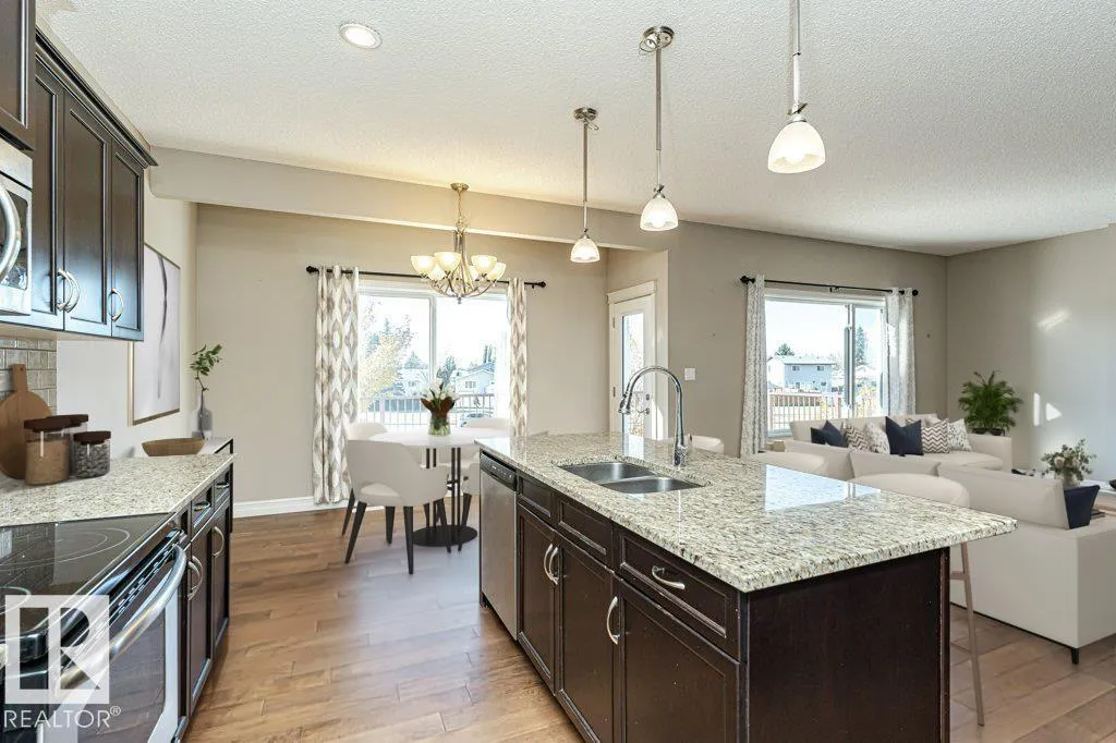 WALK OUT BASEMENT! PIE LOT! SECOND KITCHEN! Welcome to this Landmark Built 2 Storey home located in the Laurel Neighborhood featuring 3+1 Bedrooms, 3.5 Bathrooms, and a Double Attached Garage with UNIQUE SPICE KITCHEN! The main floor showcases an Open Concept design with Chefs Kitchen boasting Granite Countertops, Stainless Steel Appliances, Spacious Island, and Walk Through Pantry. A cozy living room, Gas Fireplace, Main Floor Laundry, dining area, 2 piece bath, and access to the Upper Deck complete the main floor. The upper level features a Bonus Room, 4 piece bath, and 3 bedrooms, including a massive Primary Suite offering Walk In Closet, + 4 piece Ensuite with Soaker Tub. The Fully Finished basement includes a Recreation Room, SECOND KITCHEN, bedroom, 3 piece bath, Plus access to the Private Parklike backyard featuring patio, additional deck space, and garden beds. This exceptional home is ideally located near schools, parks, public transportation and more Move In Ready! Some photos virtually st.aged (id:27476)