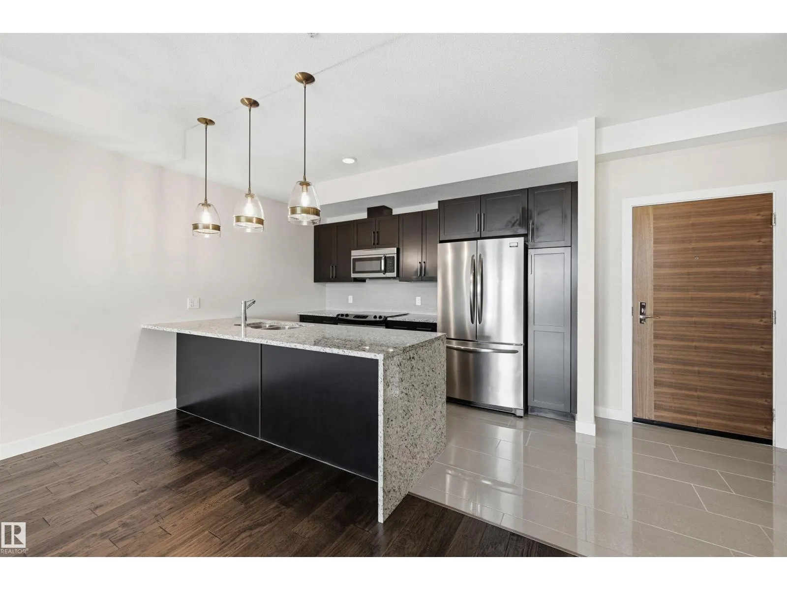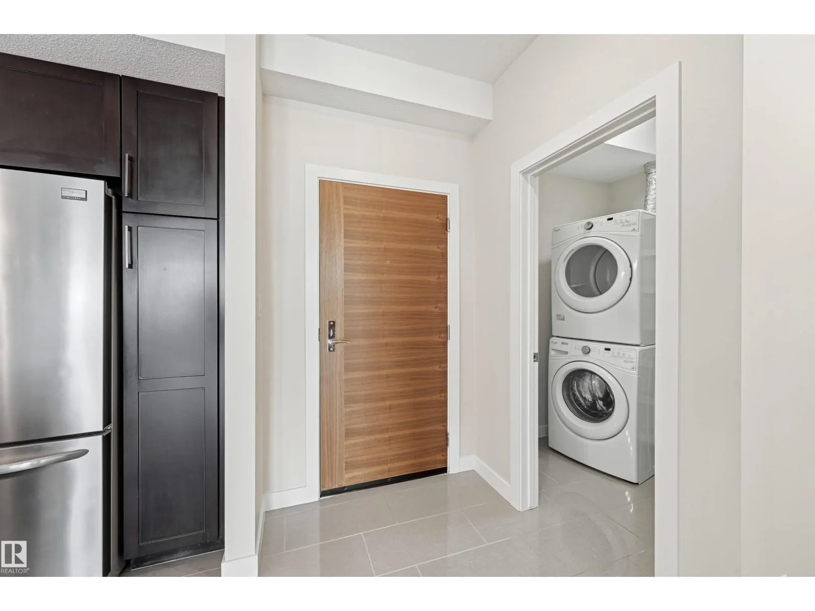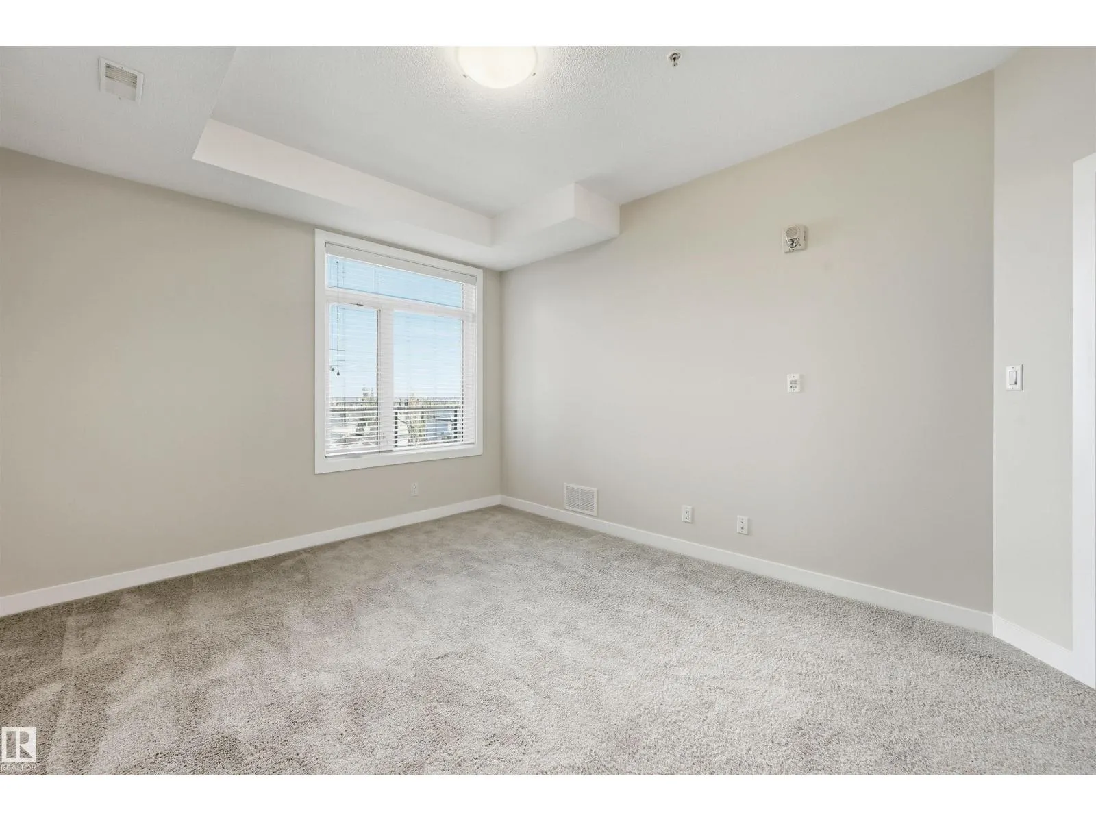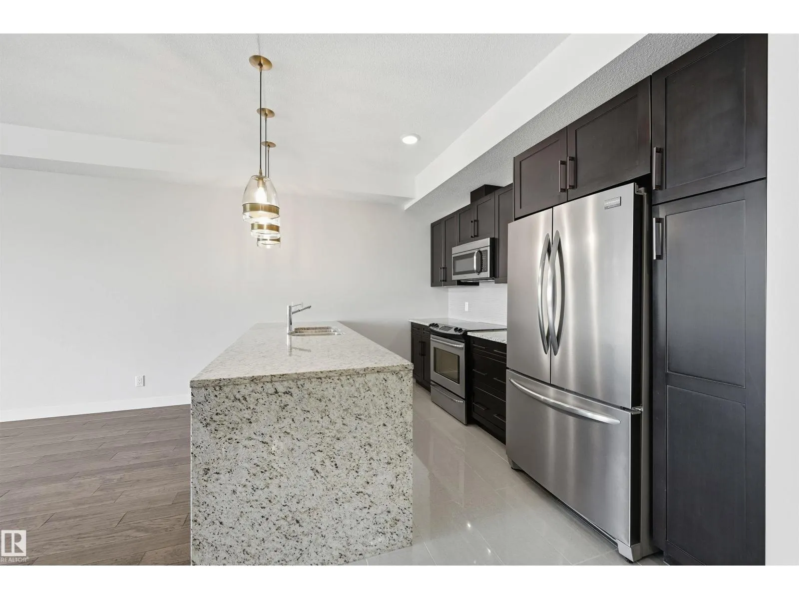 Experience luxury living at Brass III The Leger in the desirable Riverbend. This top-floor unit offers city views, showcasing craftsmanship & a well functioning floorplan. The bright, open layout features 9 ft ceilings, engineered hardwood, granite countertops, S/S appliances, maple shaker cabinets & an island w/eating bar. Living area will accommodate most furniture arrangements. Bedrooms are on opposite ends for privacy. The spacious primary suite includes a walk-in closet w/built-ins and a 4pc ensuite w/soaker tub & glass shower. 2nd bedroom for guest stays or home office/hobby studio. 3pc bathroom w/matching finishing palette. Enjoy the balcony for evening bbqs, central A/C, in-suite laundry. Double tandem underground parking stalls w/storage. Well managed complex w/healthy reserve fund. Pet-friendly & ideally located near Terwillegar Rec Centre, schools, parks & all servicing amenities. This residence combines elegance, comfort & convenience in one of Edmontonâs most sought-after communities. (id:27476)
