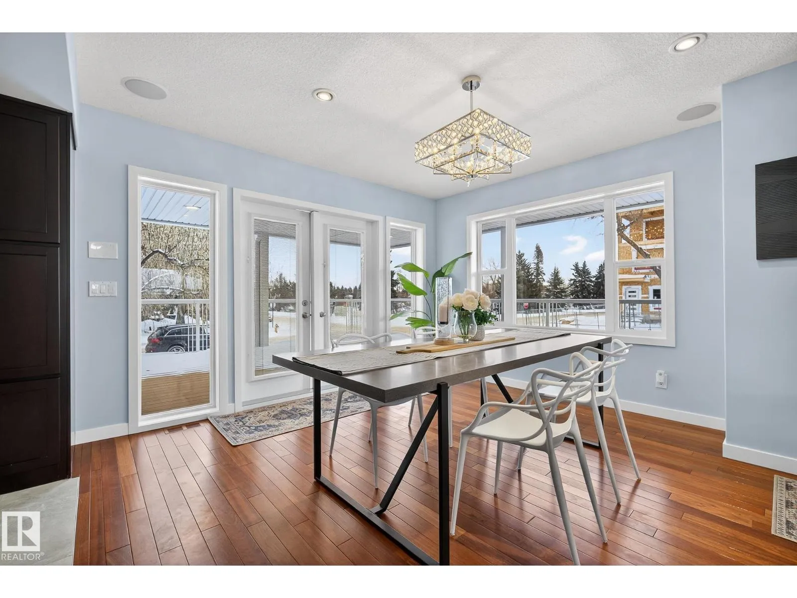 Beautifully renovated two-storey home with a legal 1-bedroom basement suite, ideally situated on a corner lot facing Strathearn Park and just steps from the trail system. This property offers 5 bedrooms, 3.5 bathrooms, and a double detached garageâperfect for families or investors alike. The bright main level features a functional layout highlighted by Brazilian cherry hardwood flooring and access to a wrap-around deck, ideal for entertaining or enjoying park views. Upstairs, the spacious primary bedroom includes a private balcony overlooking the green space and an ensuite finished with elegant marble tile. The legal basement suite provides excellent income potential or comfortable space for extended family. Move-in ready with modern updates throughout, this home combines comfort, versatility, and an unbeatable park-side location. (id:27476)