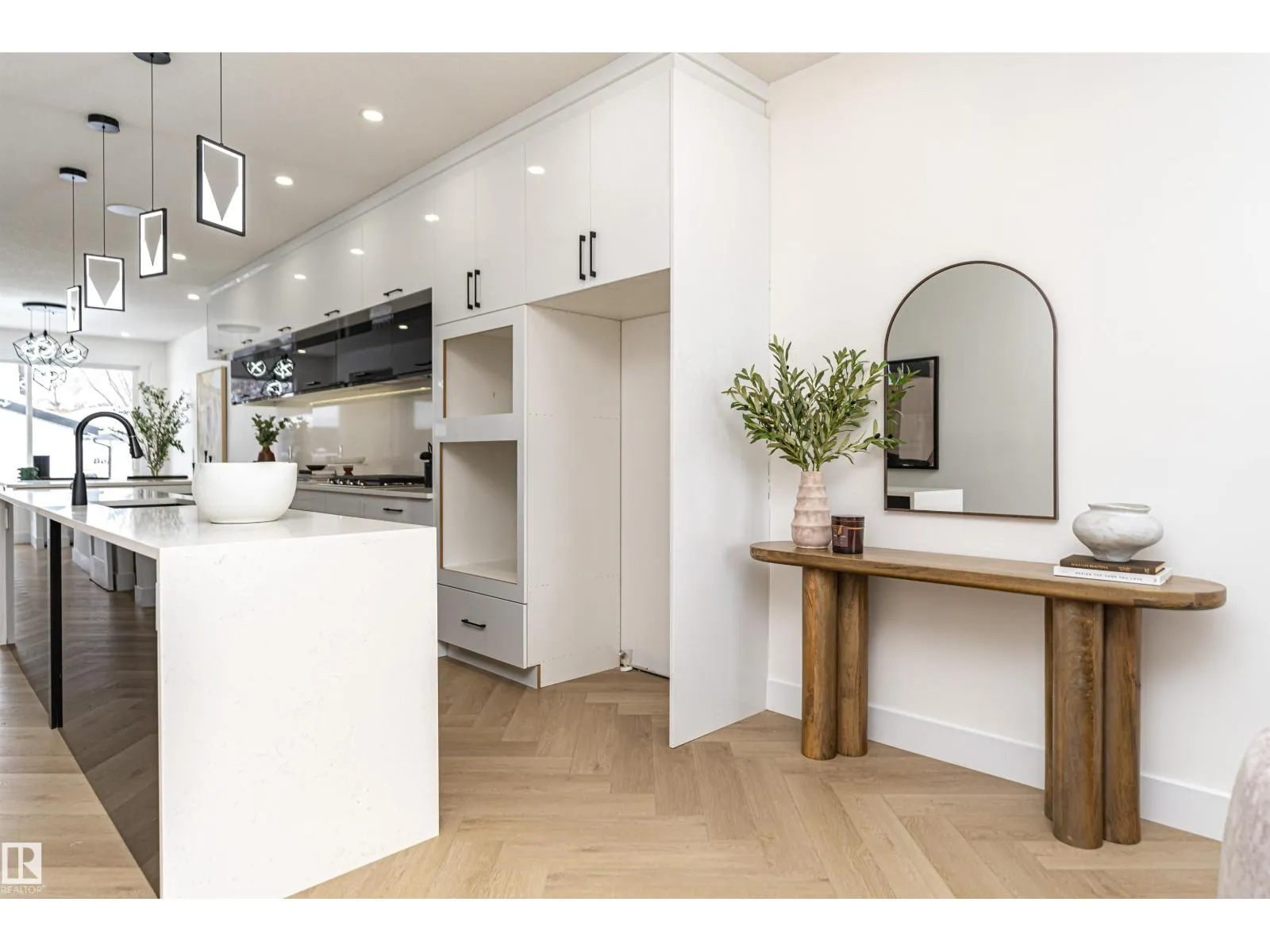 Welcome to this stunning custom-built home nestled on a picturesque, tree-lined street in one of Edmontonâs most sought-after communities. Offering over 2,850sq ft of beautifully developed 3 STOREY + FINISHED BSMT living space, this 3-bedroom, 2.5-bath home perfectly blends style, function, and comfort. The main floor features Herringbone LVP, designer tile, and a sun-soaked open layout. The chefâs kitchen is a showstopper with quartz countertops, sleek cabinetry, and a massive island with seating. A spacious dining area and striking feature fireplace complete the elegant main level. Upstairs, the primary suite features a luxury spa-inspired ensuite, massive shower, Soaker with Trough sink.Additional features include ROOF TOP PATIO WITH DOWNTOWN VIEWS, BONUS ROOM WITH WET BAR,3 ZONE SOUND SYSTEM,TRIPLE PANE WINDOWS.FULLY FINISHED 1 BEDROOM LEGAL SUITE basement, double garage. Located just steps from the LRT, this is urban living at its bestâquiet, convenient, and connected. Turn the key and move right in. (id:27476)