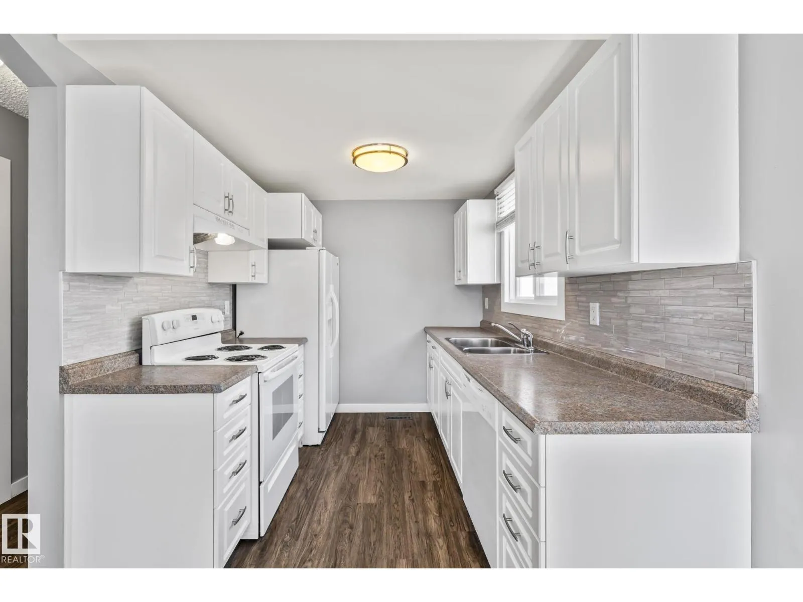 CORNER UNIT, FACING A WALKING TRAIL! 3 BEDROOMS 1.5 Baths, TURN KEY, PET FRIENDLY townhouse with a huge fully fenced front yard and an energized parking stall! With a truly unique kitchen, offering additional cabinet space, tons of natural light and newer kitchen cabinets plus appliances! Other upgrades include, luxury vinyl flooring throughout, 2 re-finished bathrooms, vinyl windows, and a fully finished basement! Tucked away far from the main road, this spacious, fully finished unit is a MUST SEE. Walking distance to Belmont School, with quick access to the Yellowhead and Clareview Town Center. This well managed condo complex is pet and family friendly with an active, engaged condo board, A MUST SEE! (id:27476)