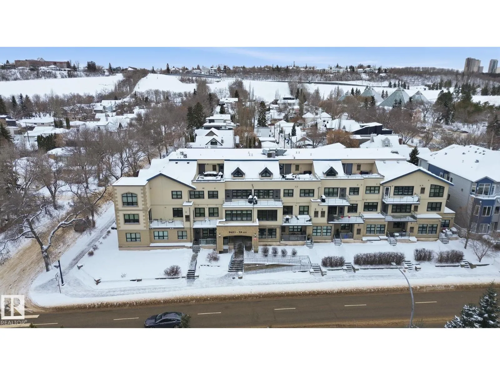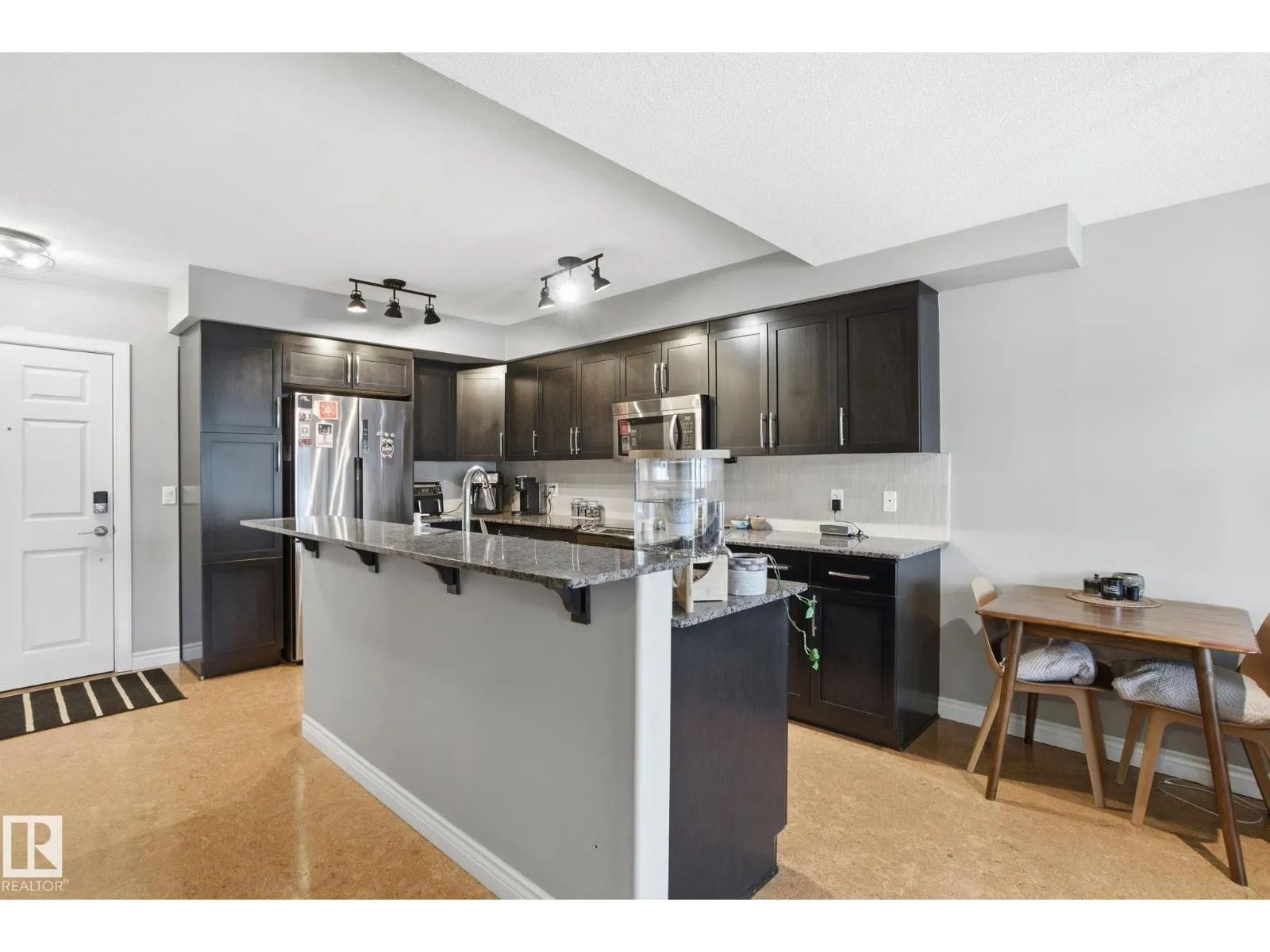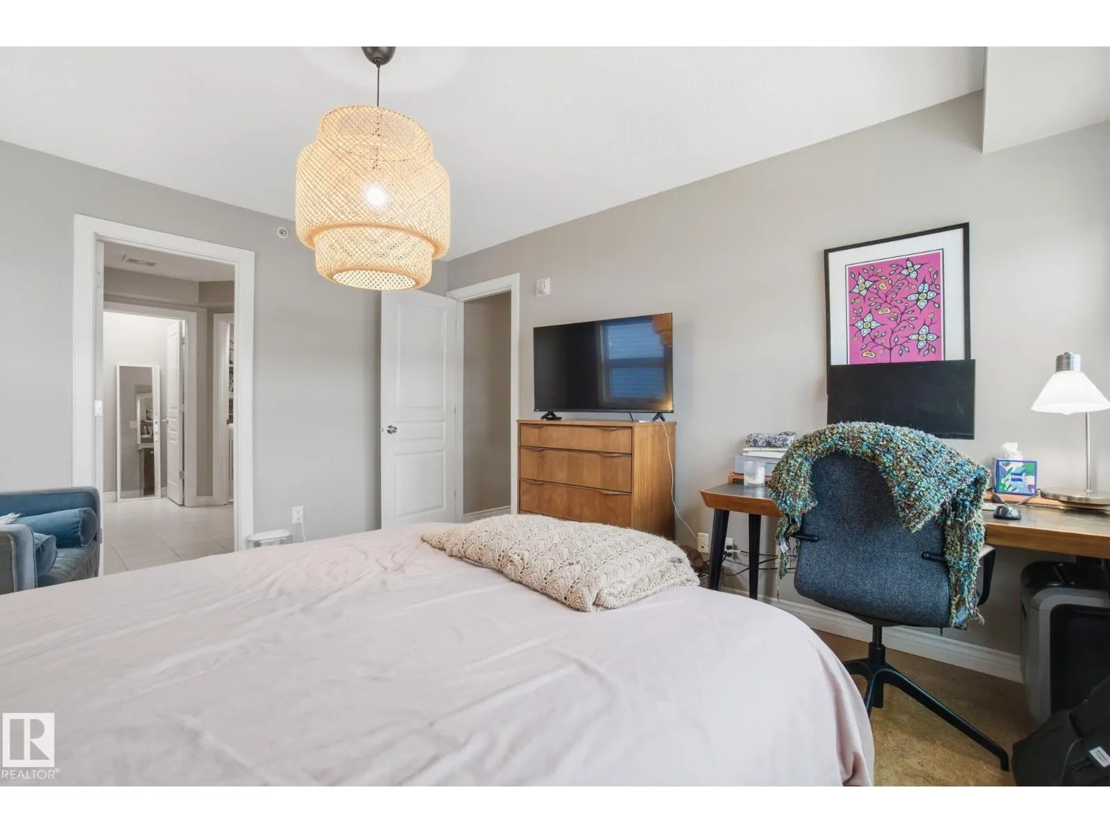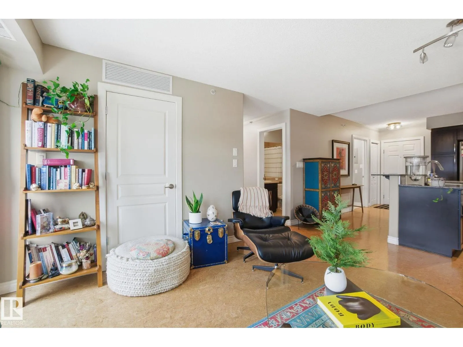 Perched on the top floor with a desirable corner unit, this refined 2 bed, 2 bath residence in Waterside Estates delivers a balance of urban convenience and natural surroundings. Sunlight pours through the south facing windows, enhancing the open-concept layout while offering a polished feel throughout. The spacious primary bedroom is thoughtfully designed to accommodate a king-sized bed and seating area, complete with a 6-pc ensuite featuring double sinks, generous counter space, and a walk-in closet. A second bedroom and full bath provide flexibility for guests, a home office, or shared living. New cork flooring adds warmth and continuity across the unit, while in-suite laundry, private balcony, and access to a car wash bay elevate everyday comfort. Extensive building upgrades including new windows, balconies, and energy-efficient exterior. Steps from River Valley trails, the LRT, Muttart and minutes to downtown, this is effortless city living with unmatched access to nature, culture, and connectivity. (id:27476)