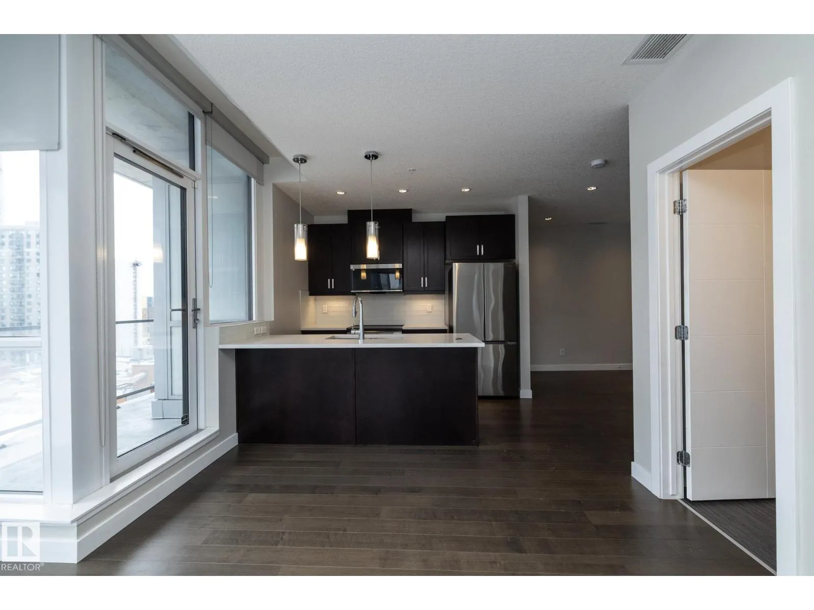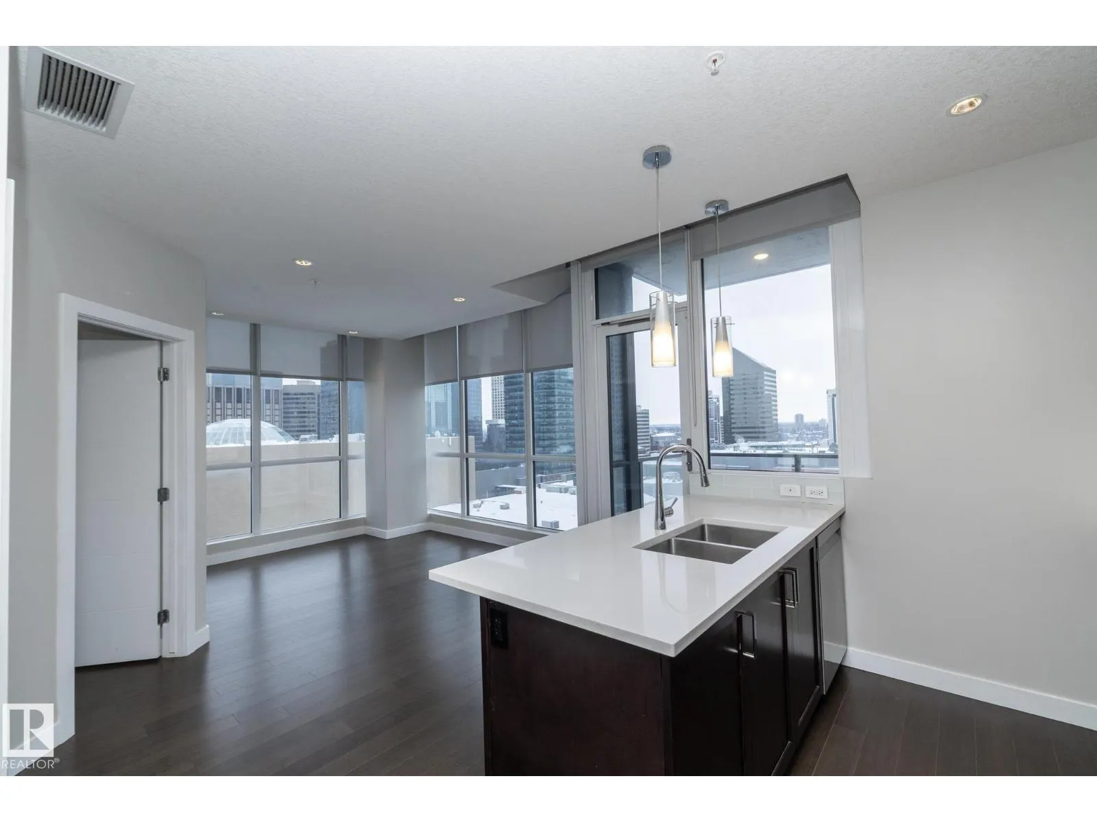 Corner unit | A/C | Concrete building | Underground parking + storage | And more! Welcome to Ultima Tower, offering refined downtown living in this 2 bedroom, 2 bathroom southeast corner suite with unobstructed views of the downtown skyline and river valley showcased through floor-to-ceiling windows in every room. The thoughtfully designed layout features hardwood flooring throughout (no carpet), stainless steel appliances, in-suite laundry, and a private balconyâperfect for enjoying the city atmosphere. The open, functional living space is ideal for both everyday living and entertaining. Residents enjoy premium amenities including a fitness centre, concierge service, party room, and a rooftop lounge with hot tubs and cabanas. Located directly across from Rogers Place and within walking distance to restaurants, shops, and downtown attractions. Immediate possession available. (id:27476)