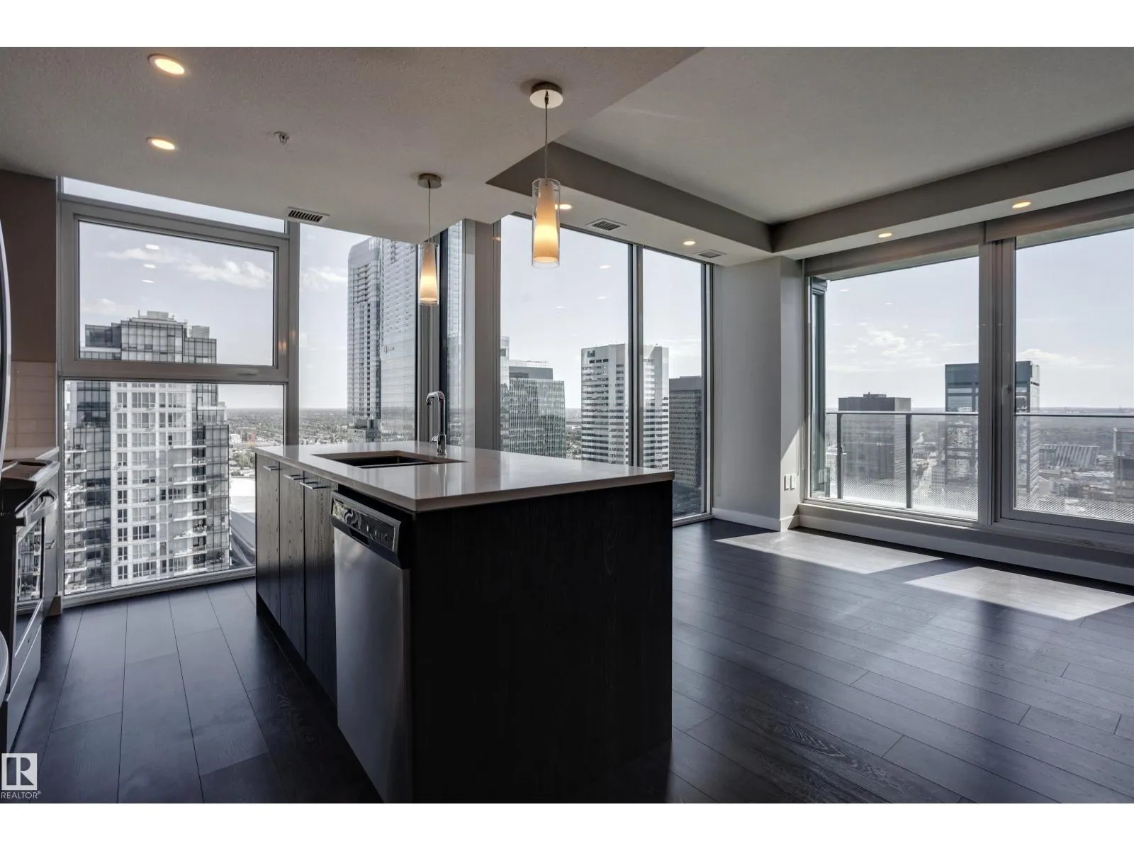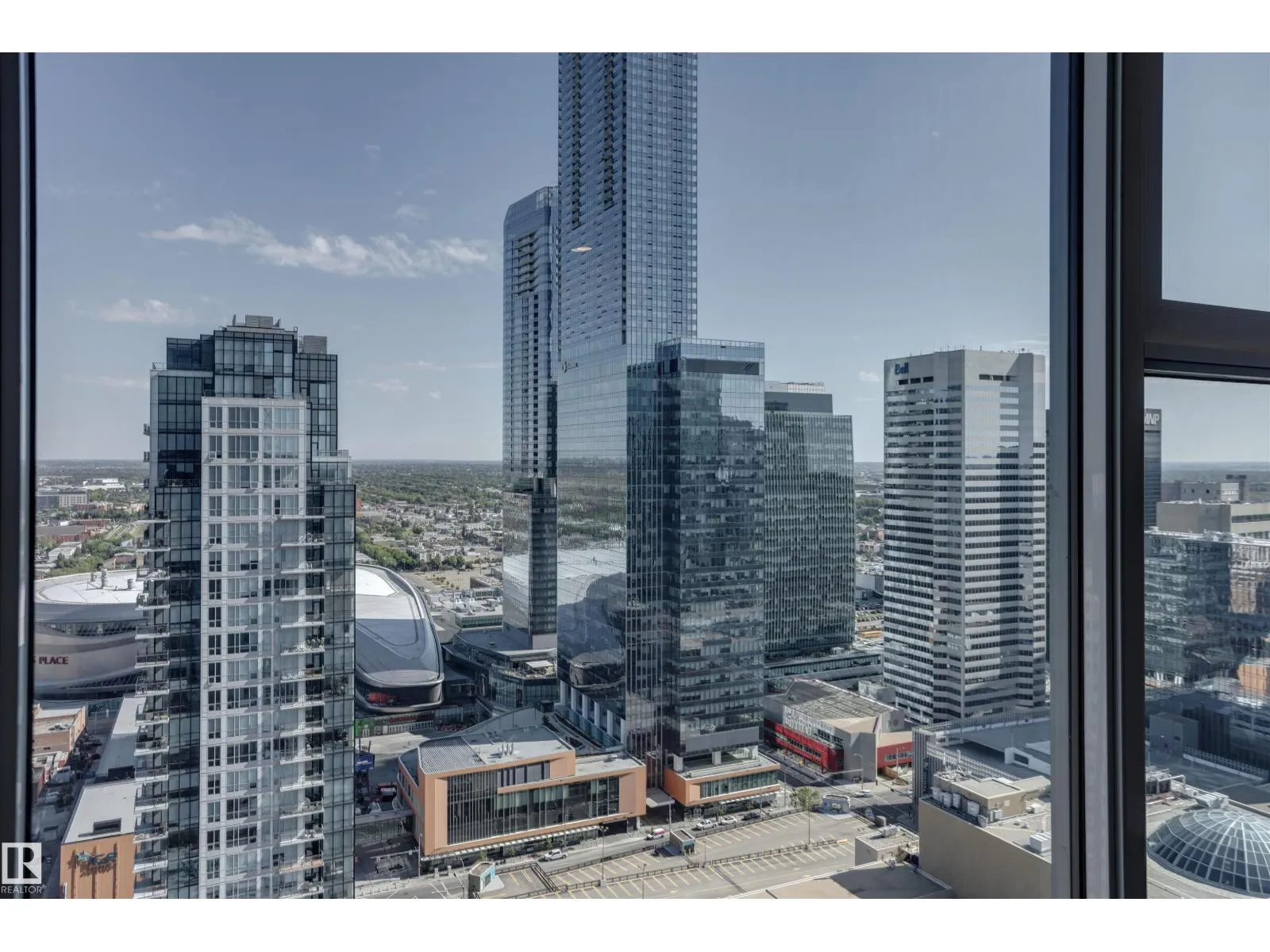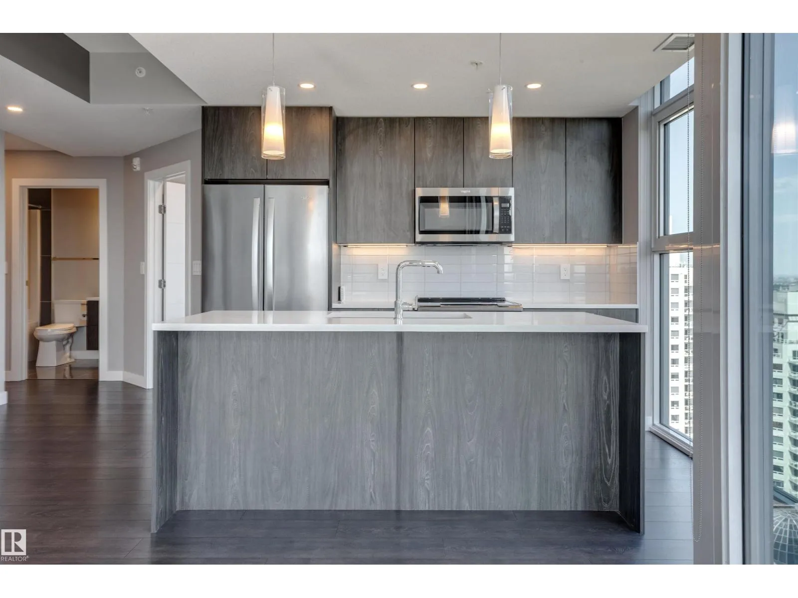 Location, Location! Encore Tower - Modern 2 Bedroom, 2 Full Bathroom Corner Suite with some of the best high-floor Downtown views the city has to offer! Enjoy true floor-to-ceiling windows, an efficient split-bedroom design and private sheltered balcony with plenty of morning sunshine. Appreciate durable finishes throughout - sleek quartz counters, plank-style floors bright and tidy tub-surrounds and neutral roller shades (w/ black-out shades in bedrooms). Modern design includes a stylish kitchen with full-size stainless steel appliances, a spacious island with seating, 9-foot ceilings* and in-suite laundry (full-size). Life at Encore includes many conveniences - friendly concierge, an inviting party-room, 4th floor sundeck and a private fitness room. Did we mention steps from ICE District, numerous dining choices, and an al fresco market?... Do not miss this opportunity at the city's ultimate central location, and best new-construction value! **Photos are virtually staged** (id:27476)