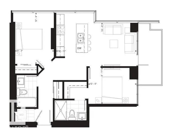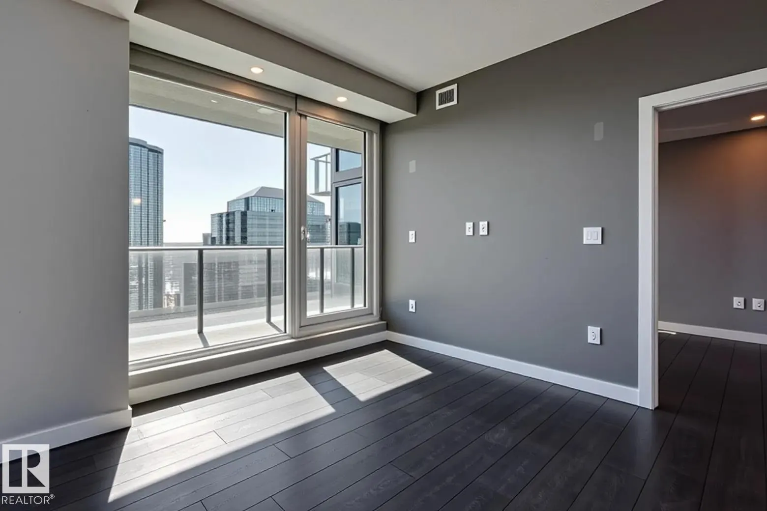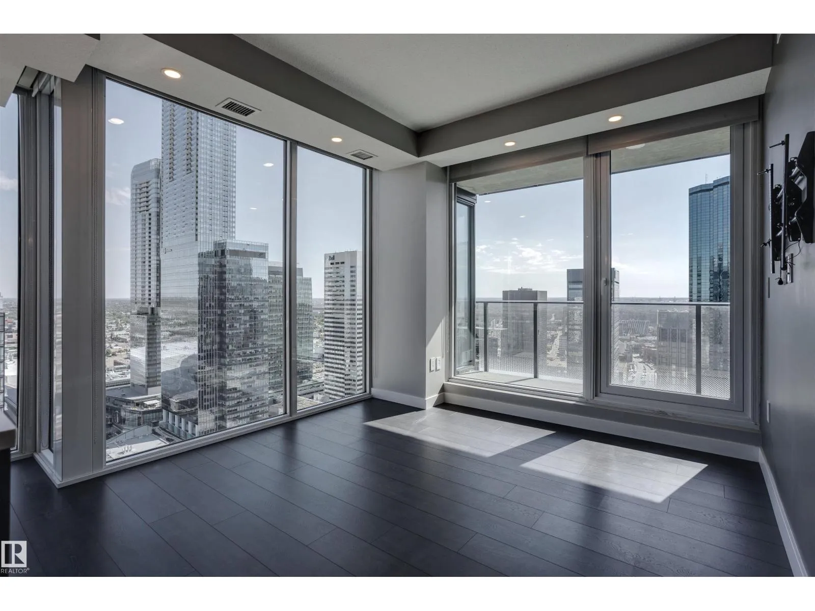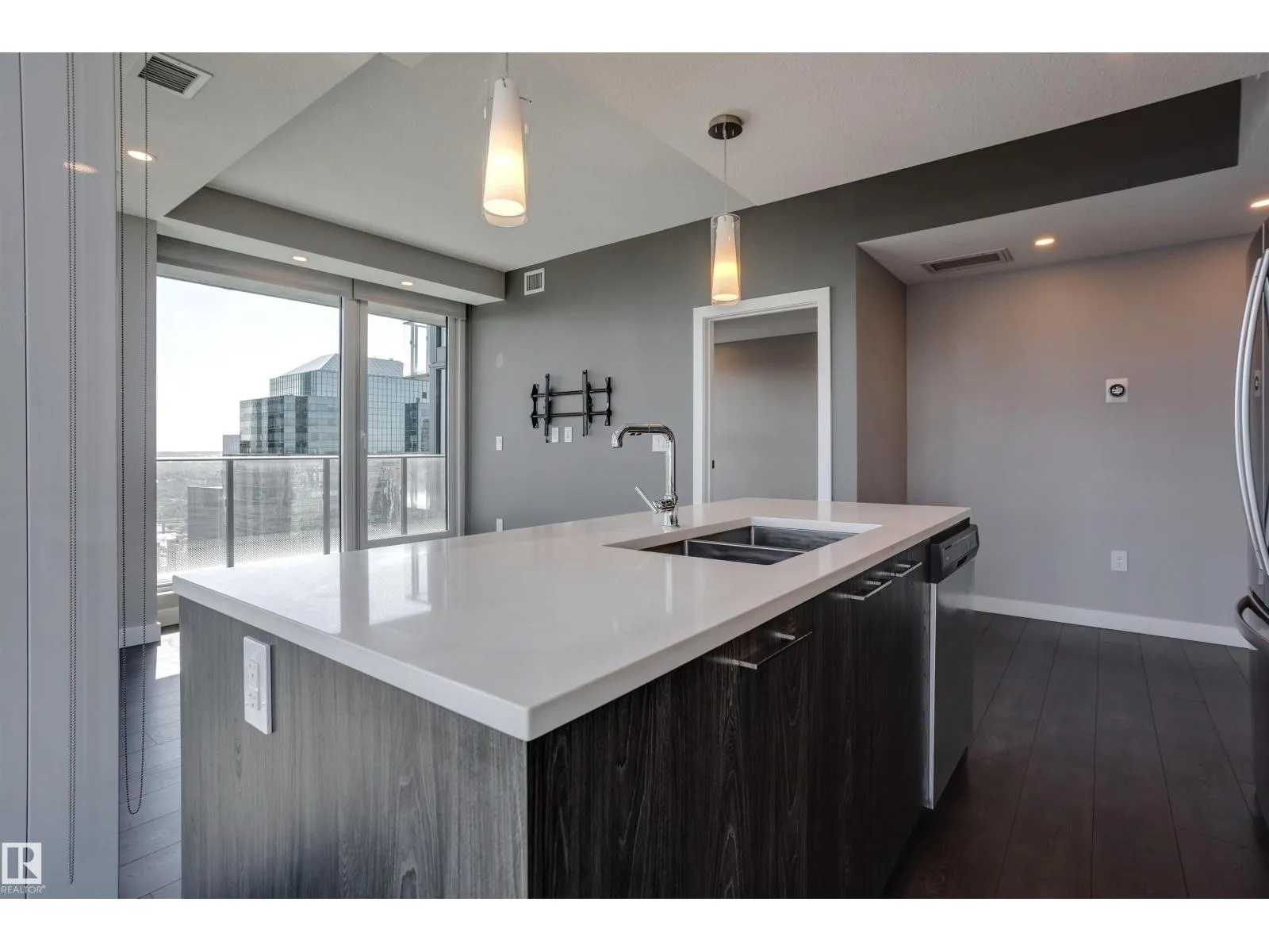 Location, Location! Encore Tower - Modern 2 Bedroom, 2 Full Bathroom Corner Suite with some of the best high-floor Downtown views the city has to offer! Enjoy true floor-to-ceiling windows, an efficient split-bedroom design and private sheltered balcony with plenty of morning sunshine. Appreciate durable finishes throughout - sleek quartz counters, plank-style floors bright and tidy tub-surrounds and neutral roller shades (w/ black-out shades in bedrooms). Modern design includes a stylish kitchen with full-size stainless steel appliances, a spacious island with seating, 9-foot ceilings* and in-suite laundry (full-size). Life at Encore includes many conveniences - friendly concierge, an inviting party-room, 4th floor sundeck and a private fitness room. Did we mention steps from ICE District, numerous dining choices, and an al fresco market?... Do not miss this opportunity at the city's ultimate central location, and best new-construction value! **Photos are virtually staged** (id:27476)