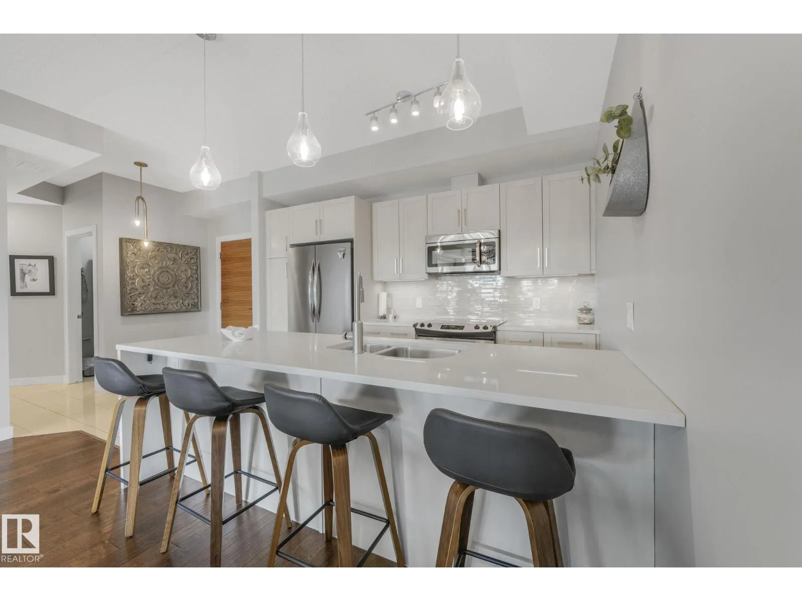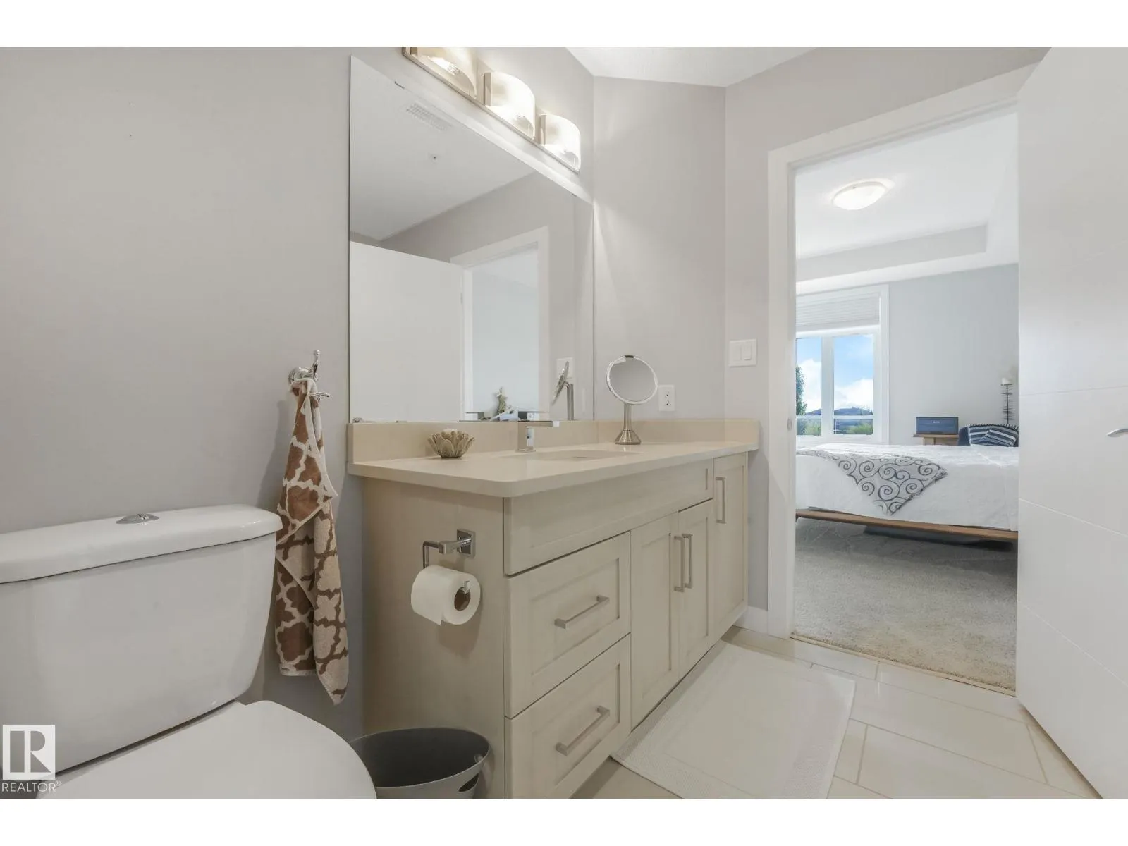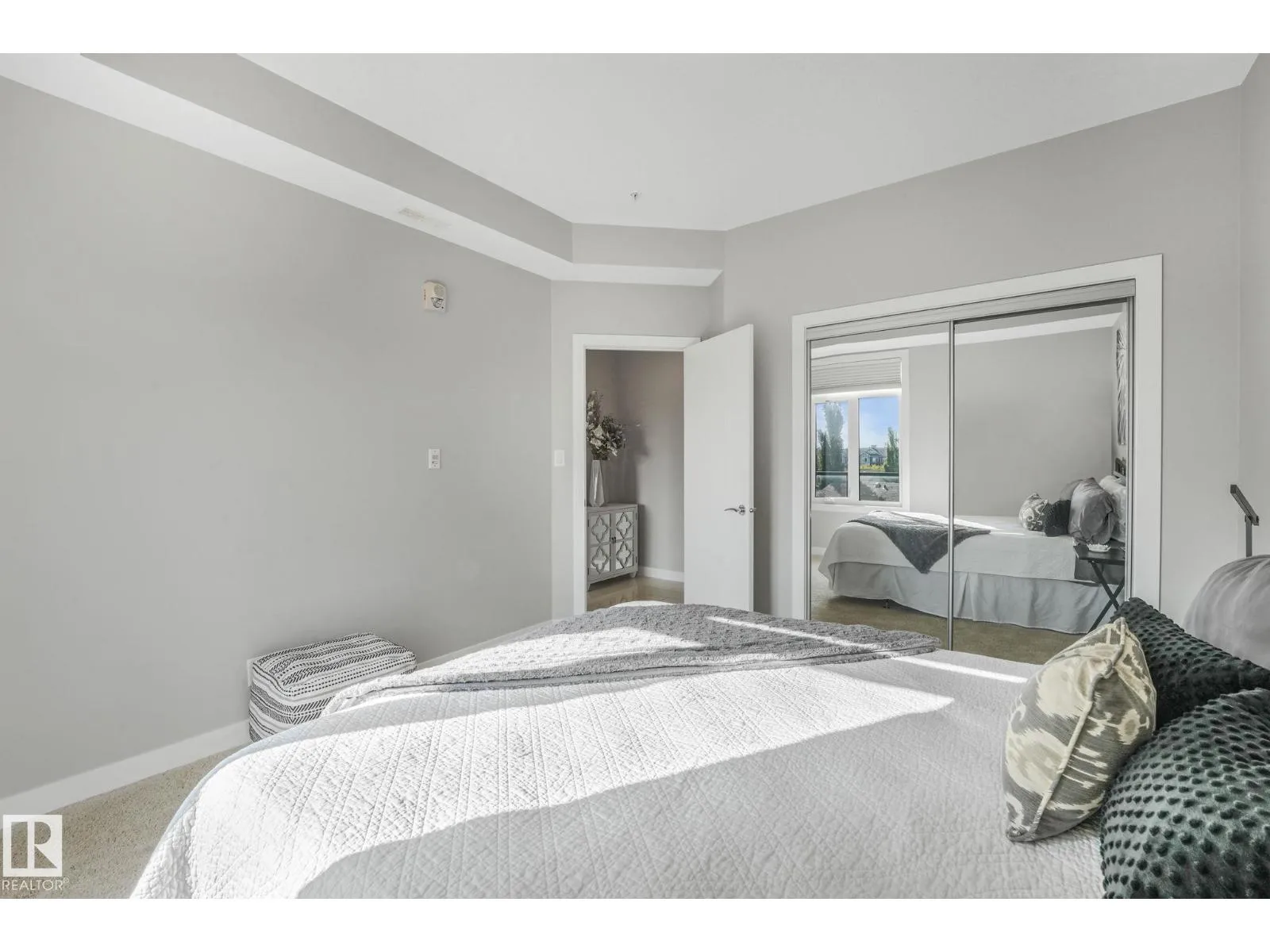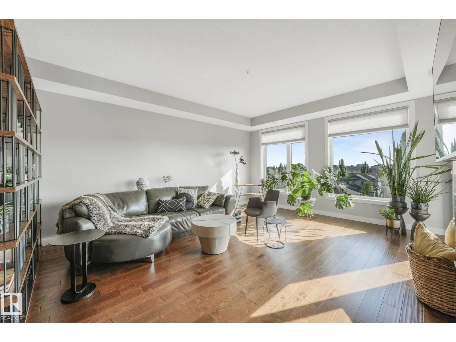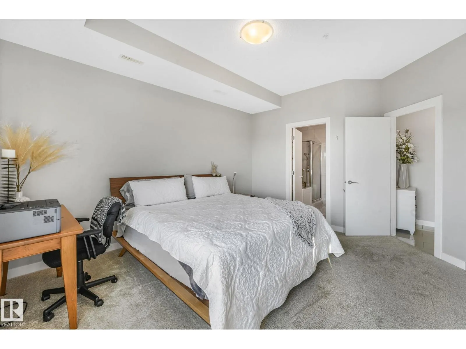 Just move in! Easy peaceful living at its best - it's the little things that make it a home. Drive up to the property and be impressed with lots of spacious visitor & handicapped parking. Marvel at the bountiful landscaping (this spring!), the quality sidewalks, foyer & elevators. This top floor beauty welcomes lots of sun all year long! Wow! Space & spaciousness and a fairly recent full paint! A classy great room is complemented by a feature divider to define without separating. Your plants will thrive. Sunny SW balcony is like 2 rooms - space for dining & sitting. Primary suite boasts space, privacy & an enviable ensuite with walk-in closet. 2nd bedroom is well placed and sized & a separate laundry room. U/G parking has a storage cage integrated w/parking spot-easy access. Short walk to Transit Centre,& Rec Centre. Great access to both Henday & Whitemud. Shopping is minutes away. Excellent Condo management, small pets w/approval. Your new best friends live there! Don't keep them waiting! (id:27476)