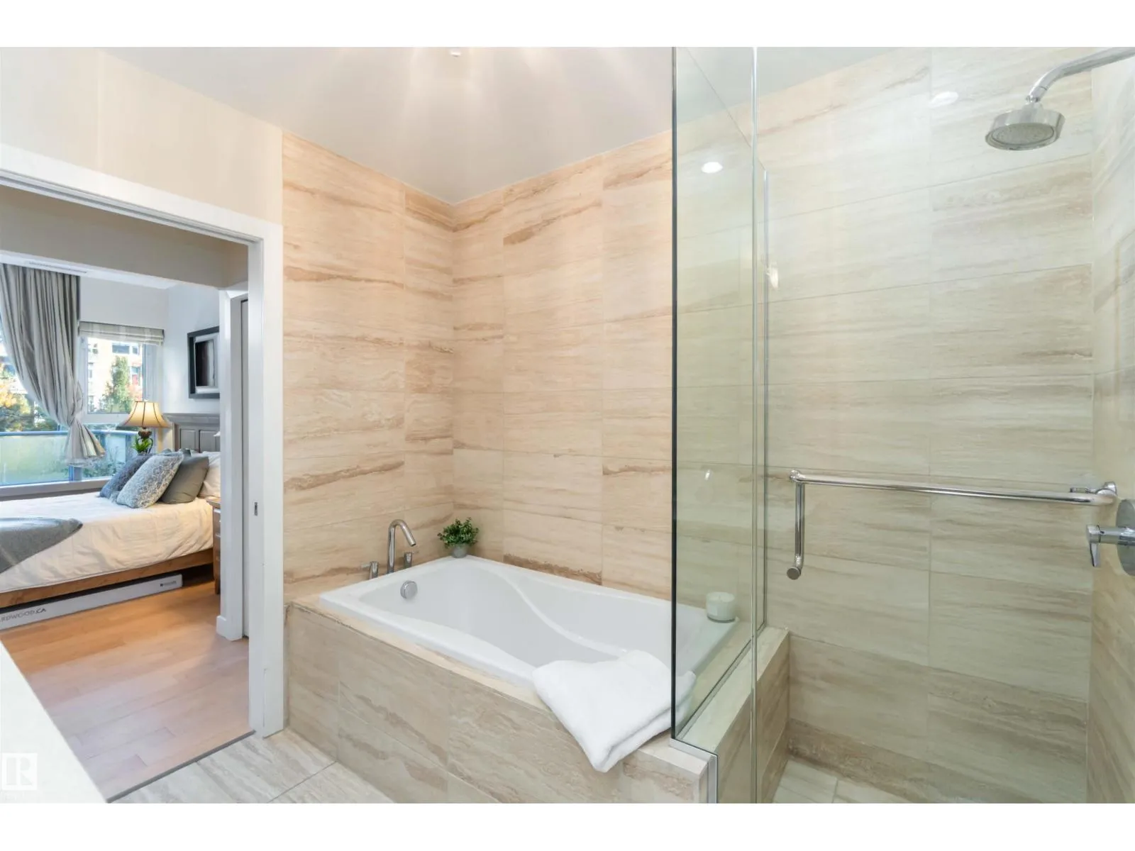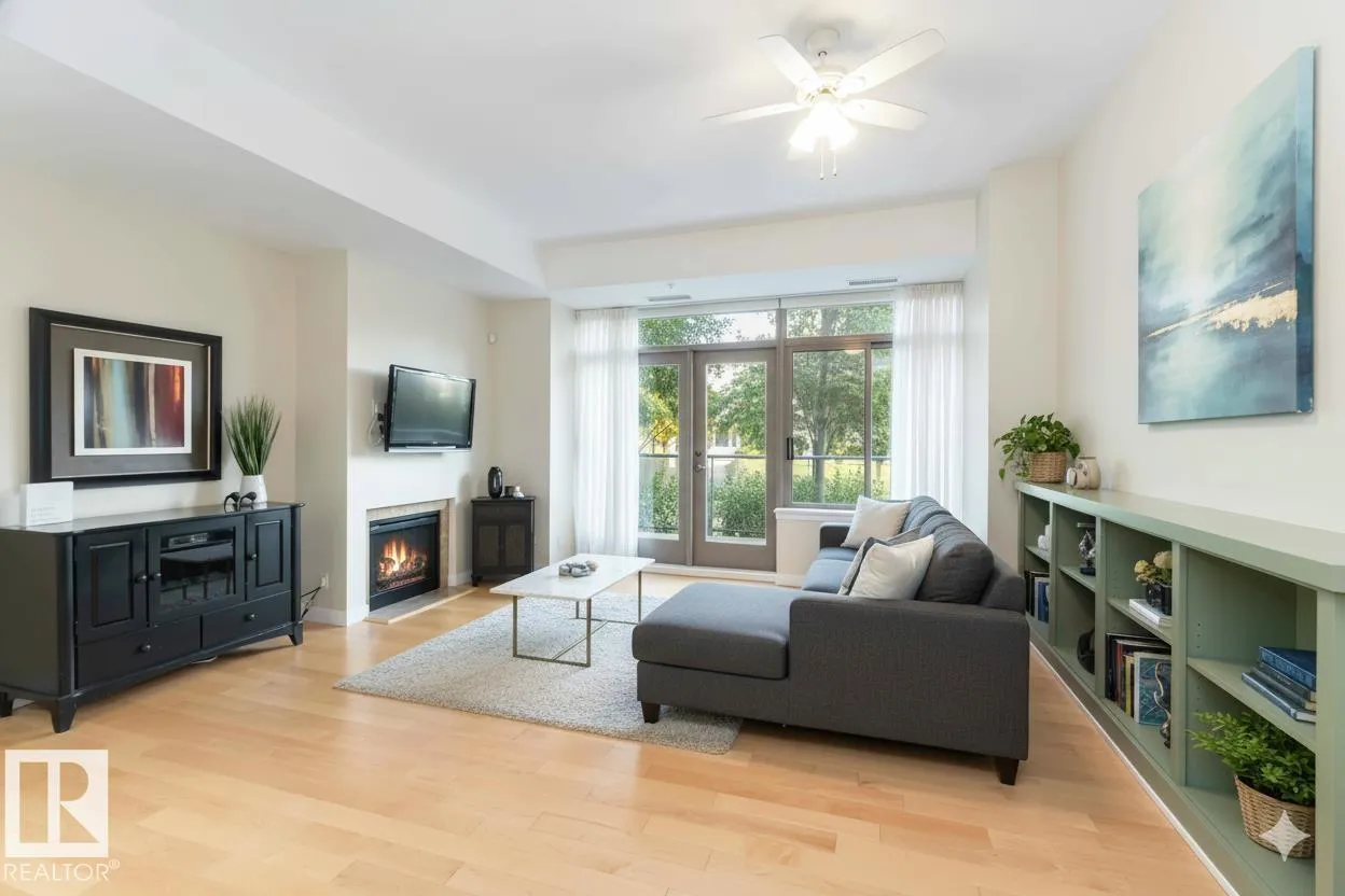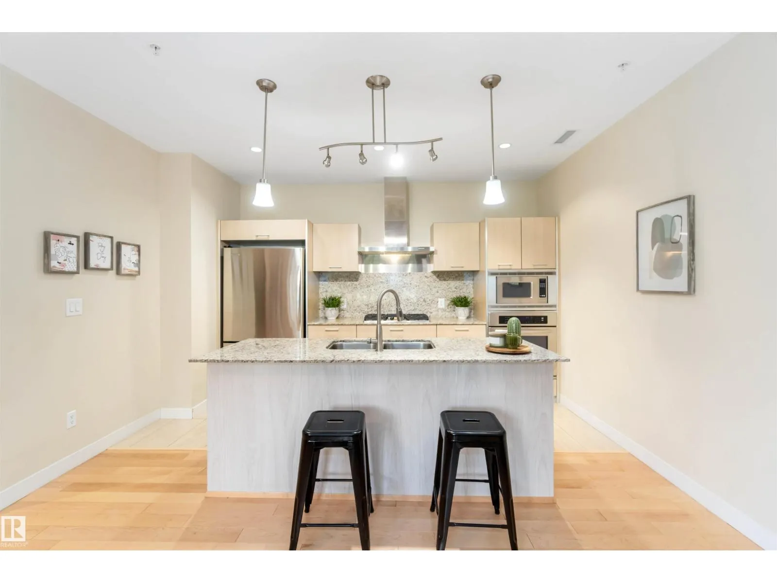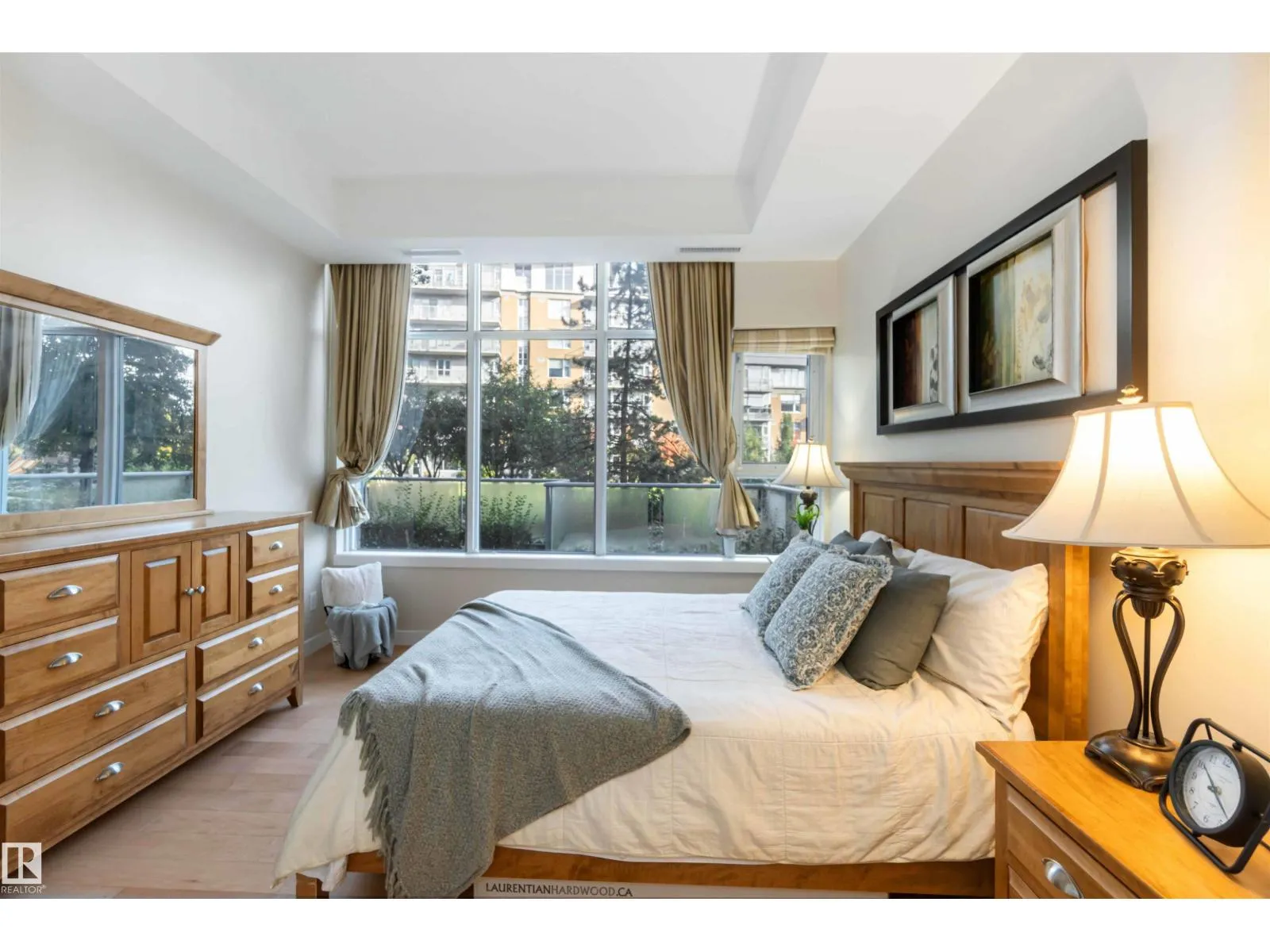A Stylish and Refreshed 2 Bed, 2 Bath condo in sought-after Ermineskin! This beautiful ground-floor unit showcases serene courtyard views through a wall of windows and features soaring ceilings that create a bright, mini mansion feel. With the ease of taking your pet outside for a walk just by leaving your patio doors. Enjoy elegant hardwood floors, granite countertops, and tile in the kitchen and baths. The chef-inspired kitchen includes a gas cooktop, built-in oven and microwave, and smart pull-out cabinetry. Large Master Retreat with 5pc Ensuite and Second Bedroom with Murphy Bed. Oversized concrete patio surrounded by low-maintenance perennials for summer beauty. With in-suite laundry, titled underground parking & titled storage, this pet-friendly, well-managed complex also offers an exercise room. Condo fees include HEAT and WATER. With a move-in-ready vibeâjust steps to grocery shopping, LRT station, and green space! (id:27476)