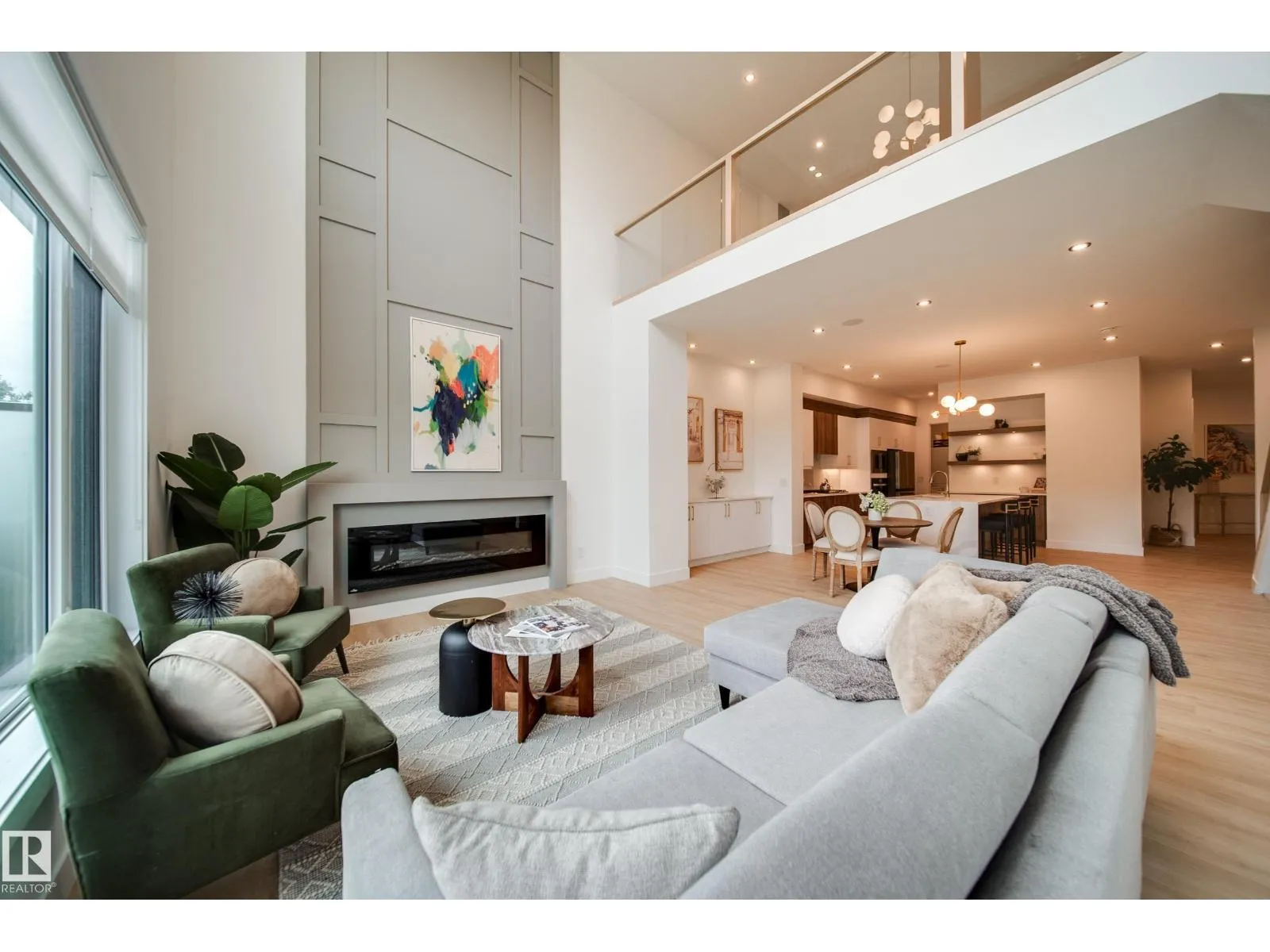 âLuxury Greensâ by Spectrum Homes â a premium, Executive-style WALKOUT half-duplex BUNGALOW in sought-after Webber Greens! BACKING THE RAVINE, this custom built home designed by CM Interior Designs showcases resort-style living with 10' ceilings, OPEN TO BELOW, 8' doors, and an open concept layout. The main floor offers 2 bedrooms, 2 full baths, laundry, and a dream kitchen with waterfall island, walk-through pantry, spice racks, garbage pullout, and upgraded appliances. Enjoy the bright living room with massive windows, fireplace, window coverings, and soaring open-to-below ceilings. The primary suite is a retreat with spa-inspired ensuite featuring a freestanding tub, tiled shower, dual sinks & walk-in closet. Upper loft includes built-in wet bar and 2nd fireplace. Fully finished walkout basement features a large rec room, 3rd fireplace, 2 bedrooms, full bath & wet bar. Finished garage w/ 220V EV charger, zoned A/C, WiFi LED gem lights, & exposed aggregate driveway complete this incredible home! (id:27476)