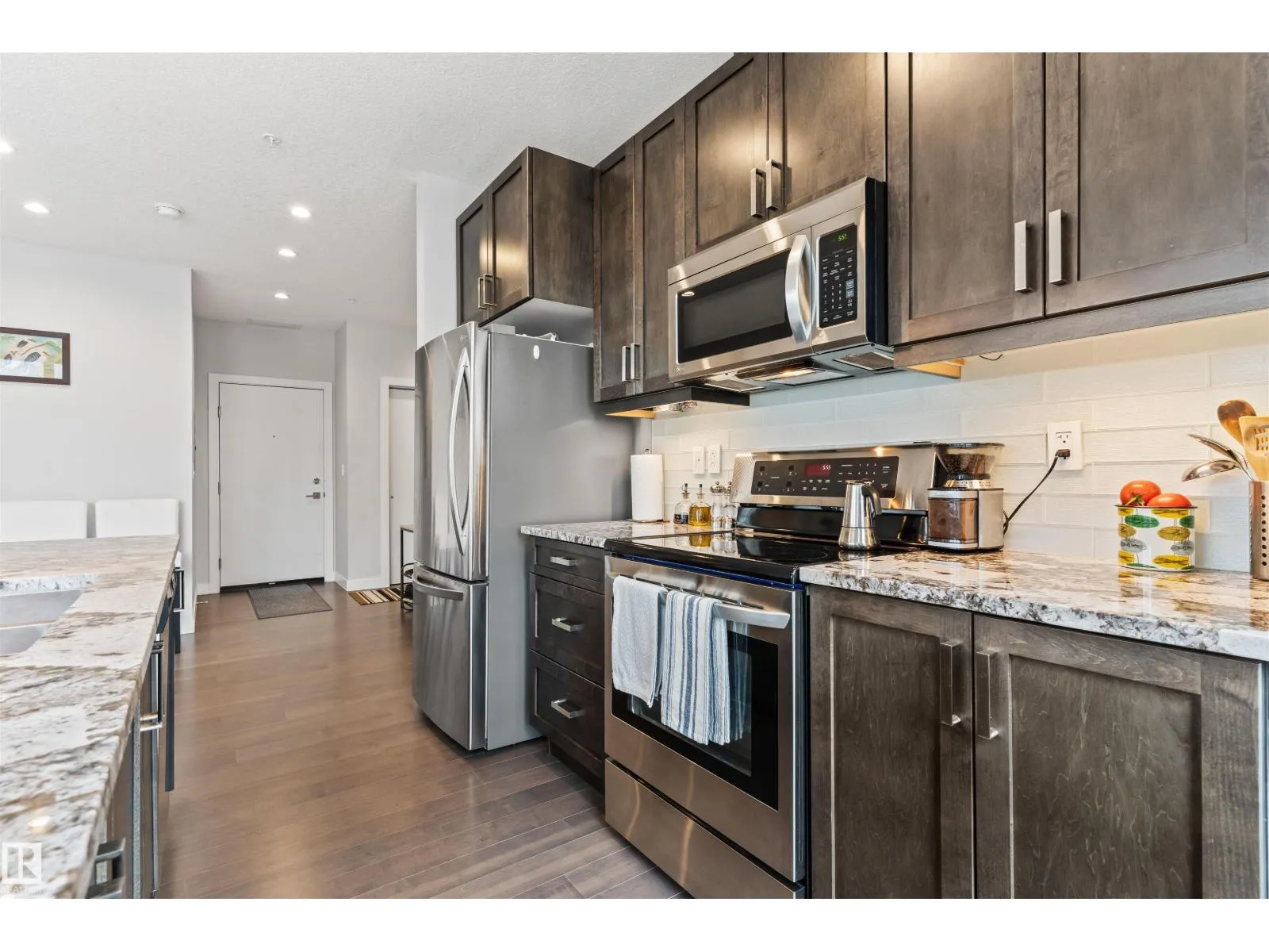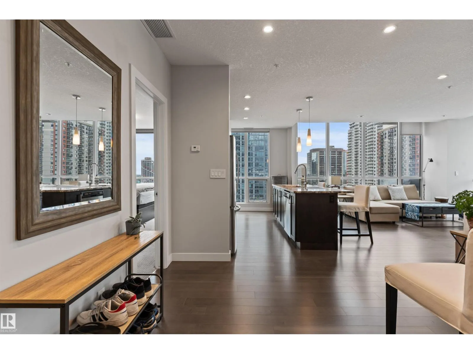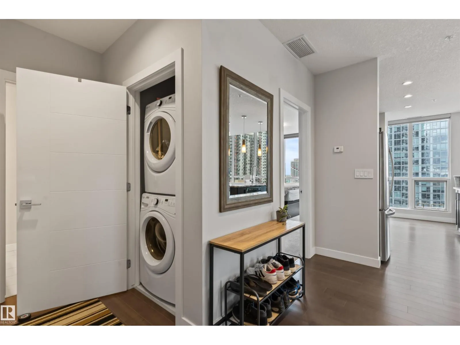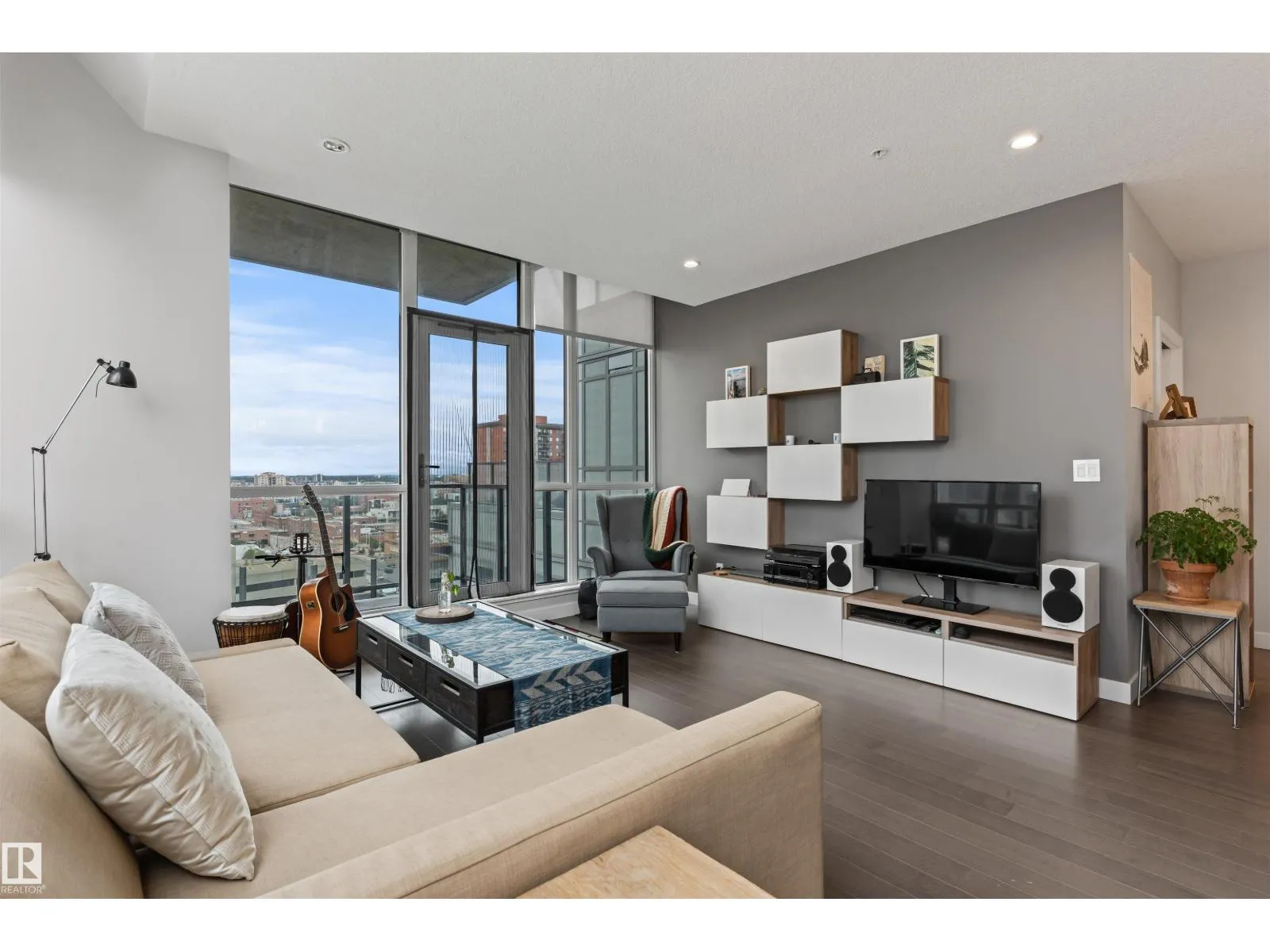 Pristine corner unit with a stunning bright view apartment, boasting large, sunlit windows. This 2 bedroom, 2.5 bathroom gem features southwest exposure, abundant natural light, and floor-to-ceiling windows. The modern finishes and spacious layout just shy of 1000 sq. ft. offer comfort and style. Enjoy a large balcony, underground heated parking with a storage cage, all in an unbeatable downtown location. The two primary bedrooms each have ensuite bathrooms, plus there's an extra half bath, perfect for entertainingâan uncommon feature at this price! The expansive kitchen includes mocha brown cabinets, stainless steel appliances, granite countertops, and a large island with seating. In-suite laundry, luxurious wood flooring in main areas, upgraded tile in the 2.5 baths, and plush carpeting in the bedrooms enhance the living experience. Ultima Tower provides excellent amenities like a gym, showers, hot tub, BBQs, a party lounge, three elevators, and 24/7 security/concierge. (id:27476)